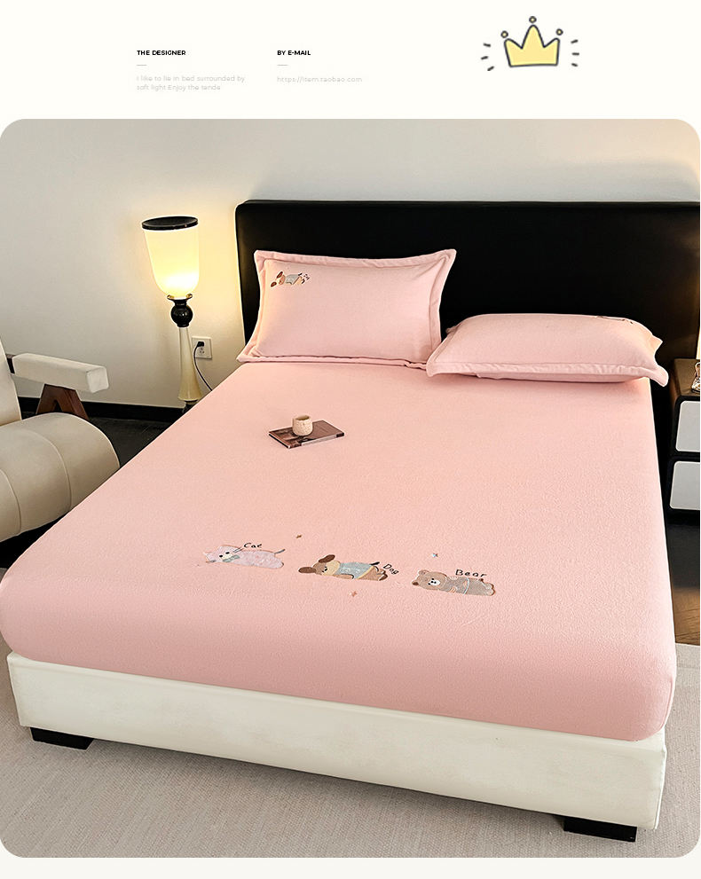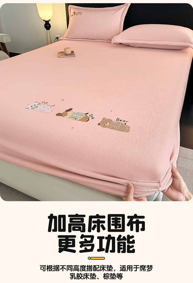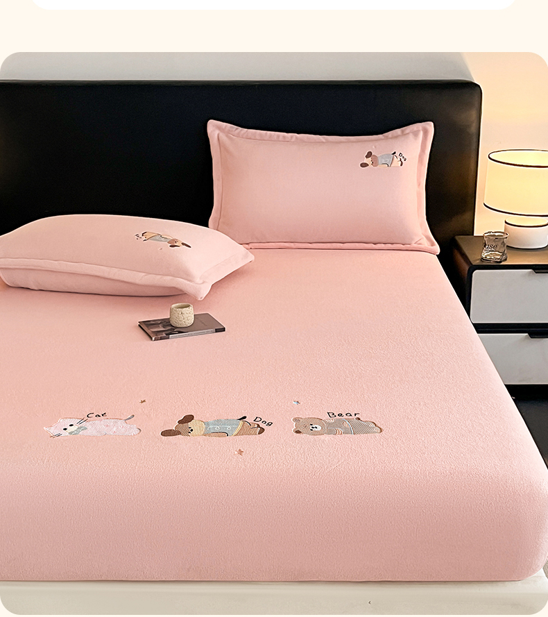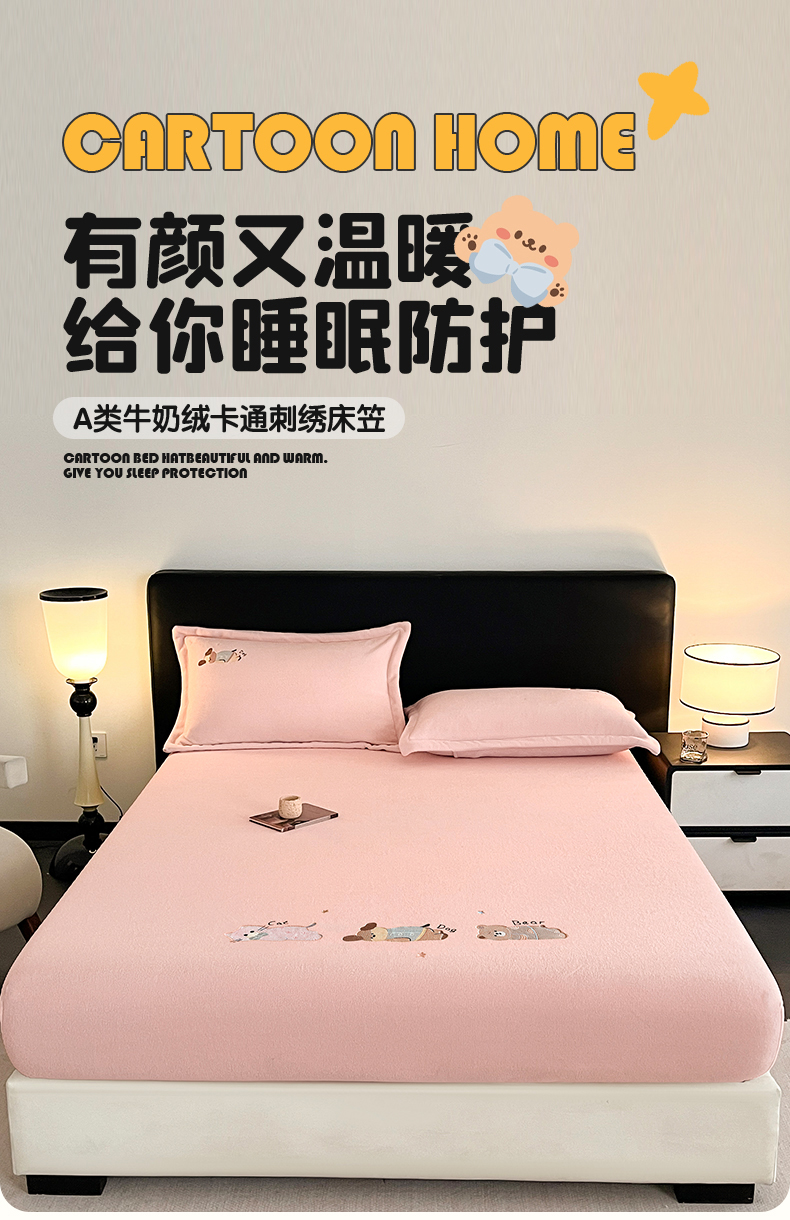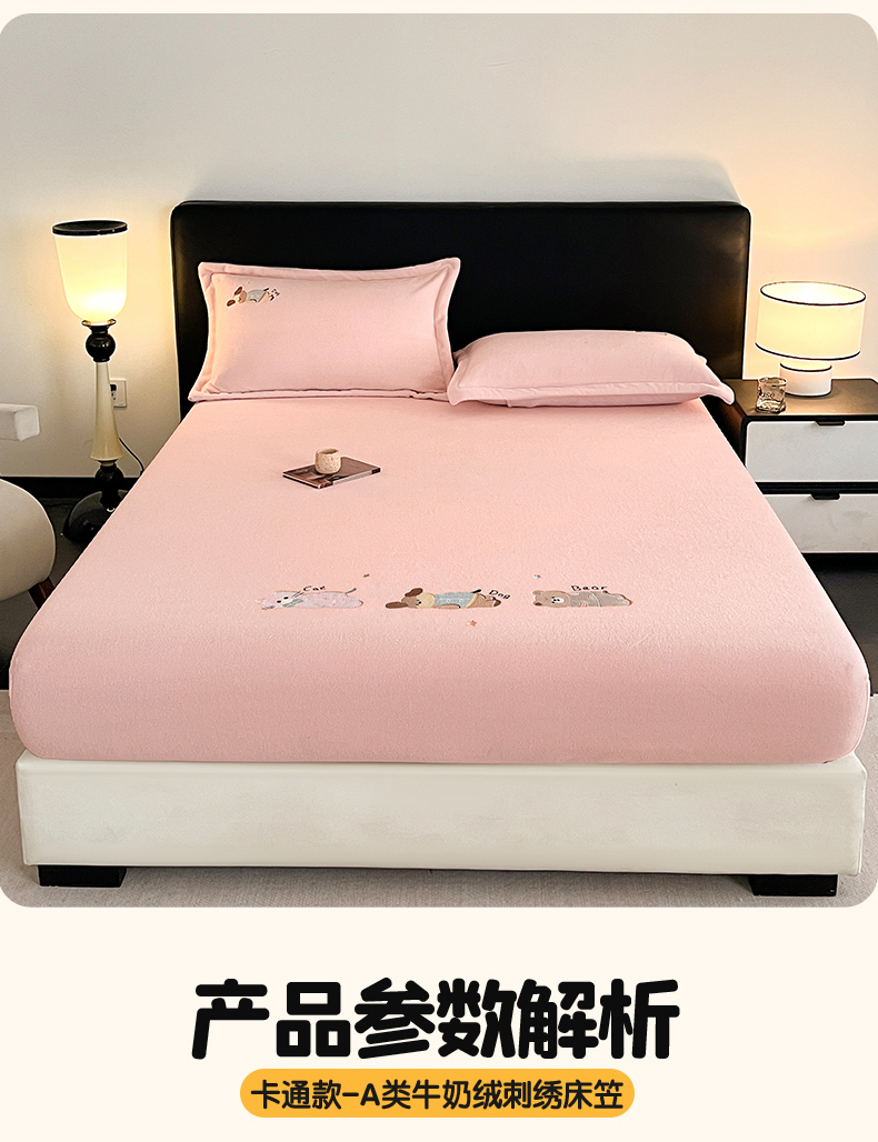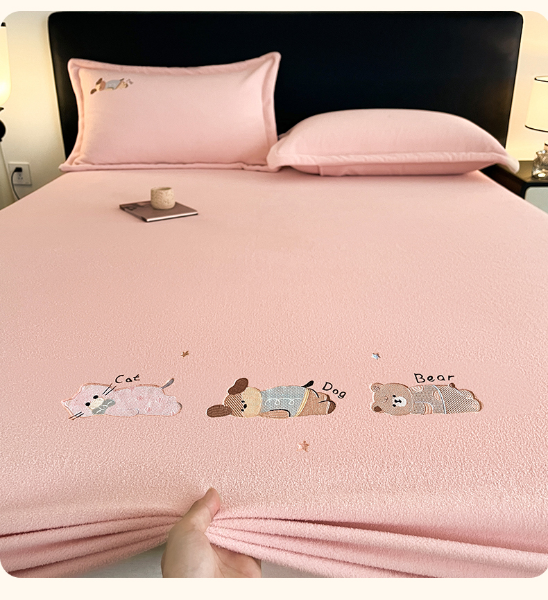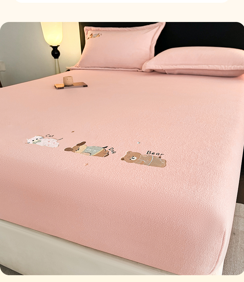 笙意家纺 2025新款A类牛奶绒海獭绒卡通刺绣床笠 卡通-玉粉