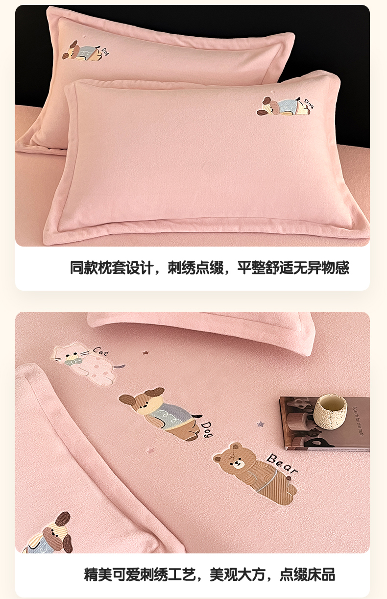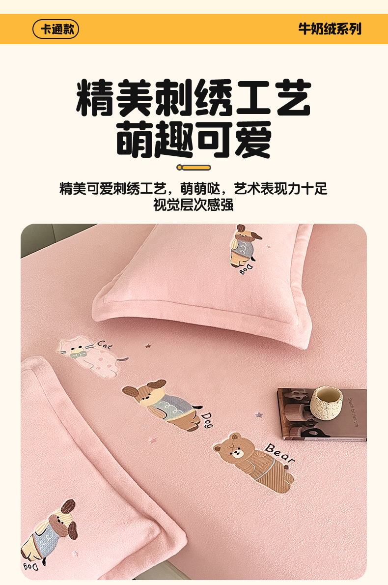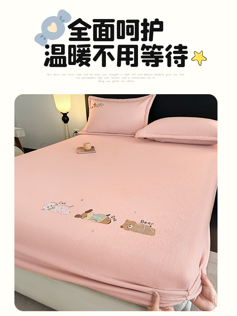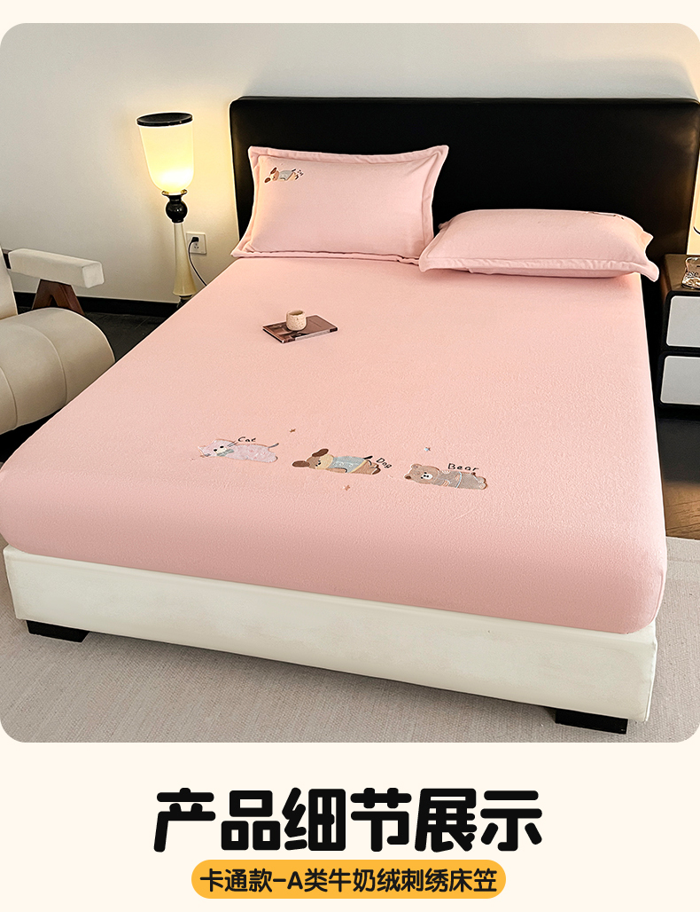 商品名称:笙意家纺 2025新款A类牛奶绒海獭绒卡通刺绣床笠 卡通-玉粉
