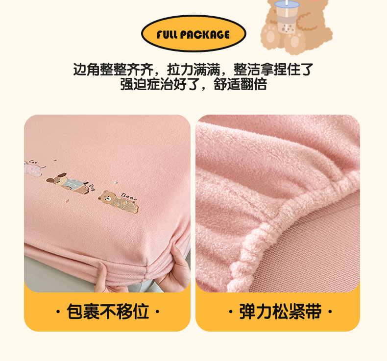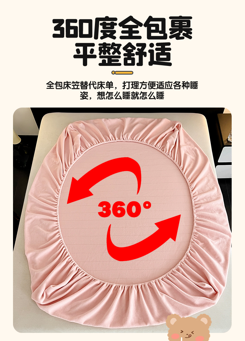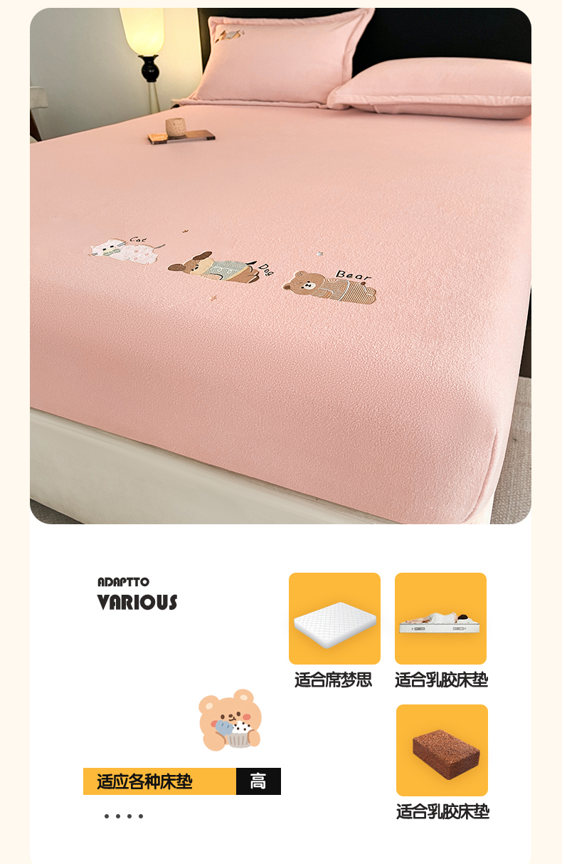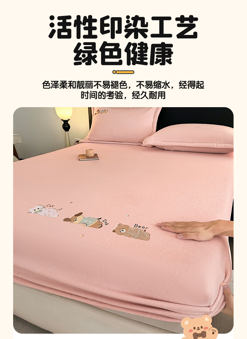 商品名称:笙意家纺 2025新款A类牛奶绒海獭绒卡通刺绣床笠 卡通-玉粉