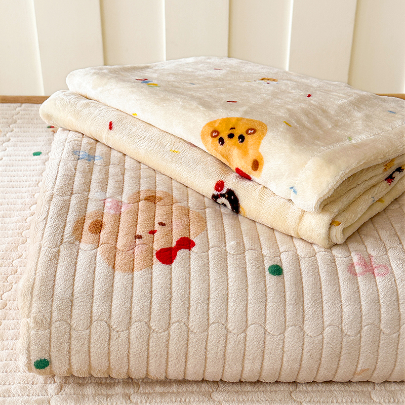 商品名称:丫丫家纺 2025新款牛奶绒床盖 黄油小熊