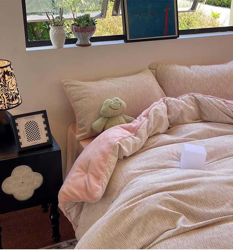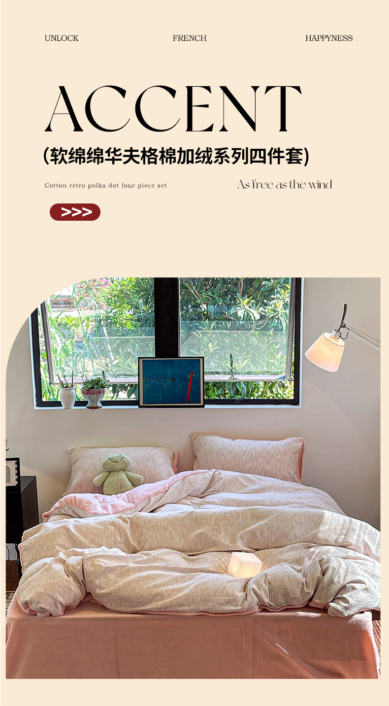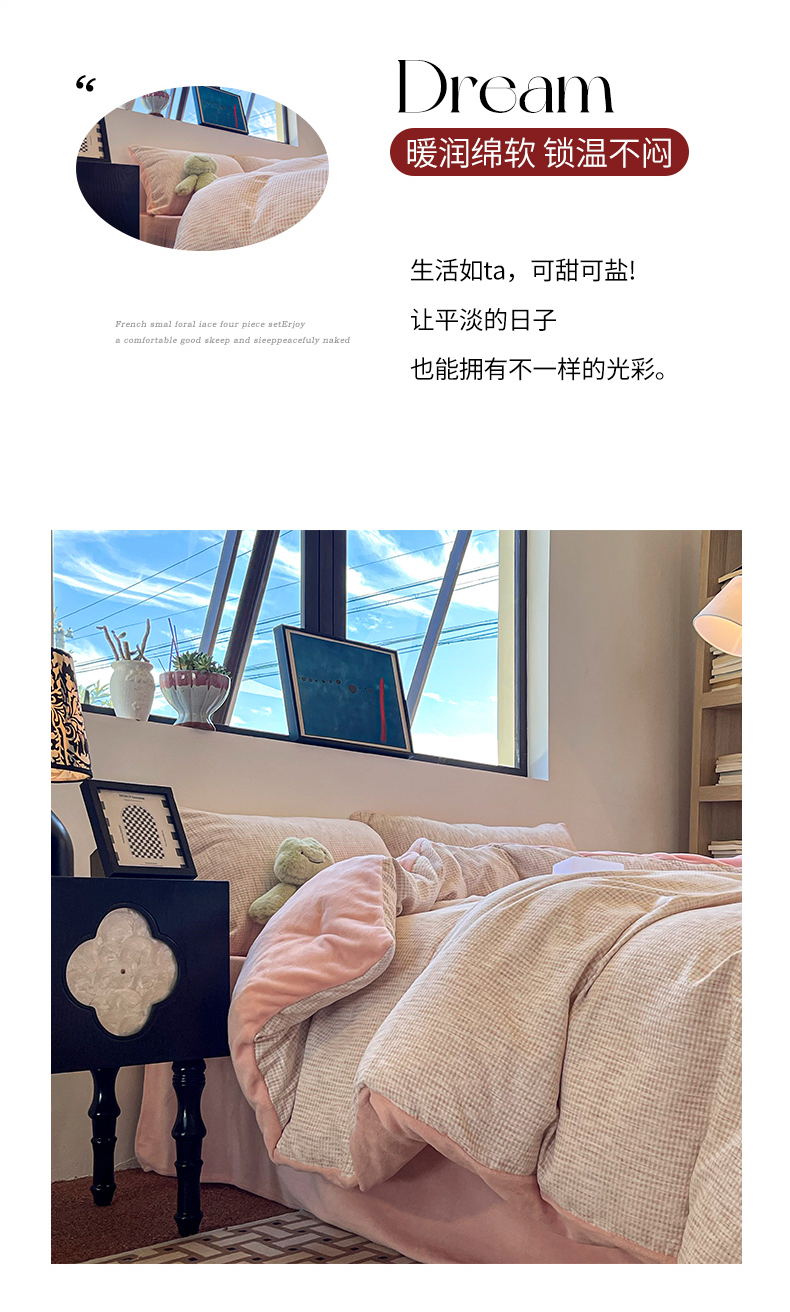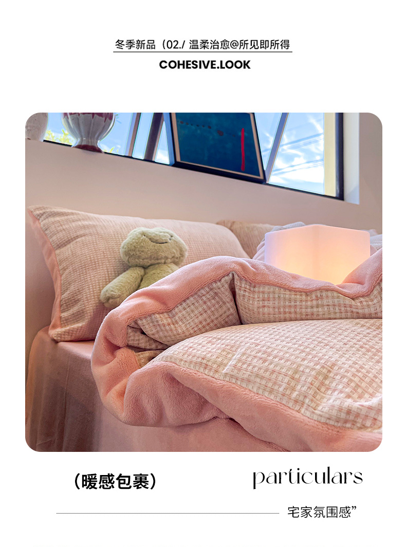 当前位置: 91家纺网 > 商品网购 > 床品套件 > 四件套 > 全棉普通四件套 > 捌月 2025冬季新款软绵绵华夫格棉加绒系列四件套 华夫格-绵绵粉