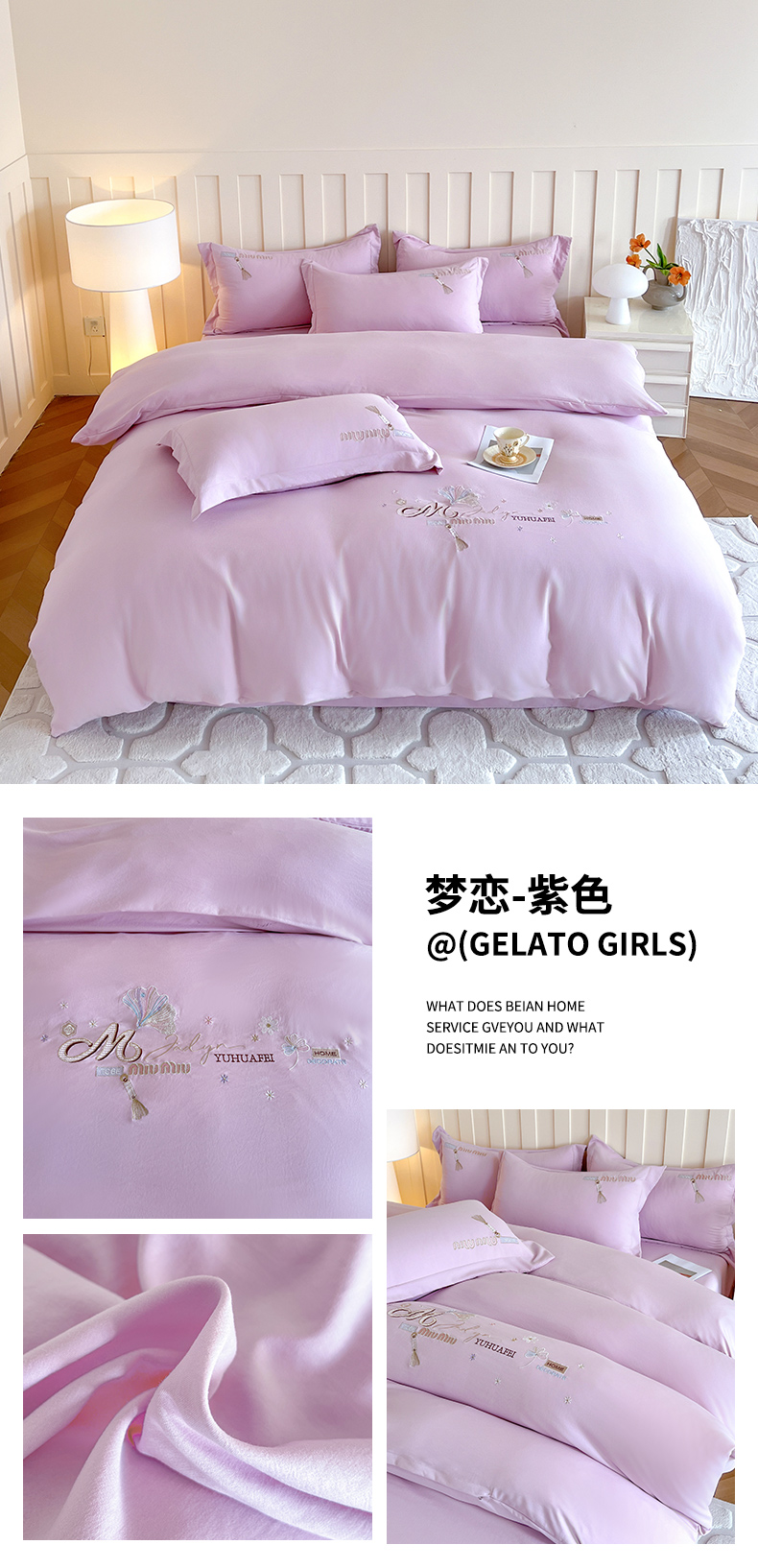 文黛家居 2025新款高克重水洗棉绣花四件套-梦恋 梦恋-紫