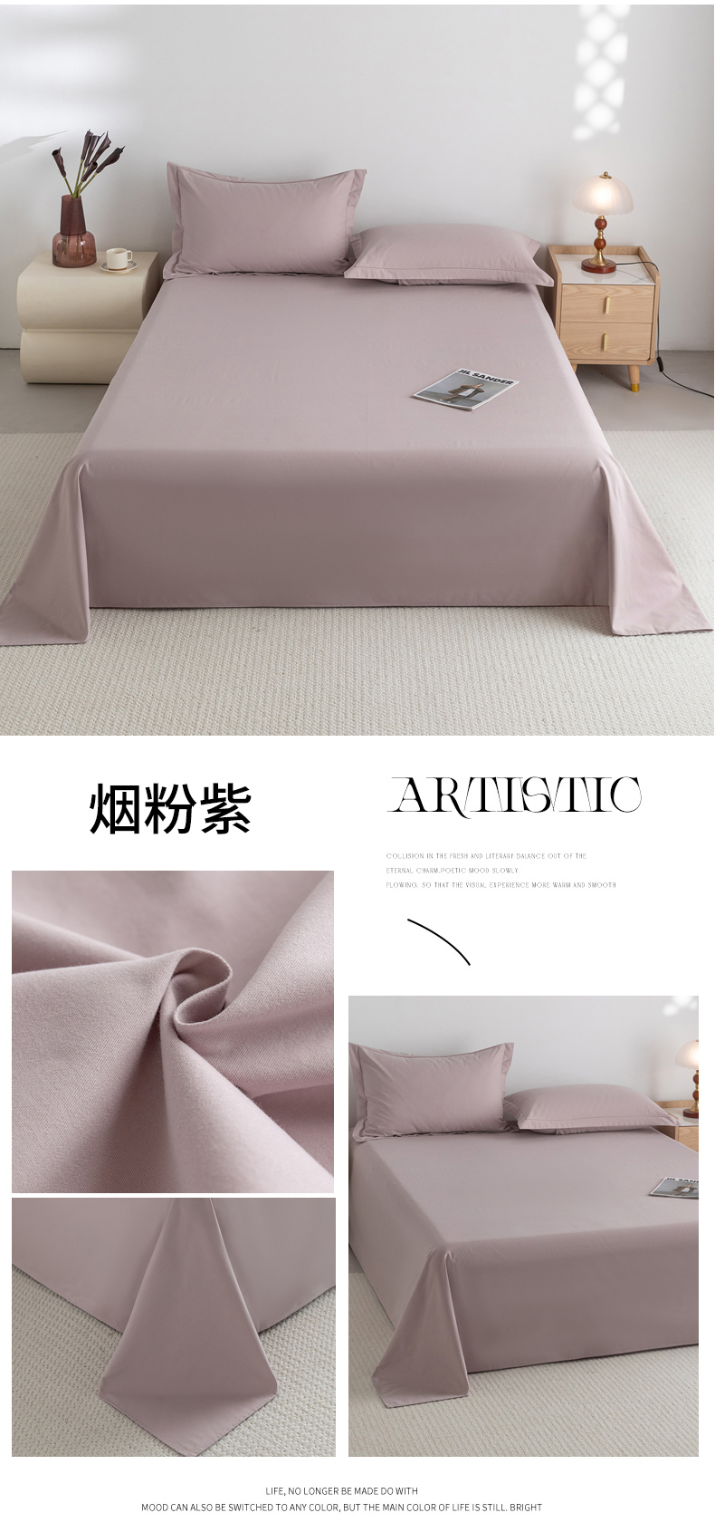 (总)宝时兰 2025新款加厚100%全棉高支高密长绒棉纯色磨毛床单纯棉单件床单-系列二【提供买家秀/可定制其他尺寸】,叠拍图,琥珀橙,丁香紫,米卡,摩卡棕,沫绿,木槿粉,奶黄,晴山蓝,深空灰,烟粉紫,组合图(仅参考)