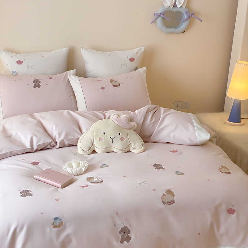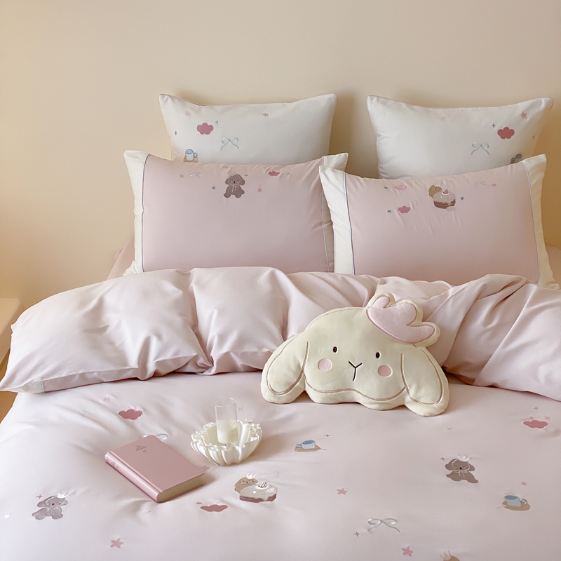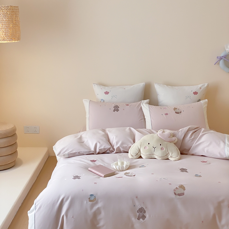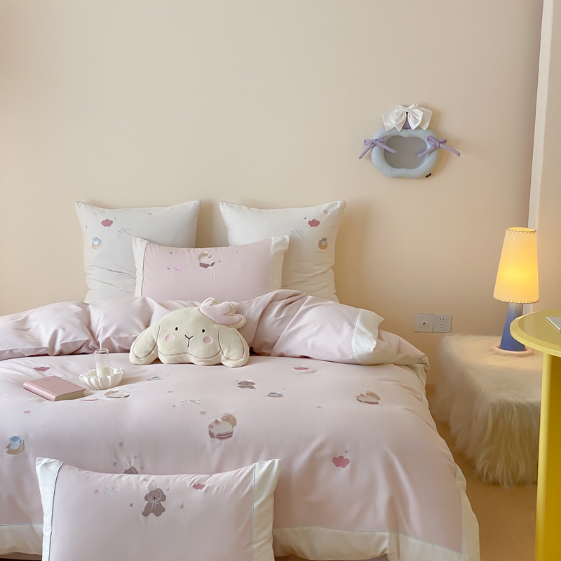 MIU缪家居 2025新款100支全棉纯棉磨毛贴布绣四件套-萌宠派对 萌宠派对-莓子粉