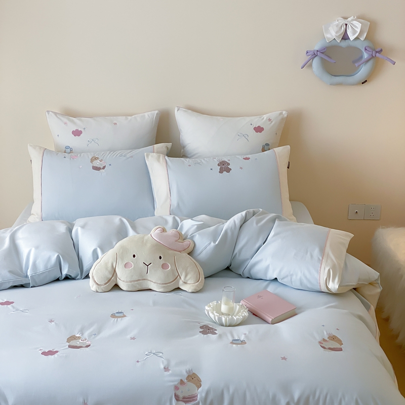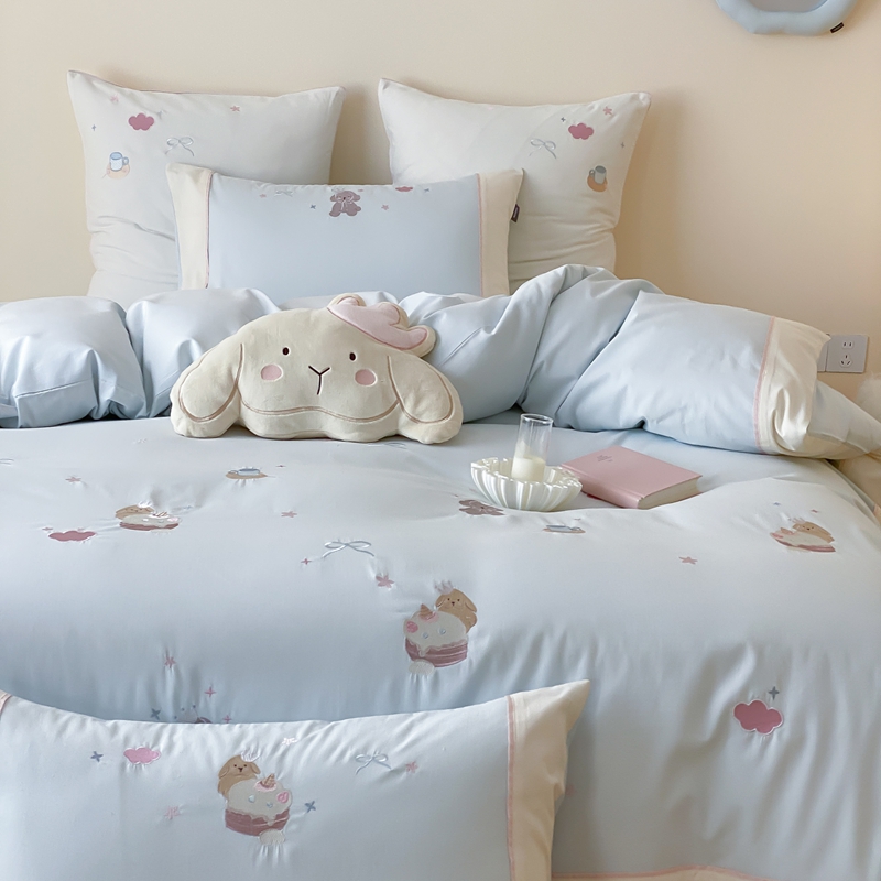 商品名称:MIU缪家居 2025新款100支全棉纯棉磨毛贴布绣四件套-萌宠派对 萌宠派对-莓子粉