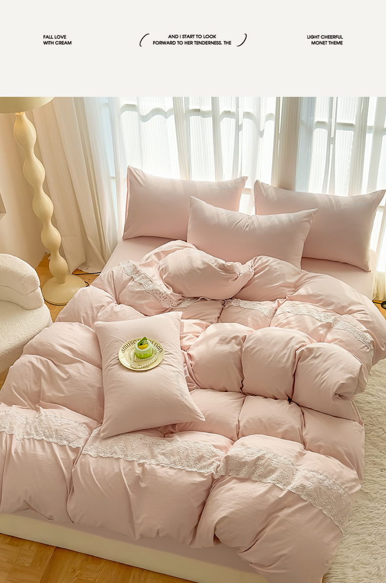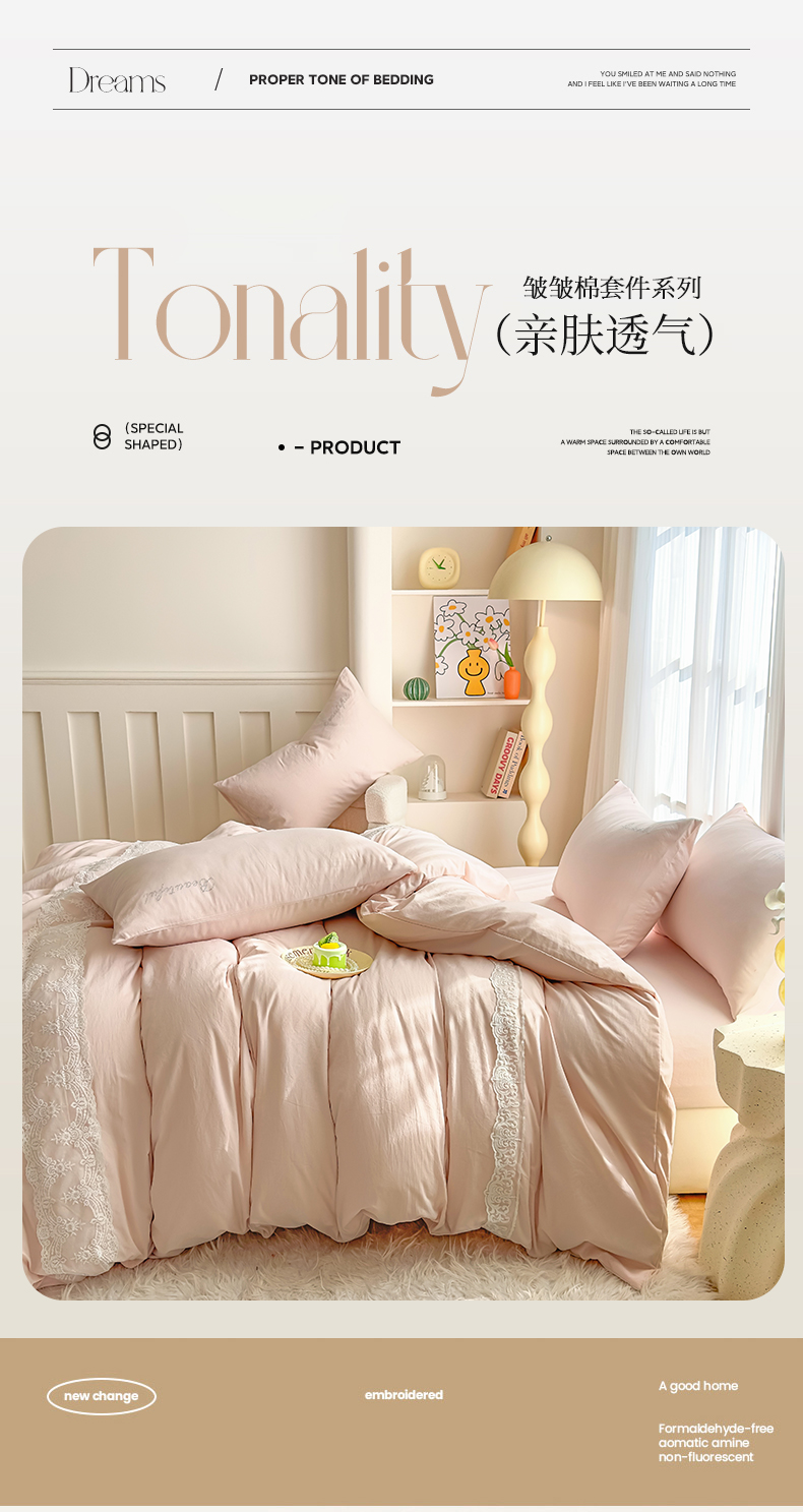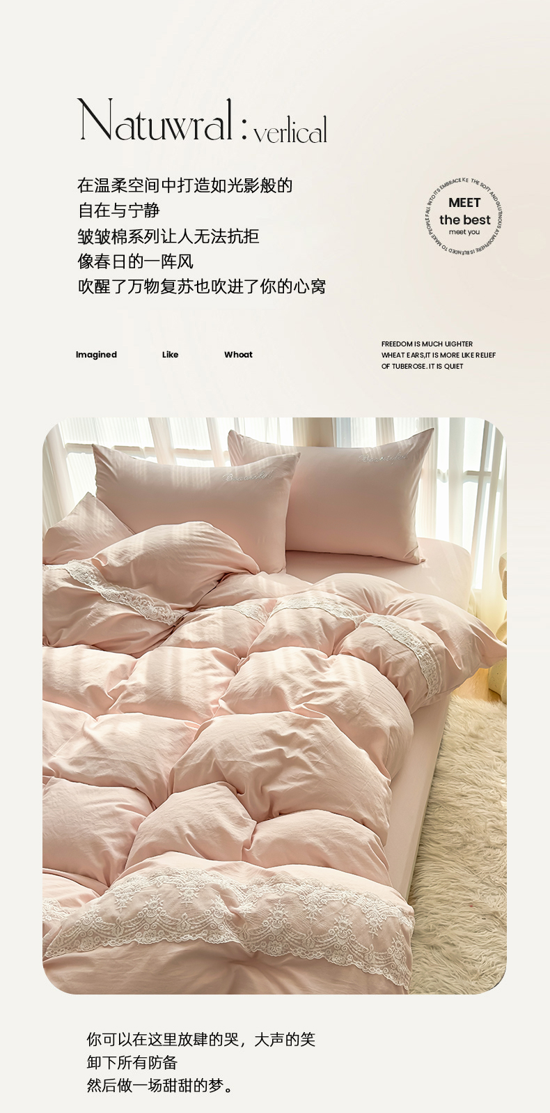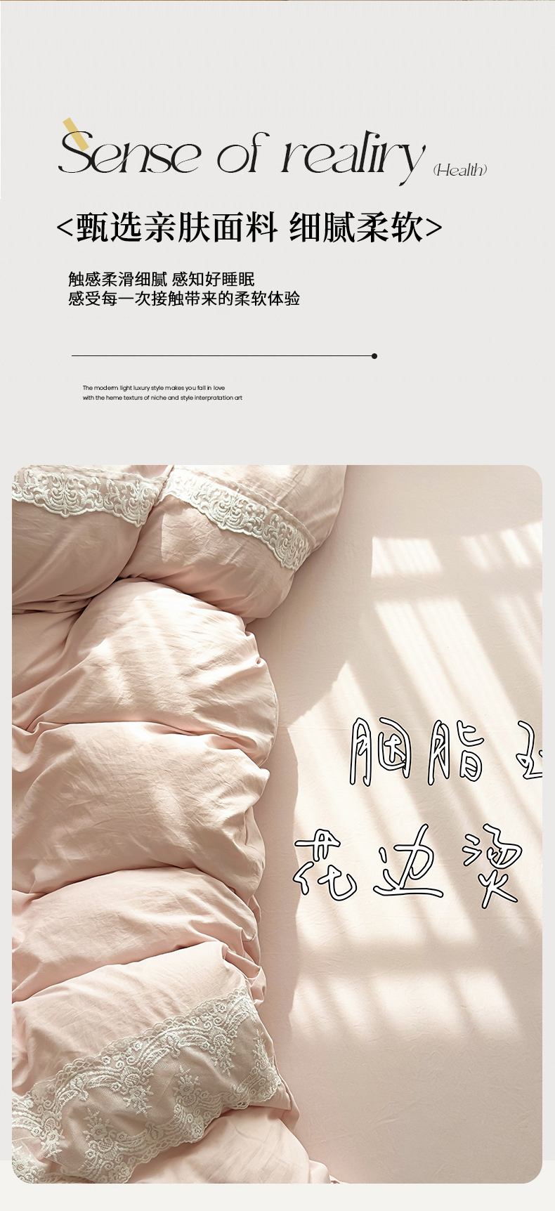 当前位置: 91家纺网 > 商品网购 > 床品套件 > 四件套 > 水洗棉四件套 > 灿哈 2025新款烫钻蕾丝花边水洗棉四件套 胭脂玉