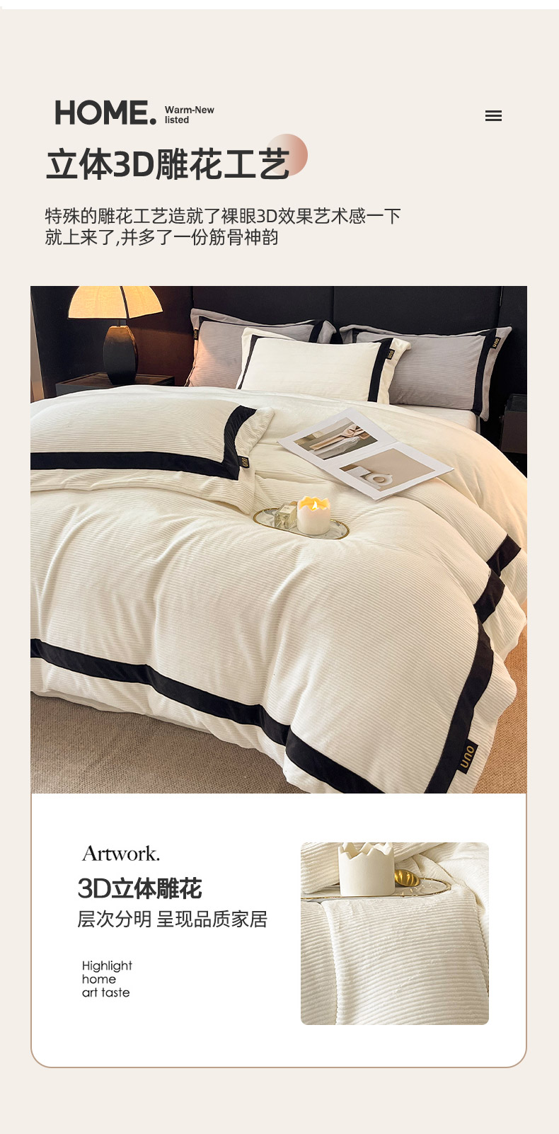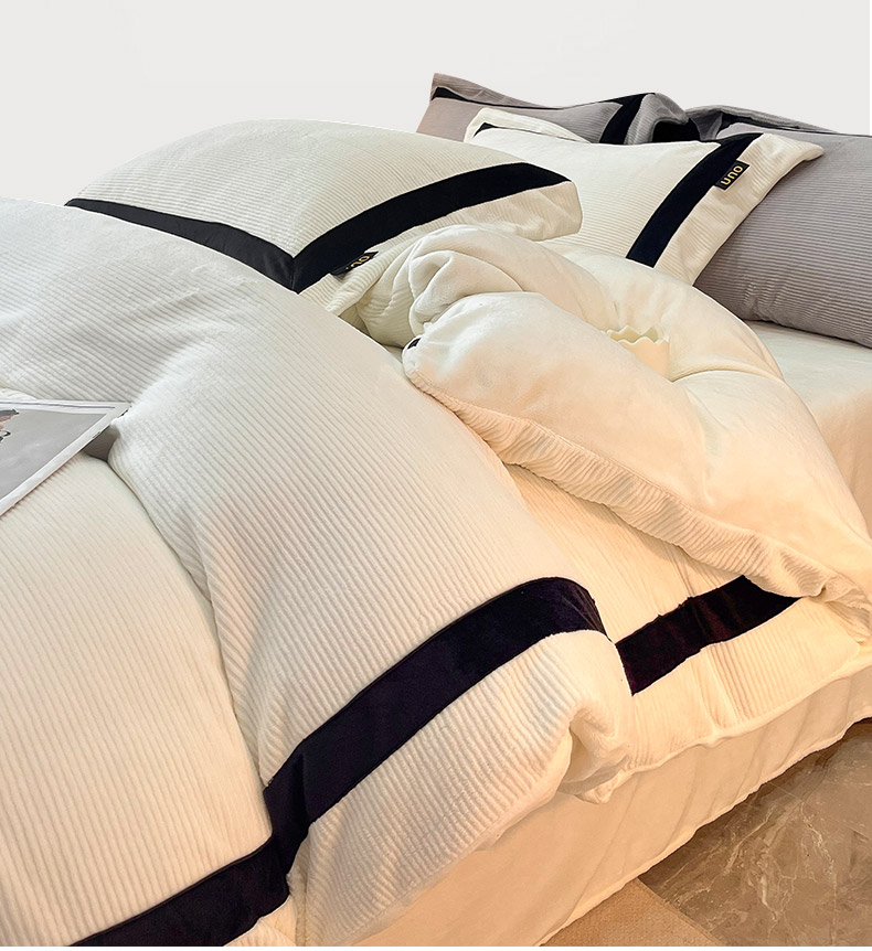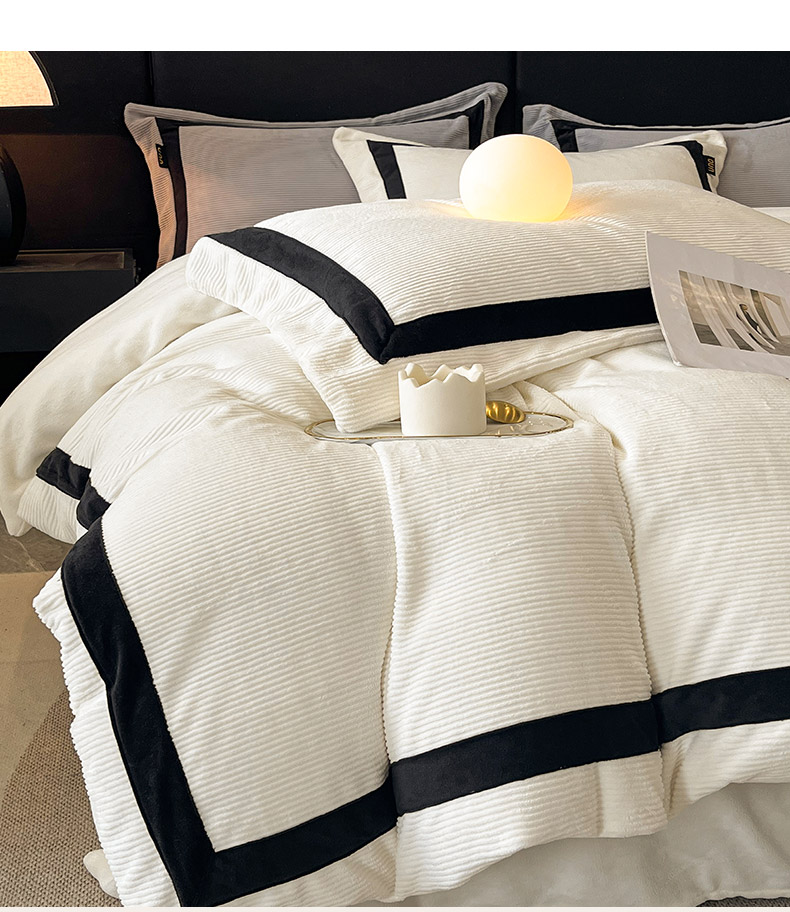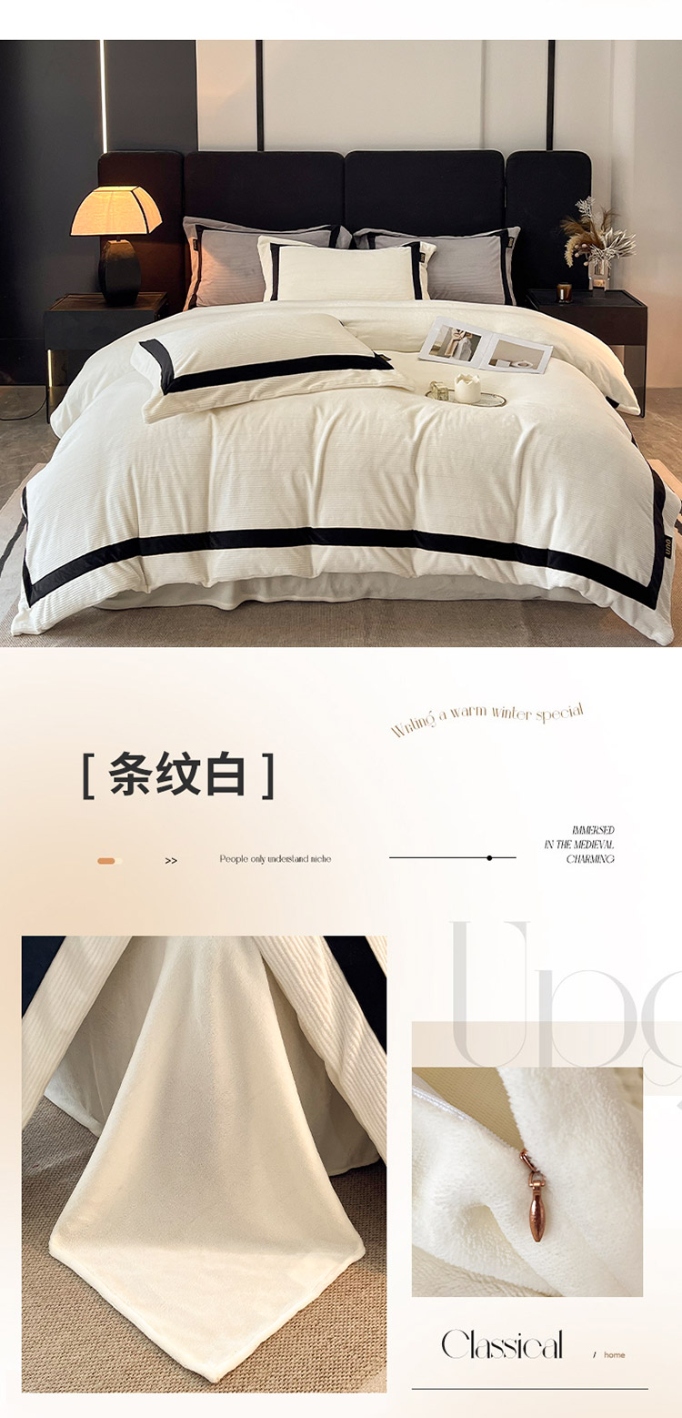 吾诺家居 吾诺 2025绽放系列--手工织带款雕花牛奶绒四件套 条纹白