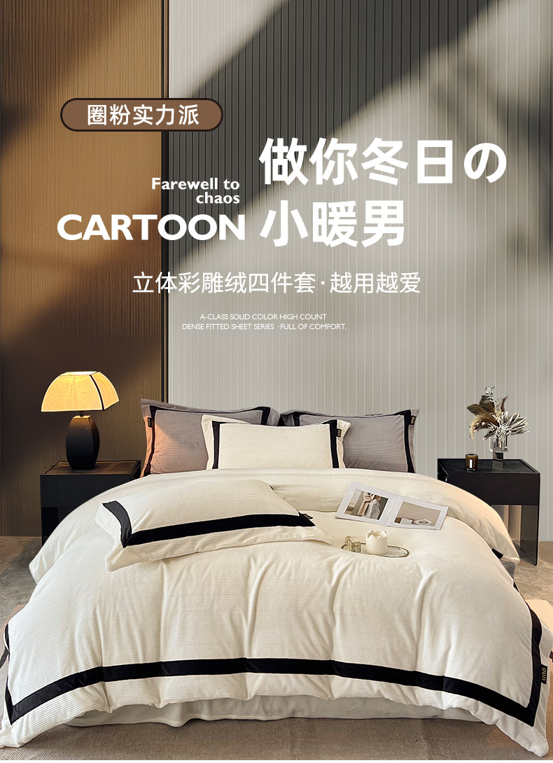 (总)吾诺家居 吾诺 纽扣式雕花牛奶绒四件套-曲线系列 烂花四件套纽扣款,曲线白,曲线粉,曲线灰,曲线咖