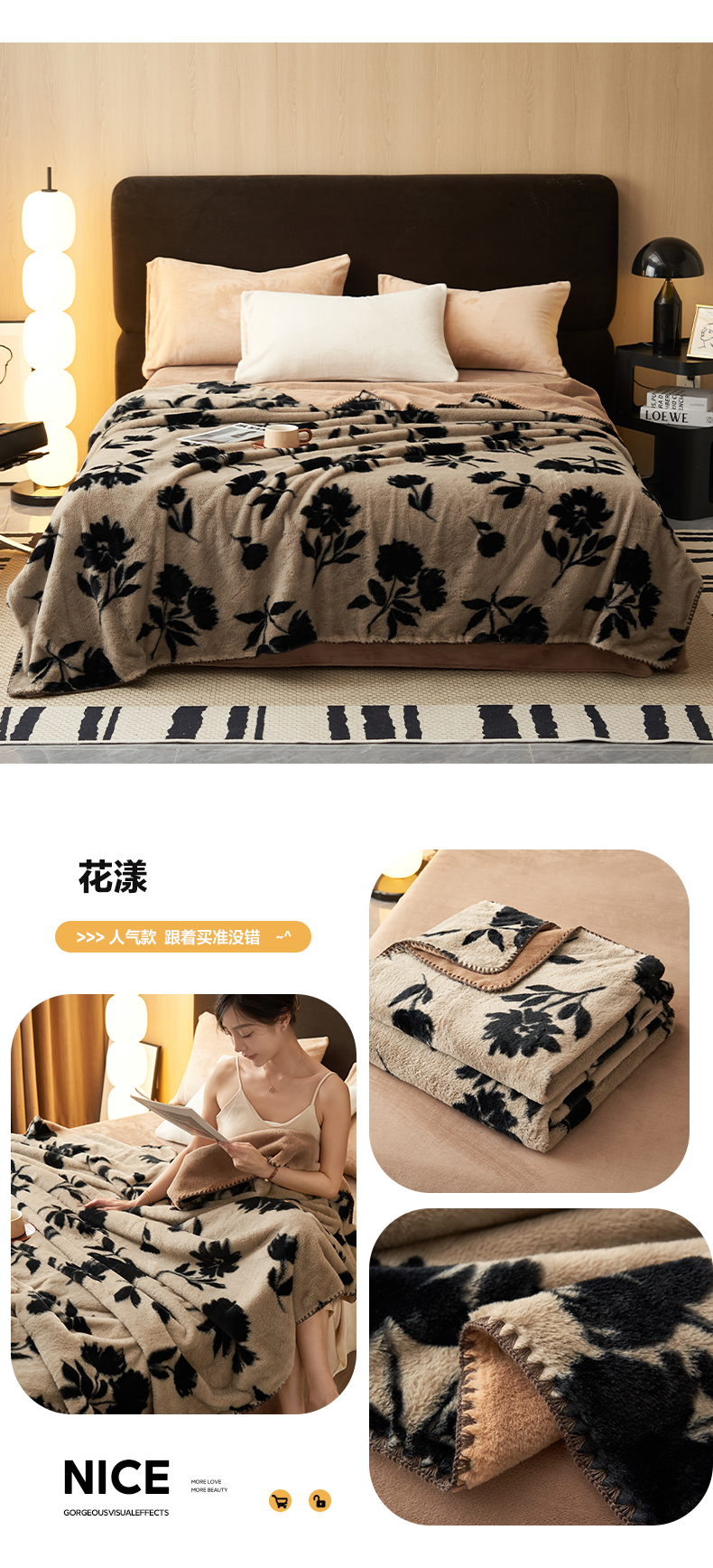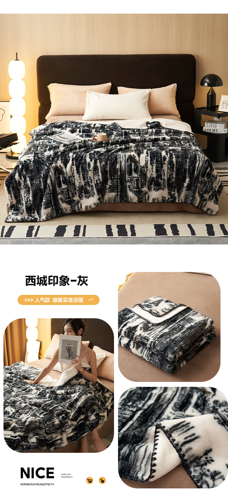 晨曦家纺 2025新款兔毛绒海獭绒双层毛毯三角针复合毛毯 幽梦