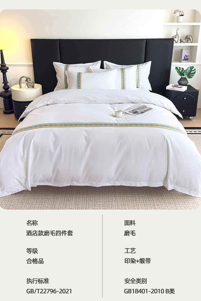 当前位置: 91家纺网 > 商品网购 > 床品套件 > 四件套 > 化纤活性四件套 > 梦庭帛美 2025新款酒店布草宾馆刺绣磨毛四件套 叶韵