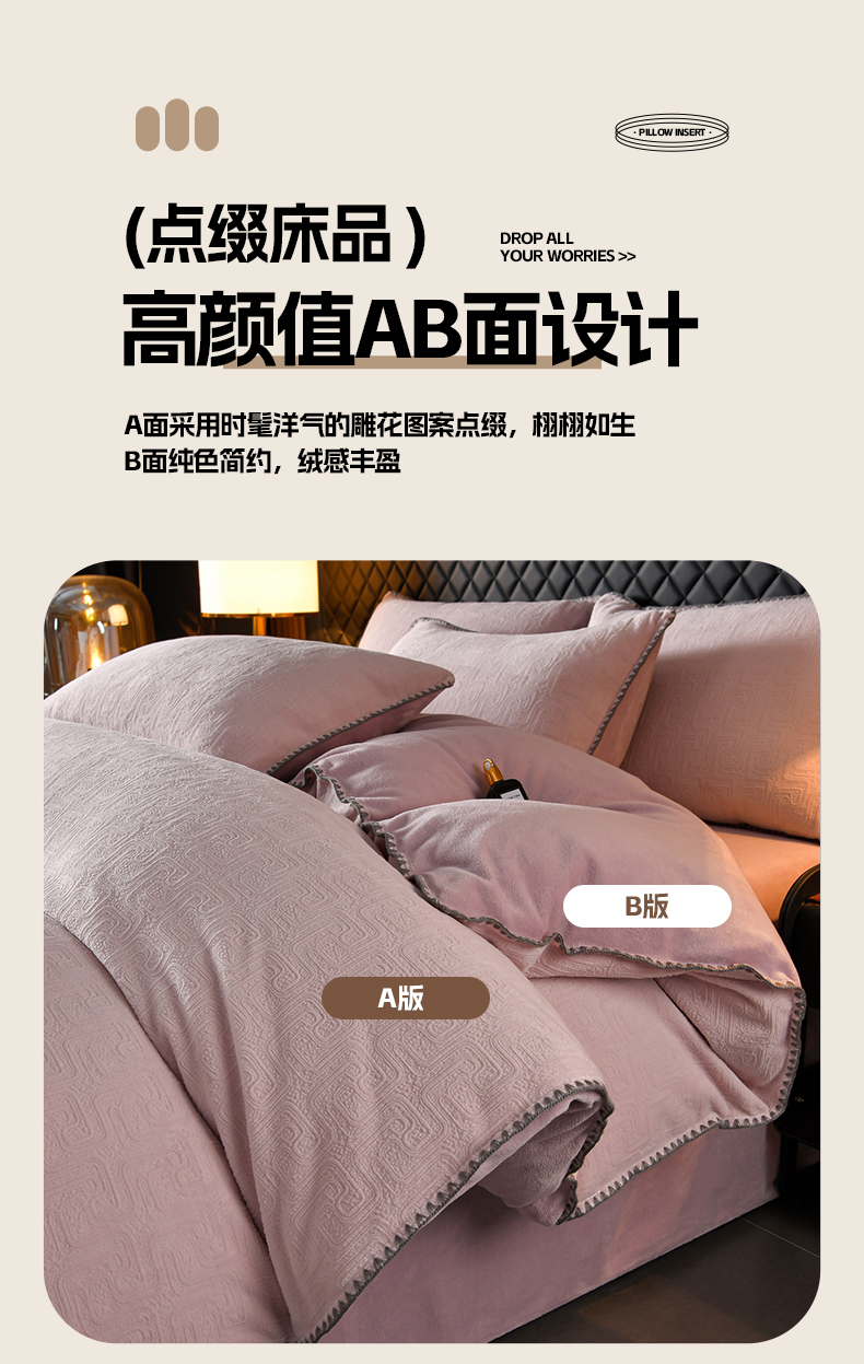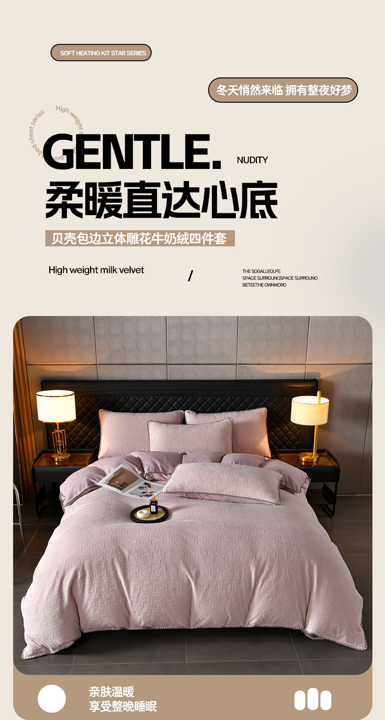 当前位置: 91家纺网 > 商品网购 > 床品套件 > 四件套 > 牛奶绒四件套 > 菡宝2025新款工艺款贝壳边雕花绒简约良品风牛奶绒四件套-梵西系列 支持定做定制尺寸 梵西紫