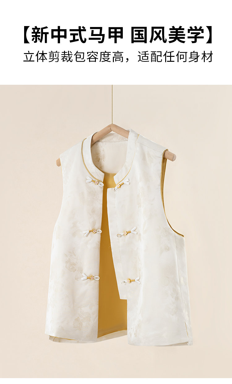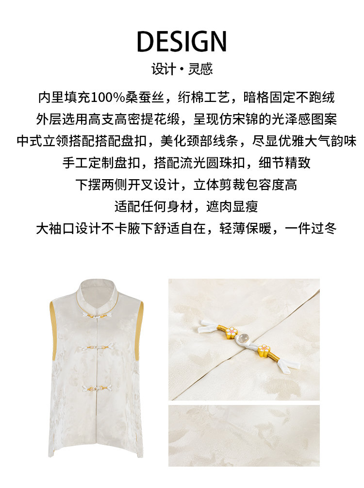 (总)蚕云阁蚕丝家居 2025新款银白色国风桑蚕丝填充马甲