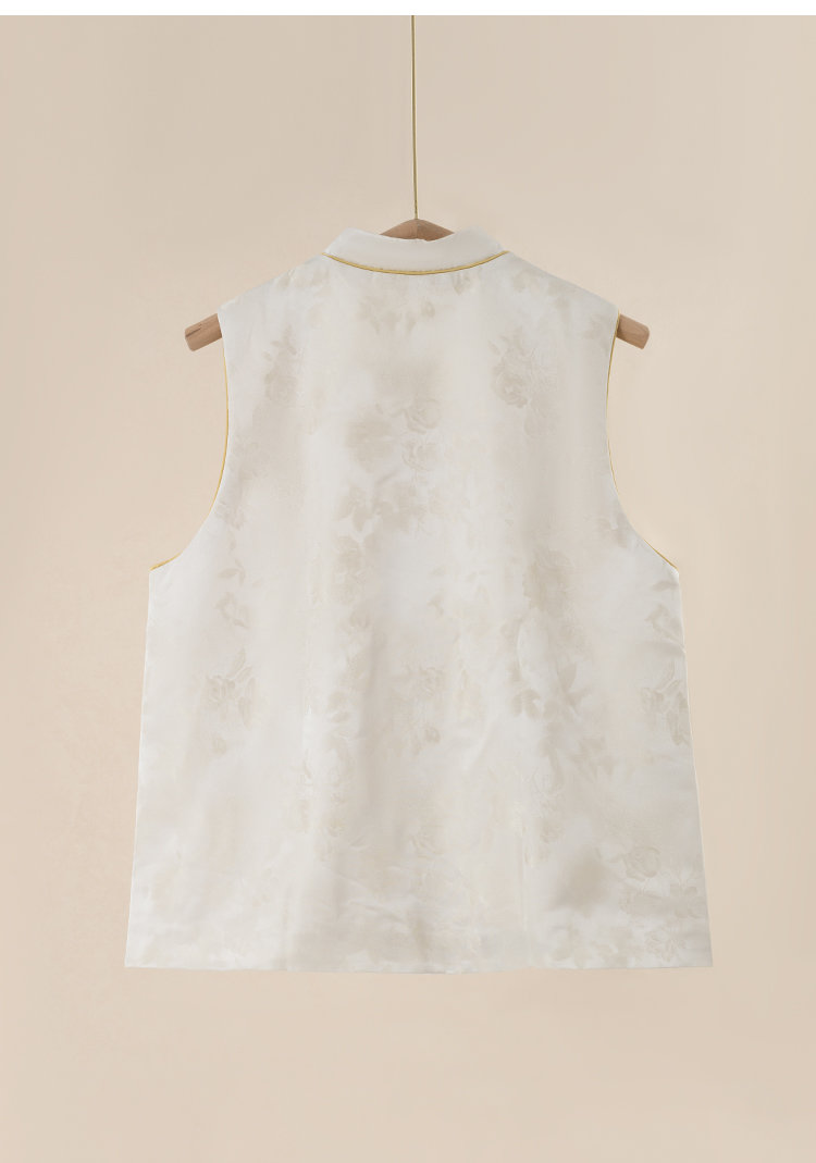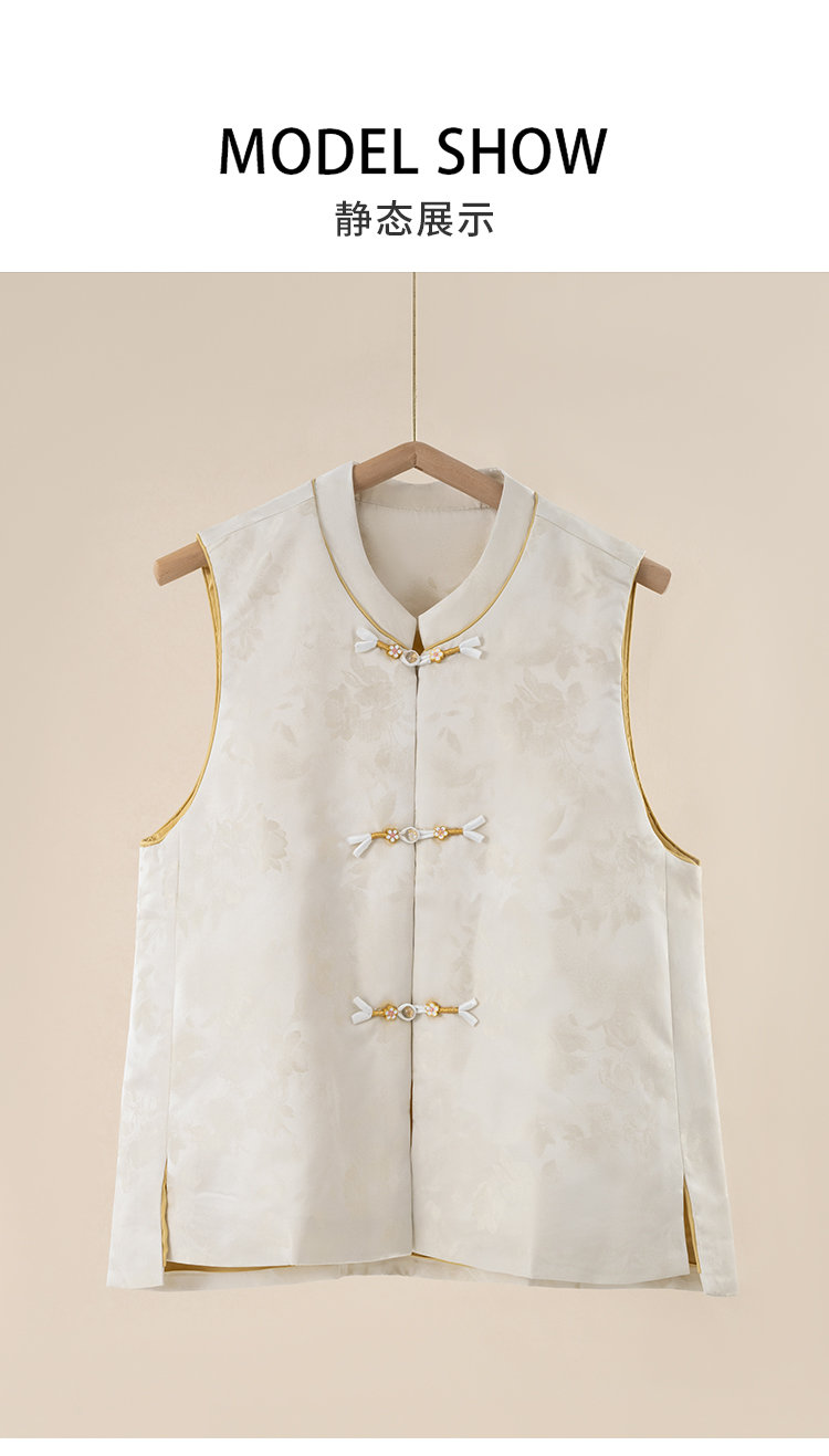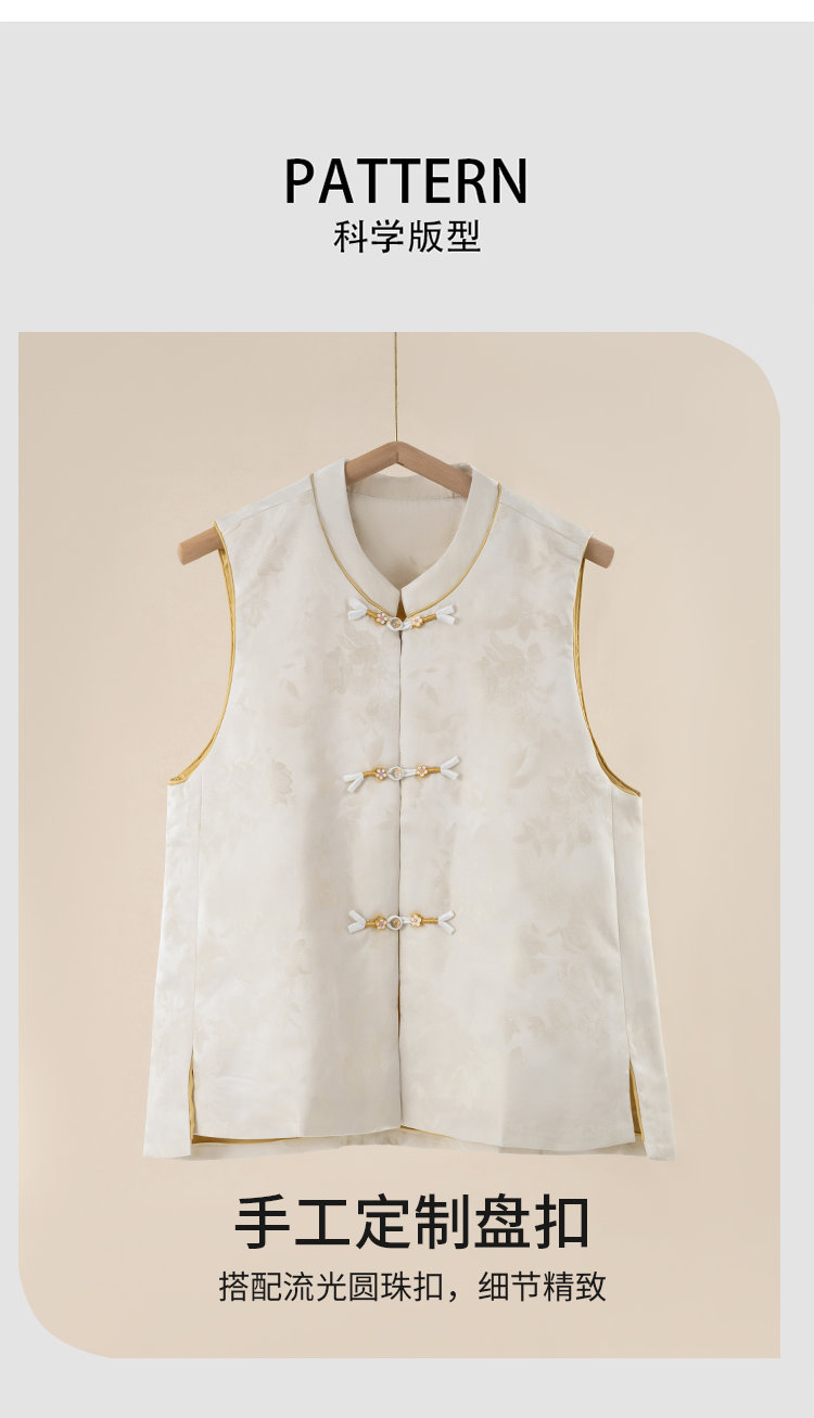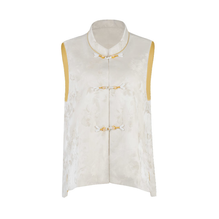 商品名称:(总)蚕云阁蚕丝家居 2025新款银白色国风桑蚕丝填充马甲