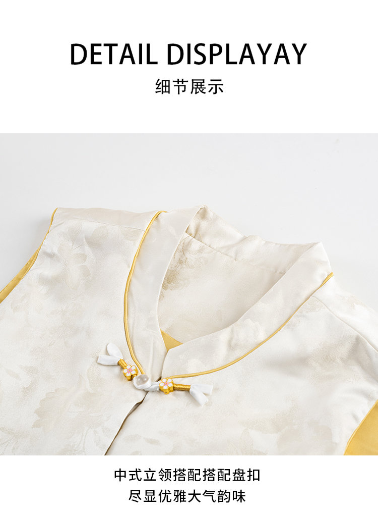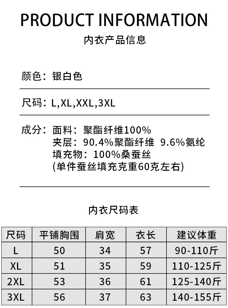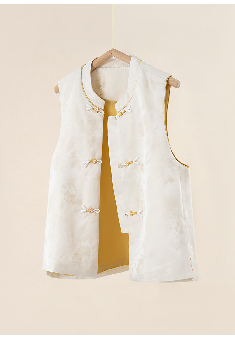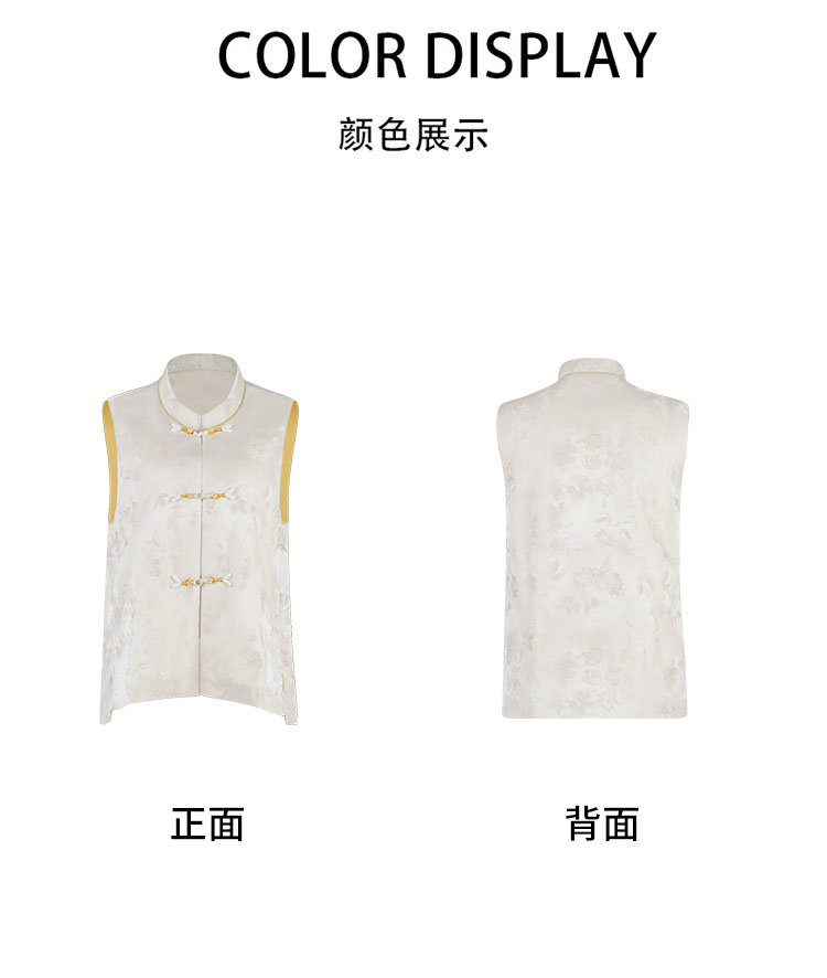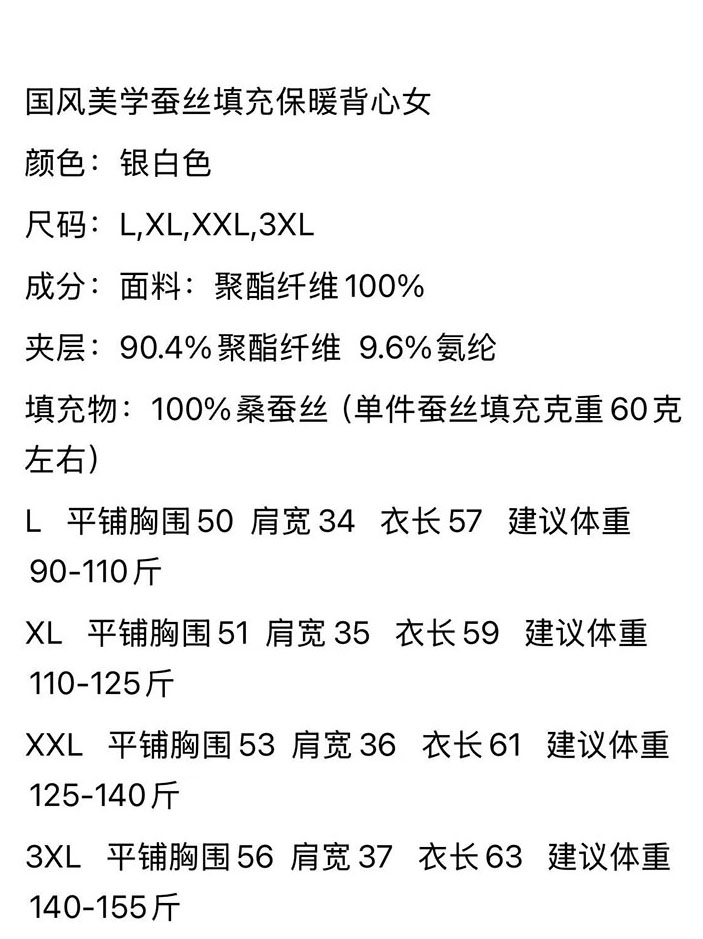 商品名称:(总)蚕云阁蚕丝家居 2025新款银白色国风桑蚕丝填充马甲