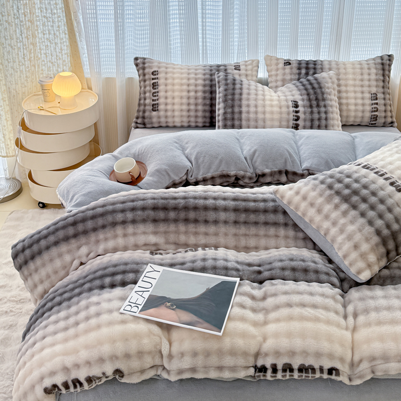 (总)(买家秀 爆款不断货)A类母婴级高克重獭兔绒四件套牛奶绒四件套牛奶绒四件套纯色韩版荷叶边兔毛绒四件套,泡泡粉玉,泡泡-滨海绿,泡泡-摩登卡,泡泡高级灰,泡泡卡其,泡泡奶白