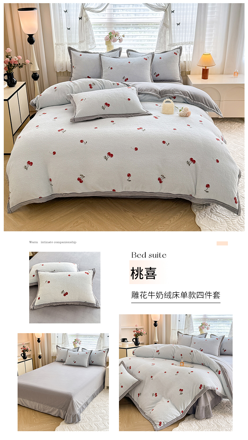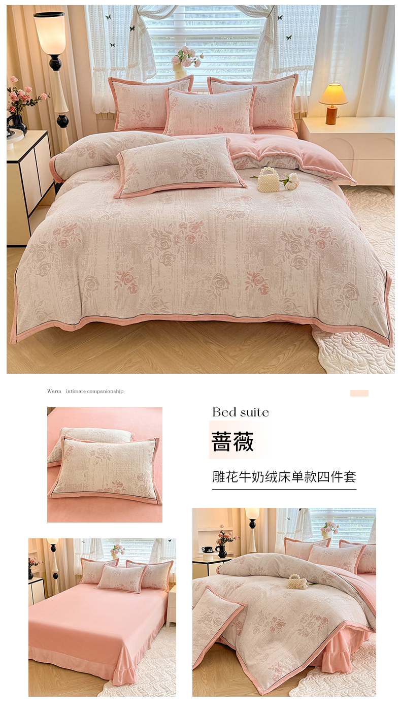 商品名称:韩约家纺 2025新款雕花牛奶绒法式床单款四件套 蔷薇