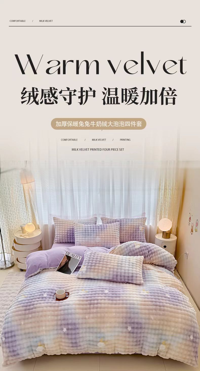 当前位置: 91家纺网 > 商品网购 > 床品套件 > 四件套 > 牛奶绒四件套 > 小叮当家纺仓储工厂店 2025新款印花兔兔绒牛奶绒大泡泡四件套 大泡泡-星梦