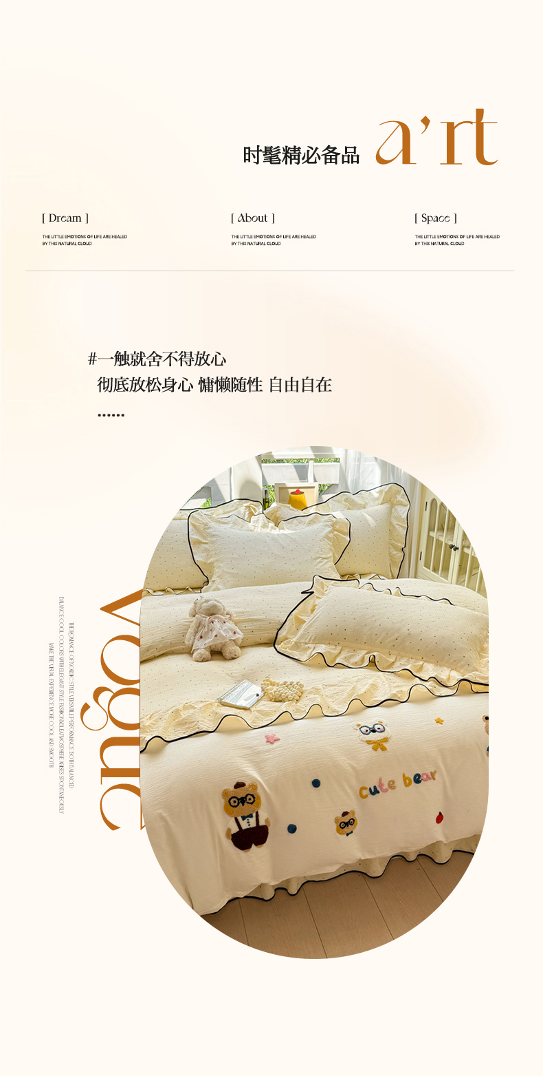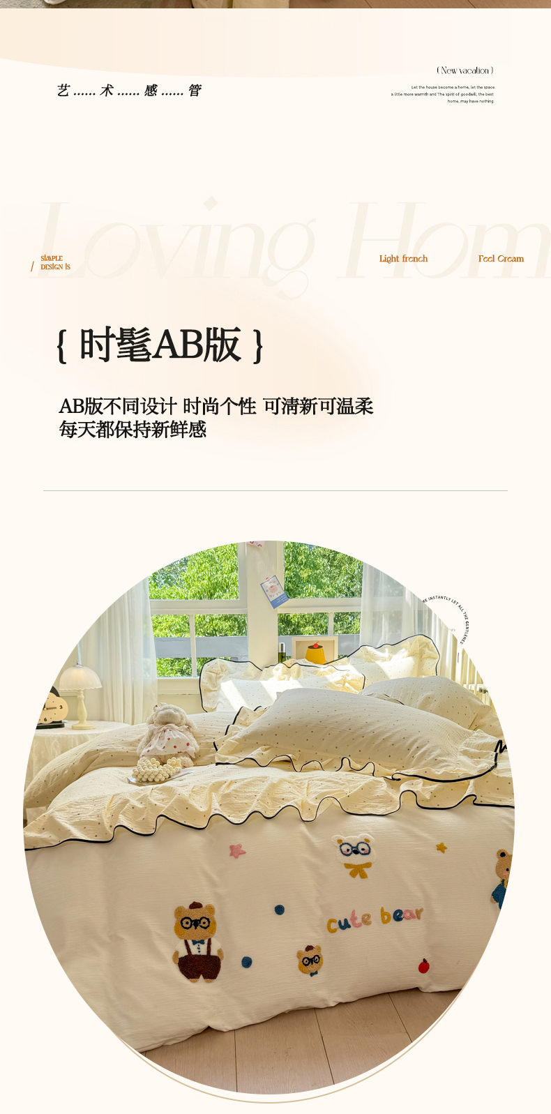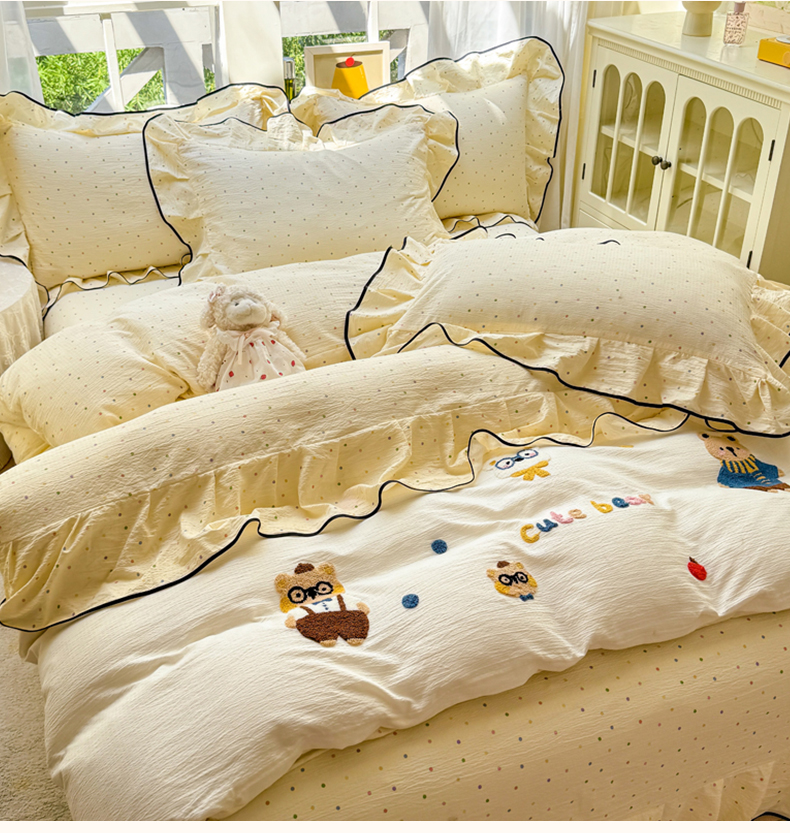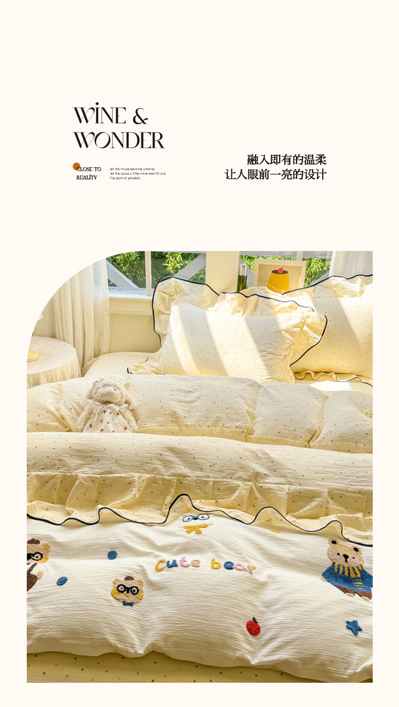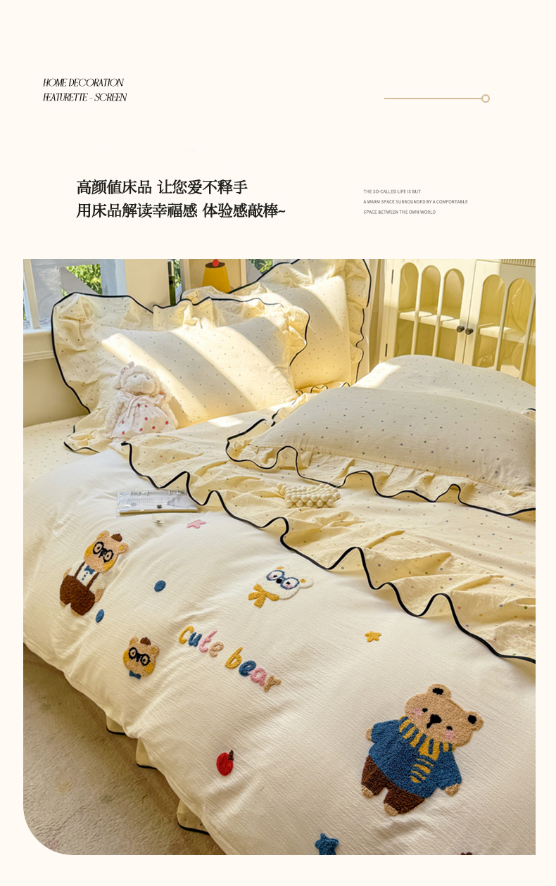 商品名称:麋兔 2025新款双层纱毛巾绣花边四件套 熊熊小队
