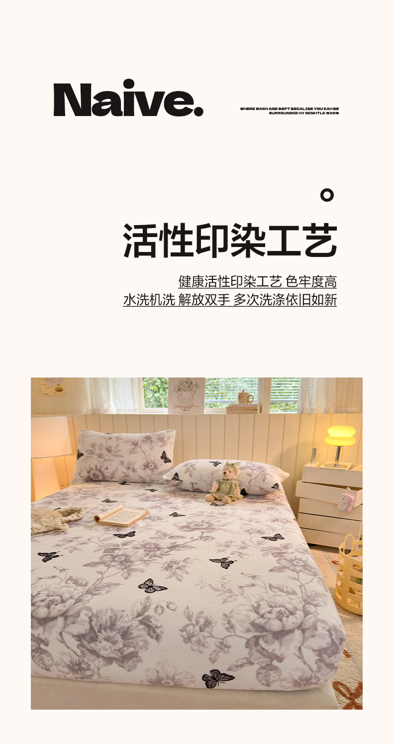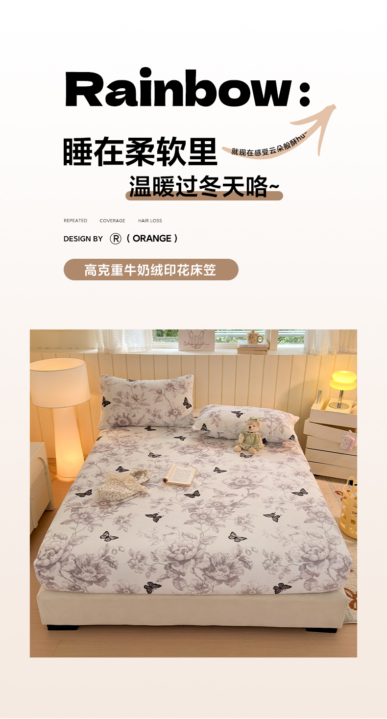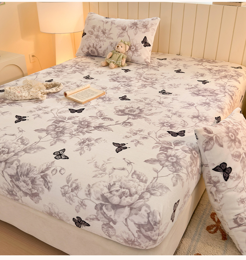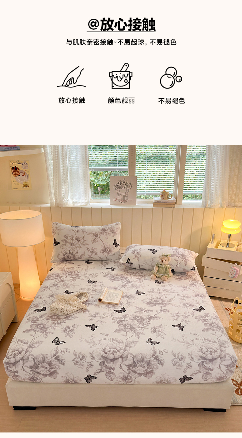 丽美人家纺 2025年牛奶绒小版印花床笠单床笠床笠单件 水墨花蝴蝶