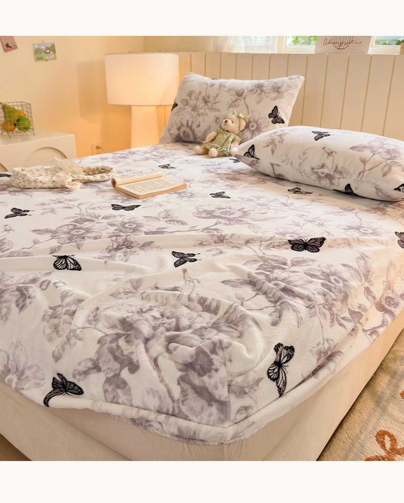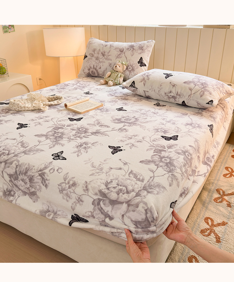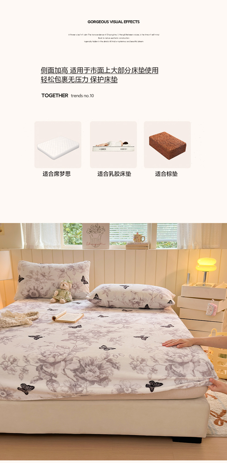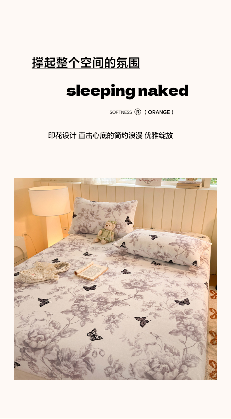 丽美人家纺 2025年牛奶绒小版印花床笠单床笠床笠单件 水墨花蝴蝶