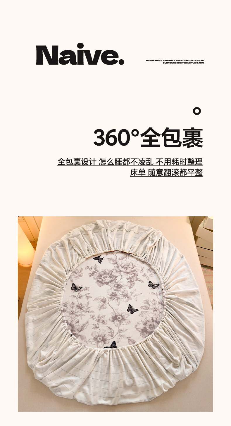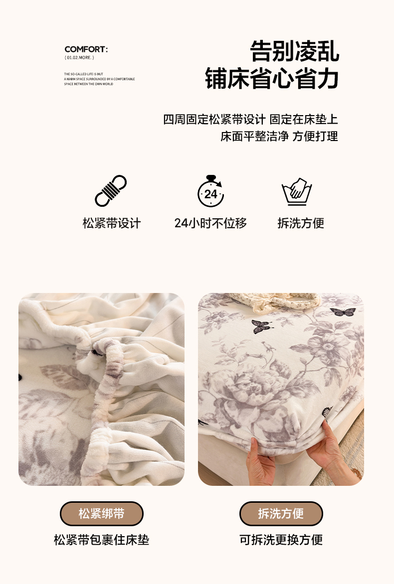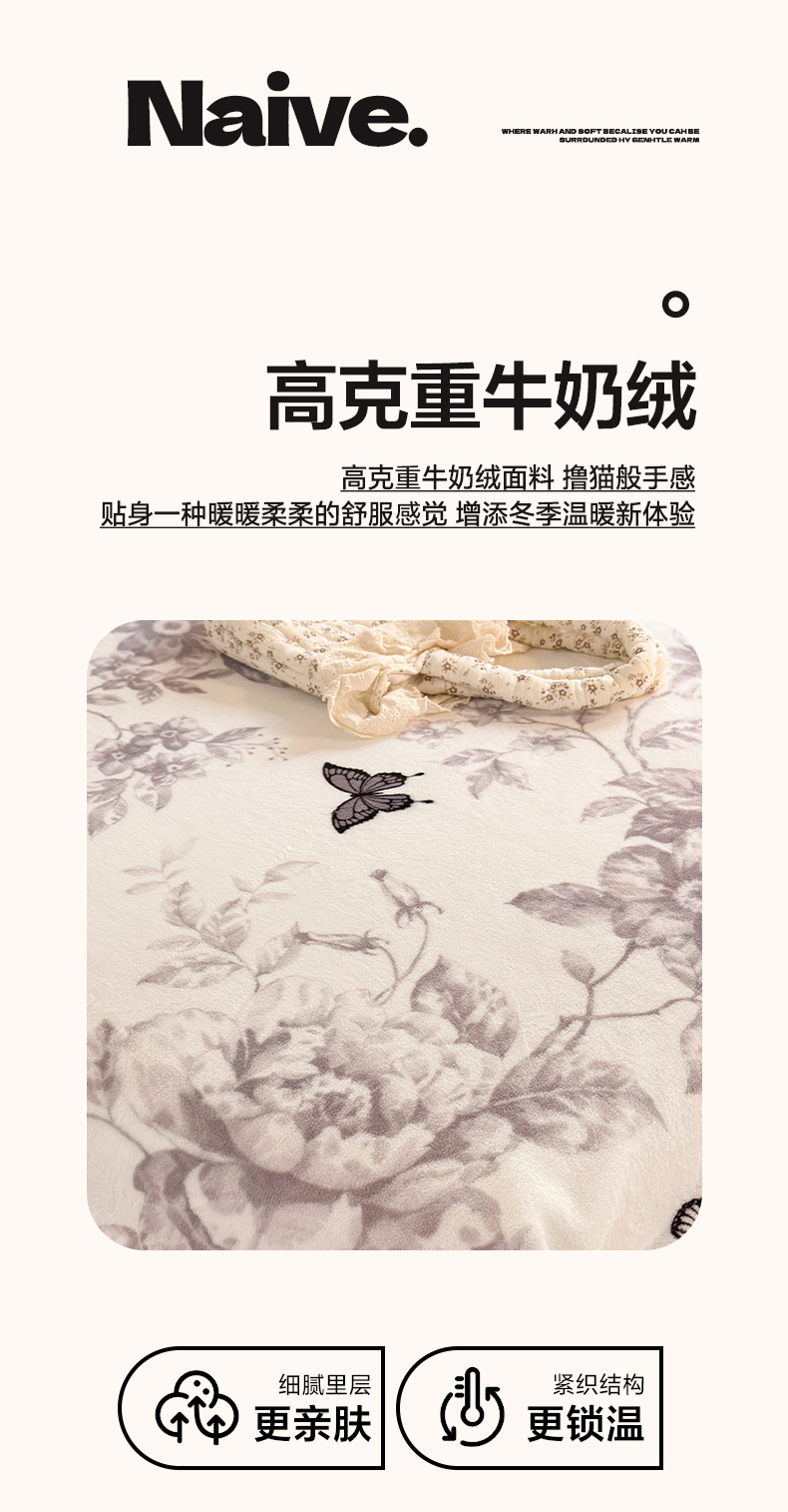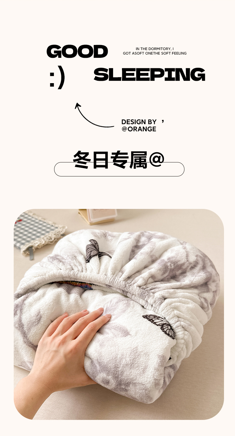 丽美人家纺 2025年牛奶绒小版印花床笠单床笠床笠单件 水墨花蝴蝶