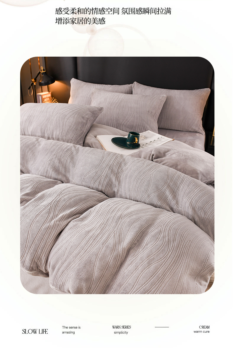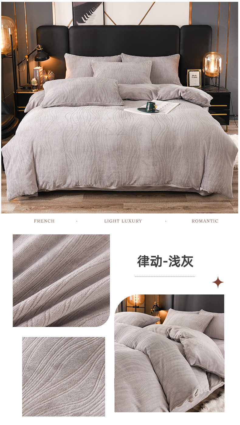 当前位置: 91家纺网 > 商品网购 > 床品套件 > 四件套 > 牛奶绒四件套 > 米瑞娜 2025新款牛奶绒四件套 律动-浅灰