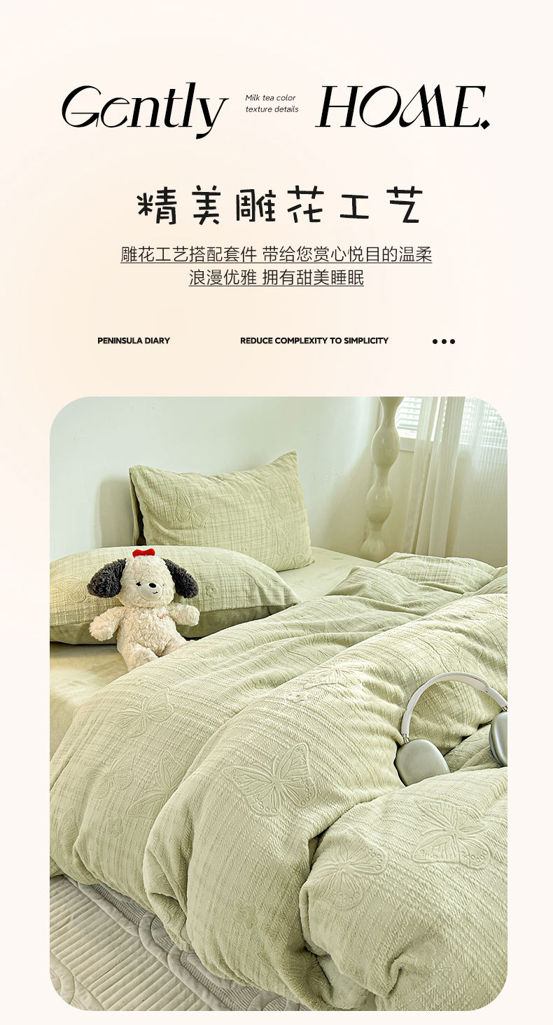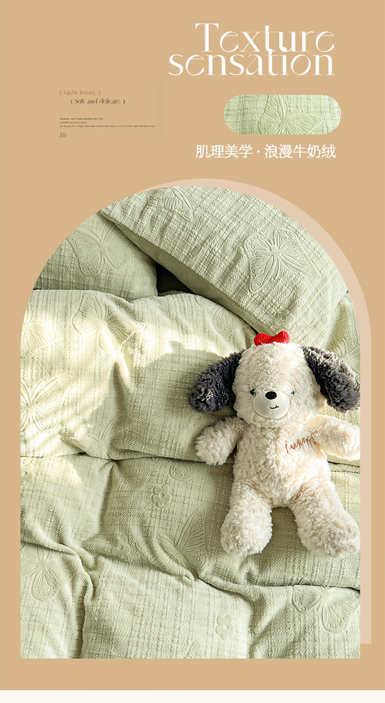 当前位置: 91家纺网 > 商品网购 > 床品套件 > 四件套 > 牛奶绒四件套 > 耀悦家纺 2025新款INS博主风立体A类全消光雕花牛奶绒四件套加厚韩系系列 田间梦蝶-浅蓝