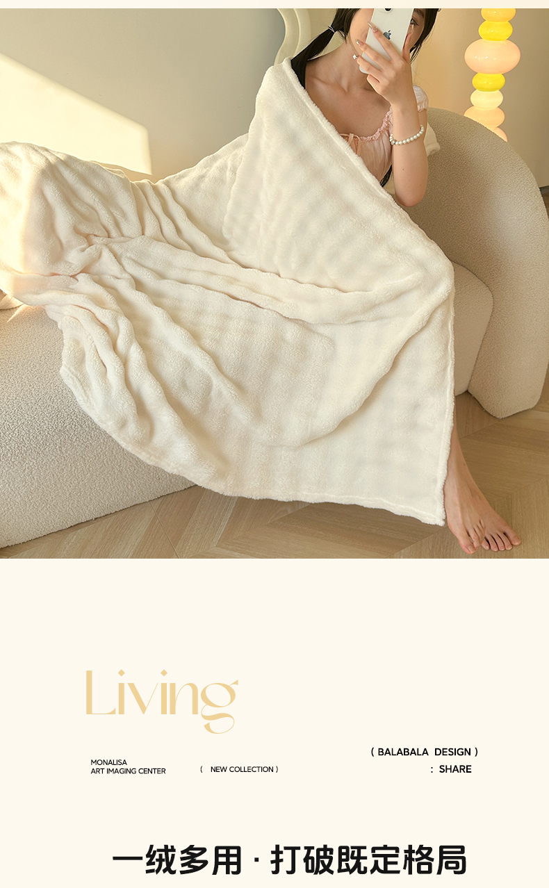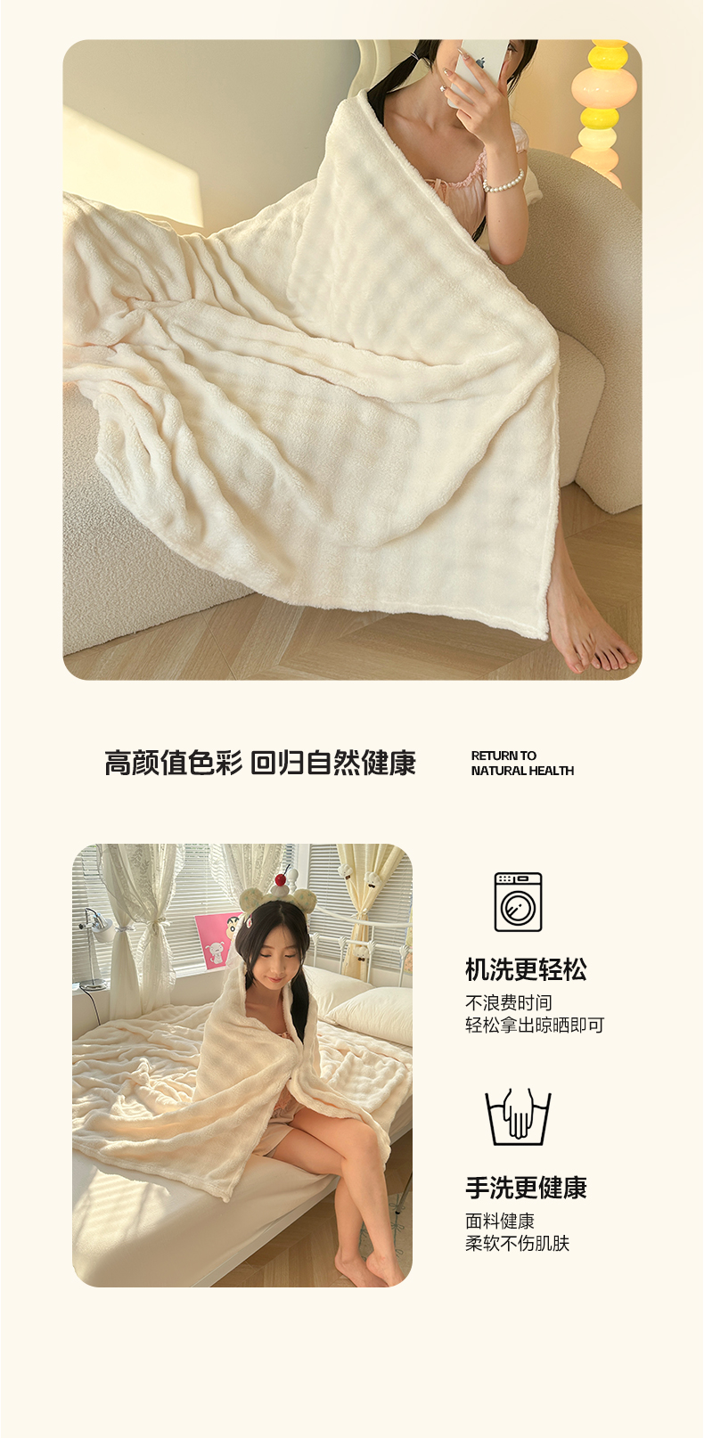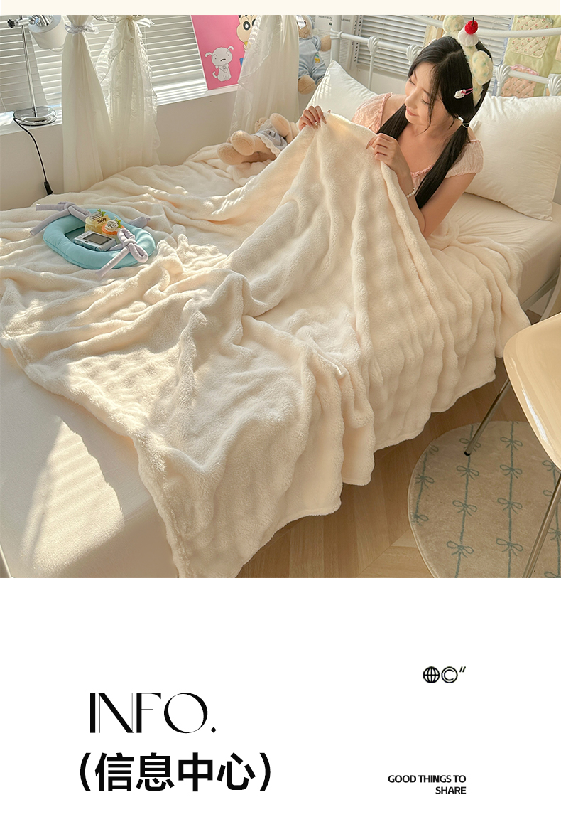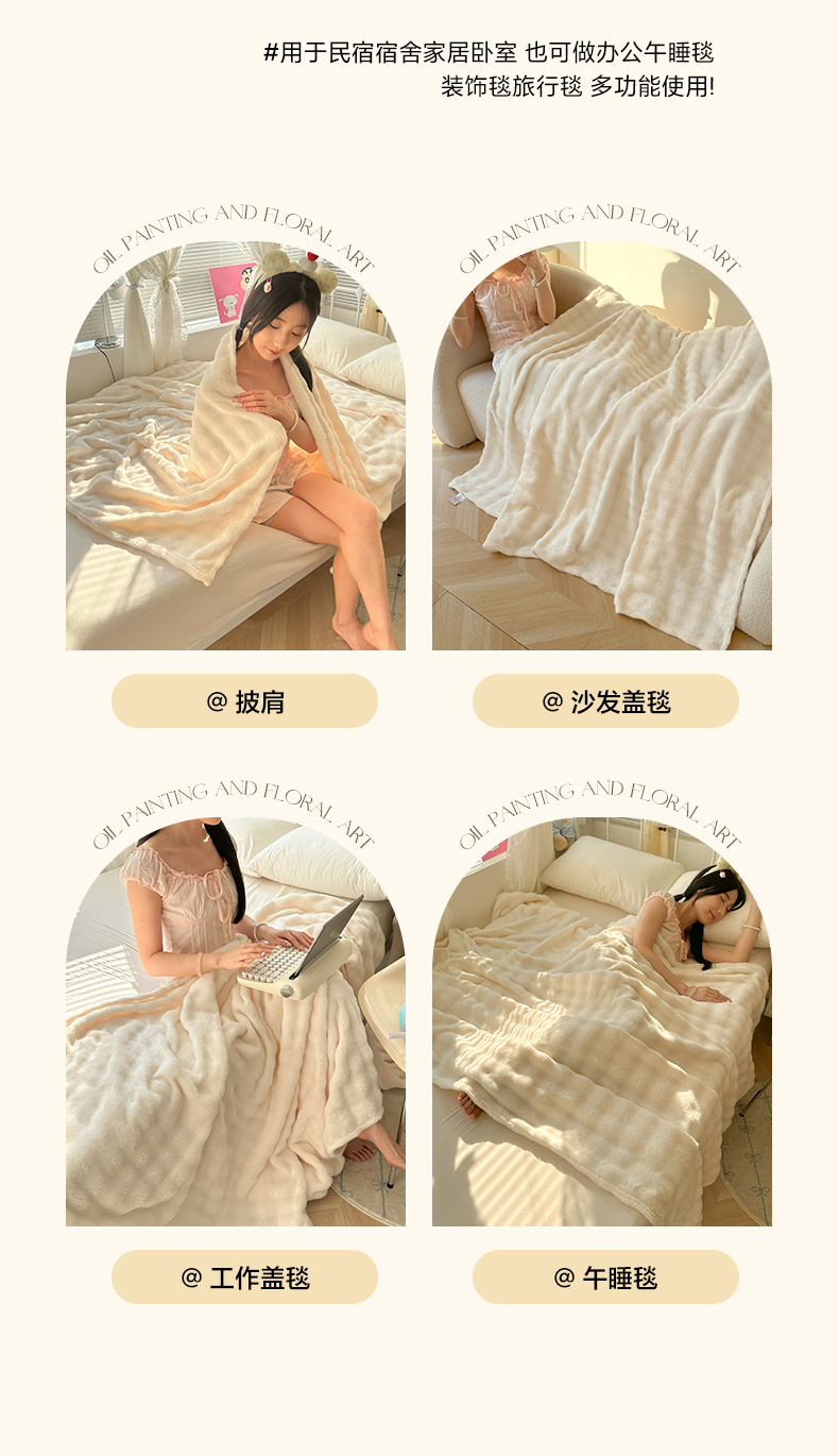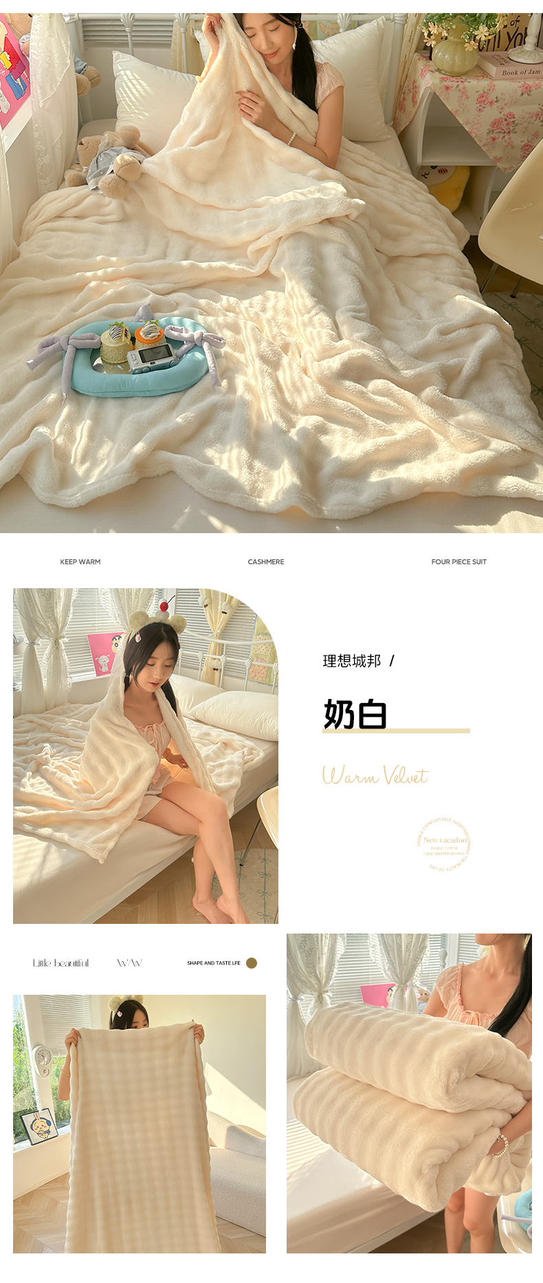 韩巢家纺 2025新款高克重泡泡绒毛毯多功能牛奶绒毯子支持跨境电商 奶白