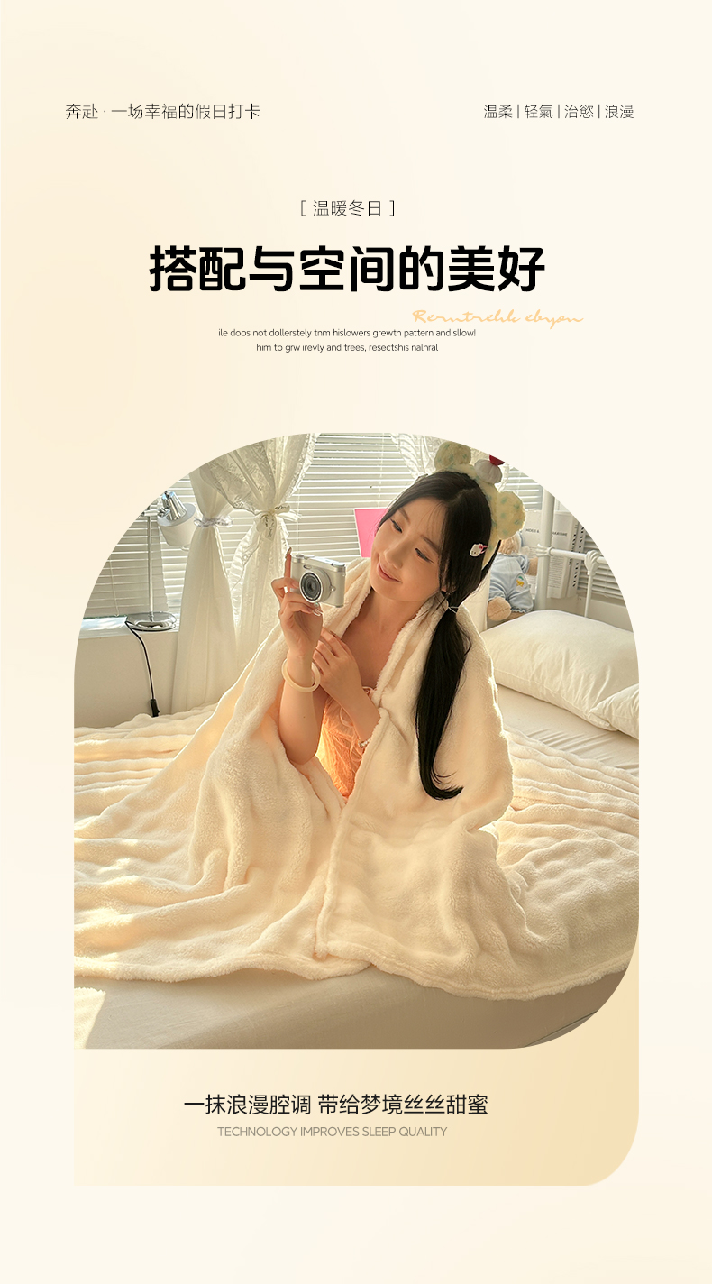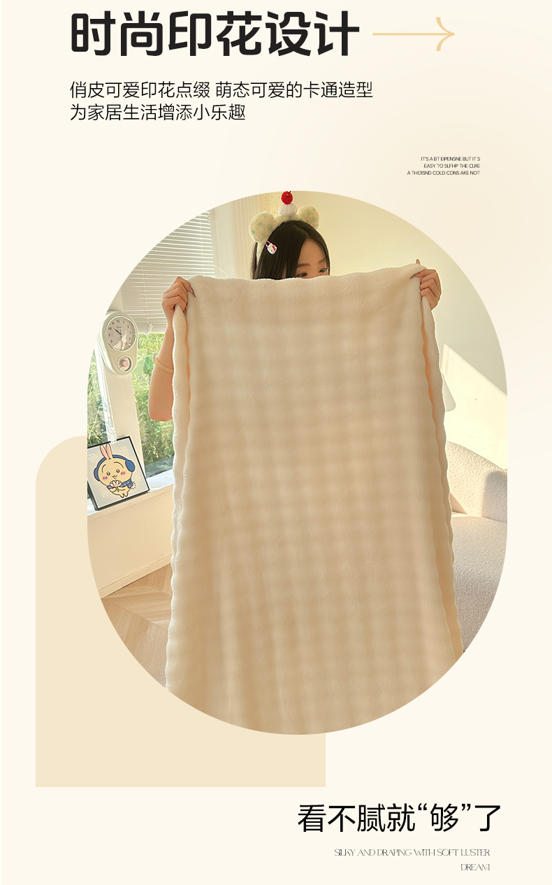 商品名称:韩巢家纺 2025新款高克重泡泡绒毛毯多功能牛奶绒毯子支持跨境电商 奶白