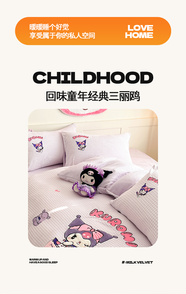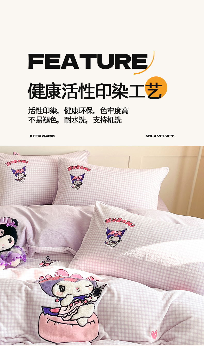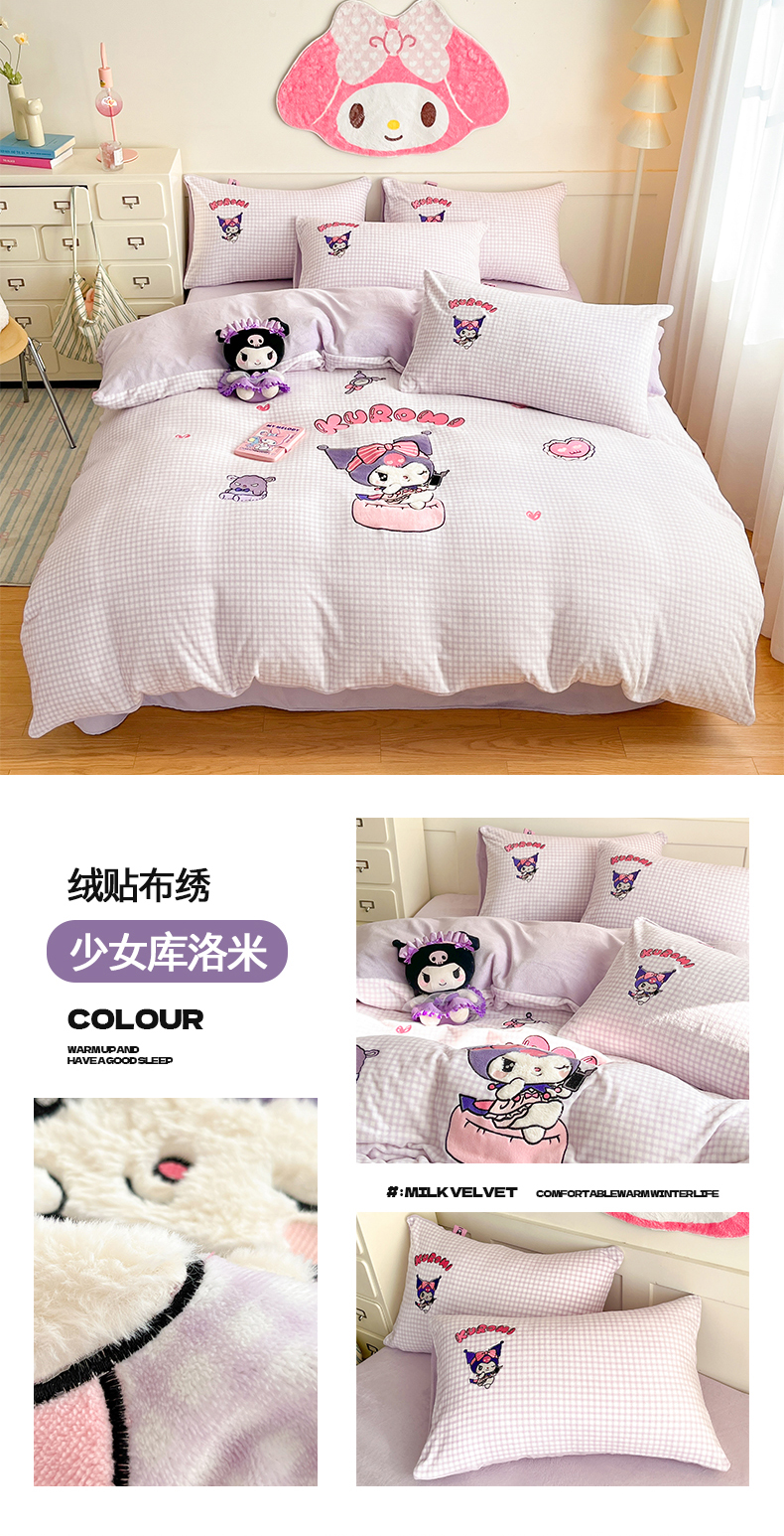 当前位置: 91家纺网 > 商品网购 > 床品套件 > 四件套 > 牛奶绒四件套 > 金爱家 2025新款A类三丽鸥授权Kitty兔毛贴布绣毛巾绣印加绣卡通少女加厚牛奶绒系列四件套 绒贴布绣-少女库洛米