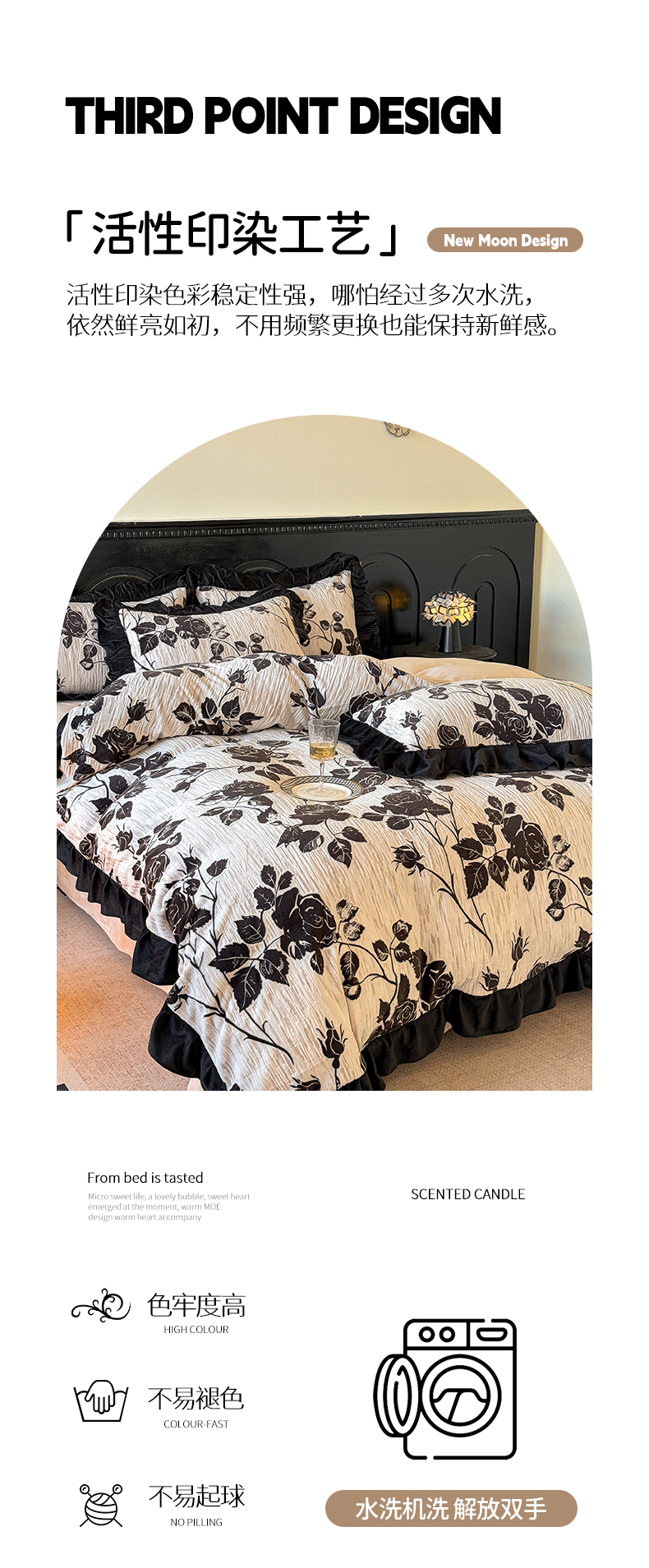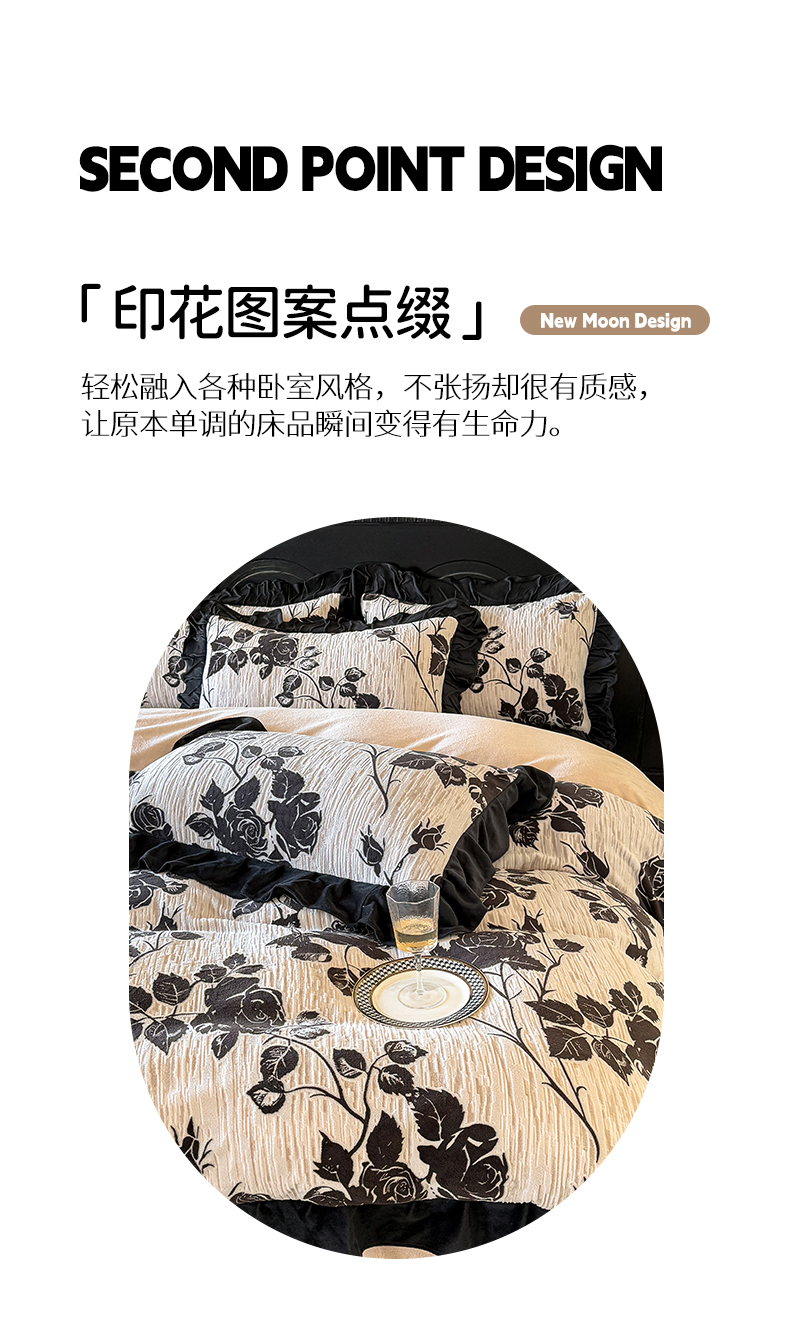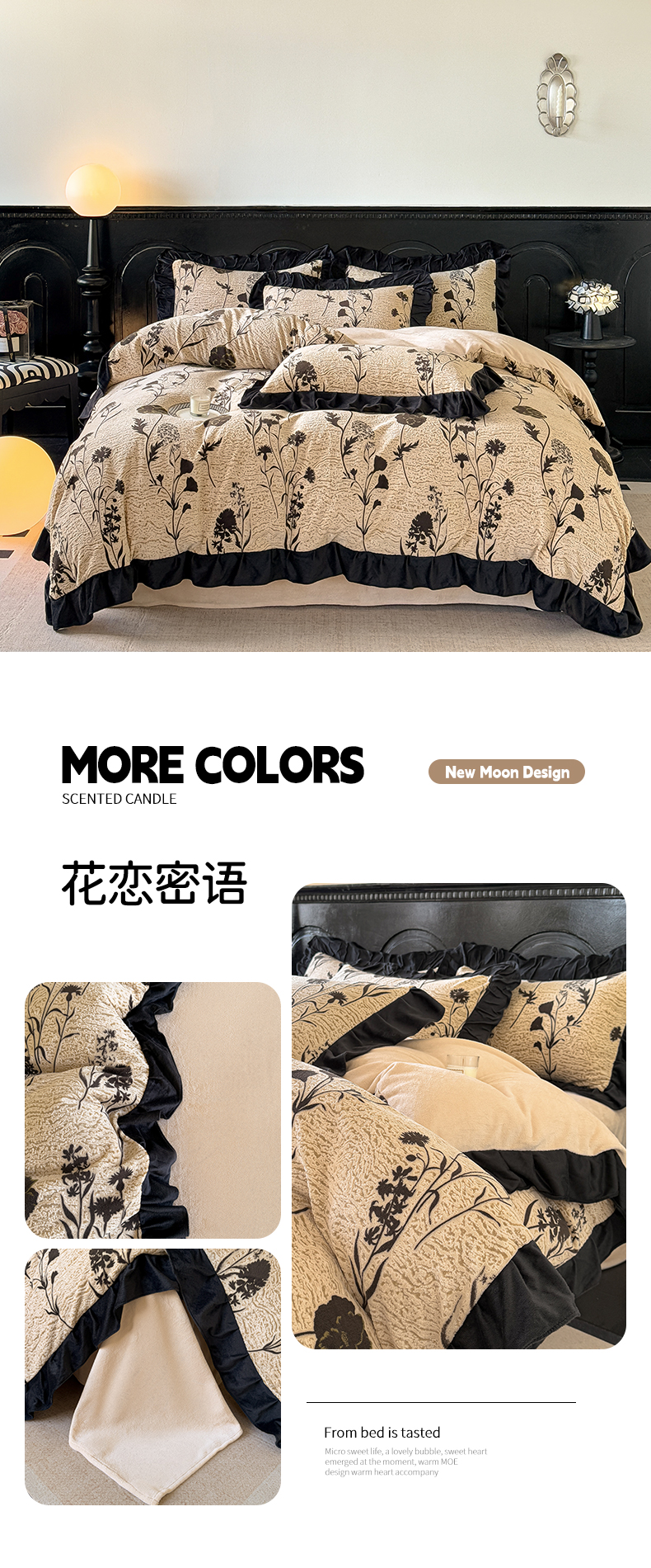 (总)宅家居 2025新款热卖热款轻法式复古赫本风绒高克重浮雕花牛奶绒四件套烂花韩版黑色花边三件套,丛林迷影,蝶之花语,花恋密语,叶语悠然,蝶舞恋曲,花岸澜庭,壹枝玫瑰,夜半花香,优雅花卉
