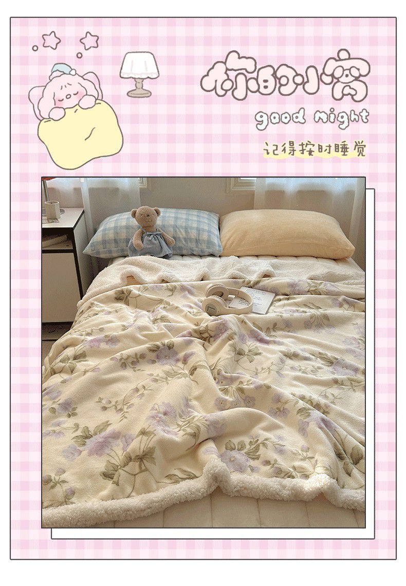 商品名称:小叮当家纺仓储工厂店 买家秀 爆款花型2025新款牛奶绒洛丽塔小清新印花系列毛毯毯子 花满城米