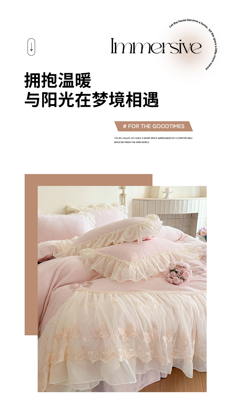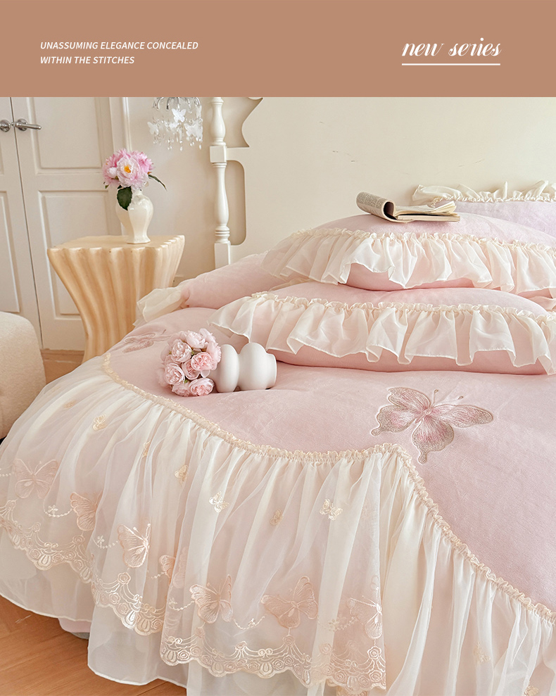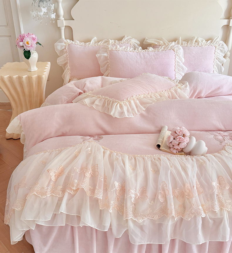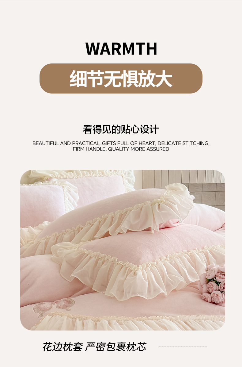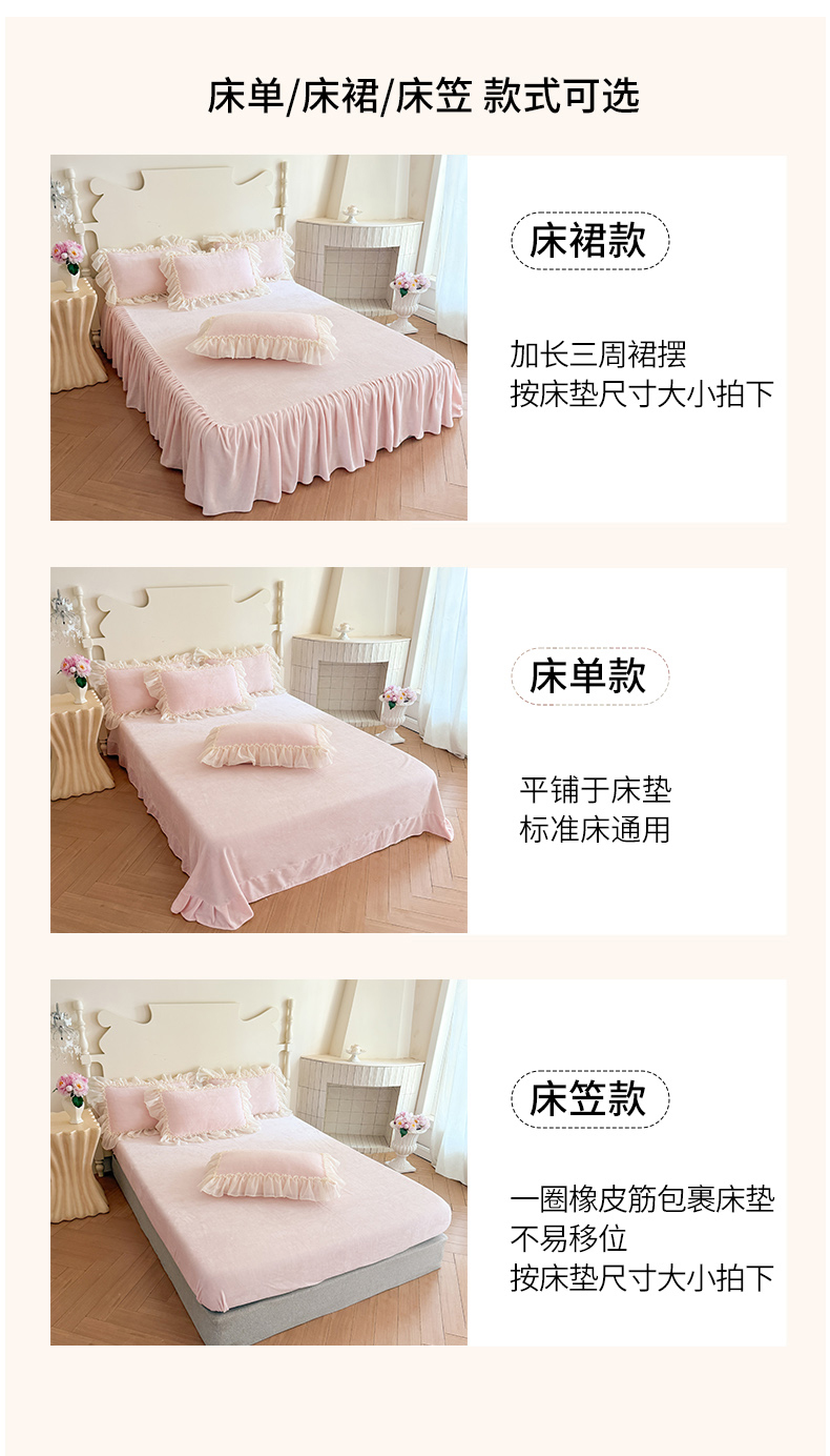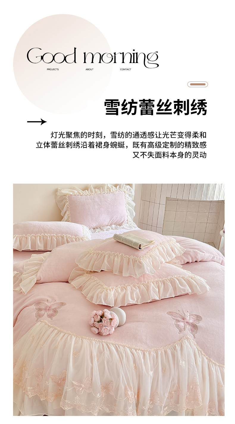 当前位置: 91家纺网 > 商品网购 > 床品套件 > 四件套 > 牛奶绒四件套 > 富盛家纺 2025新款牛奶绒床裙款蕾丝刺绣四件套韩版法式公主风--睡美人系列 睡美人-粉