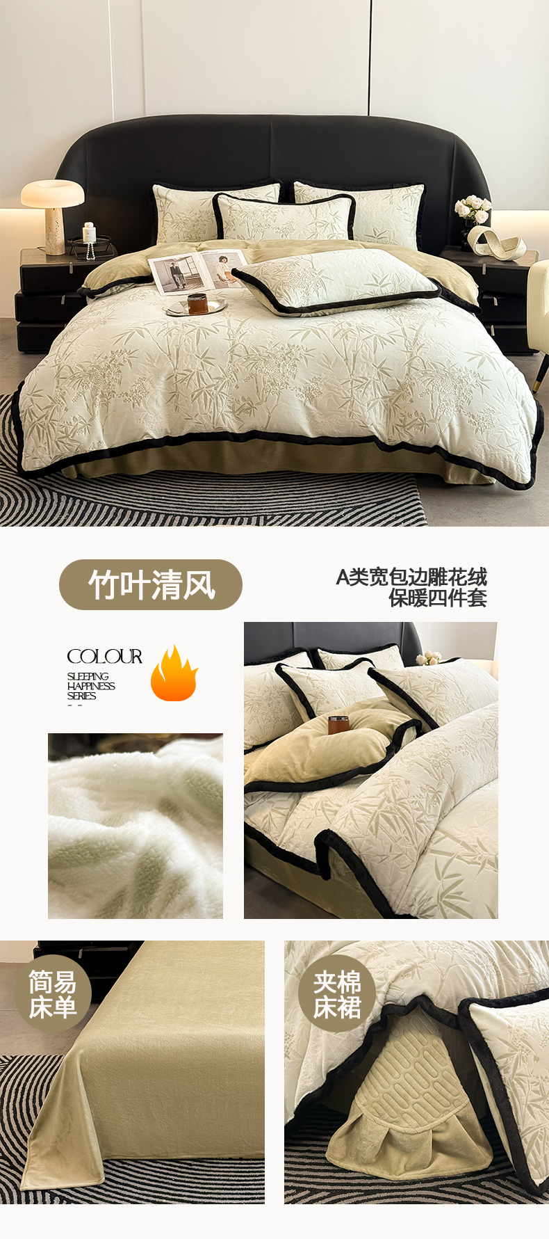 当前位置: 91家纺网 > 商品网购 > 床品套件 > 四件套 > 其它四件套 > 懒猫家纺 2025新款宽包边雕花绒四件套 竹叶清风