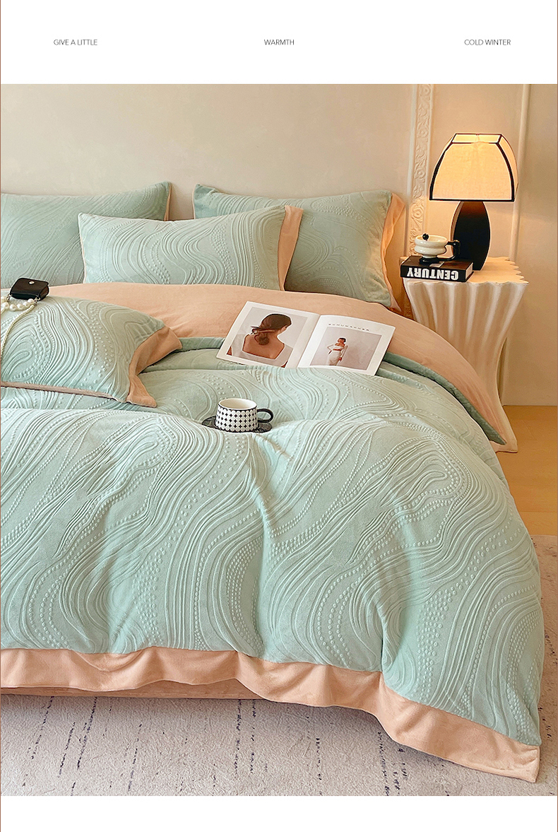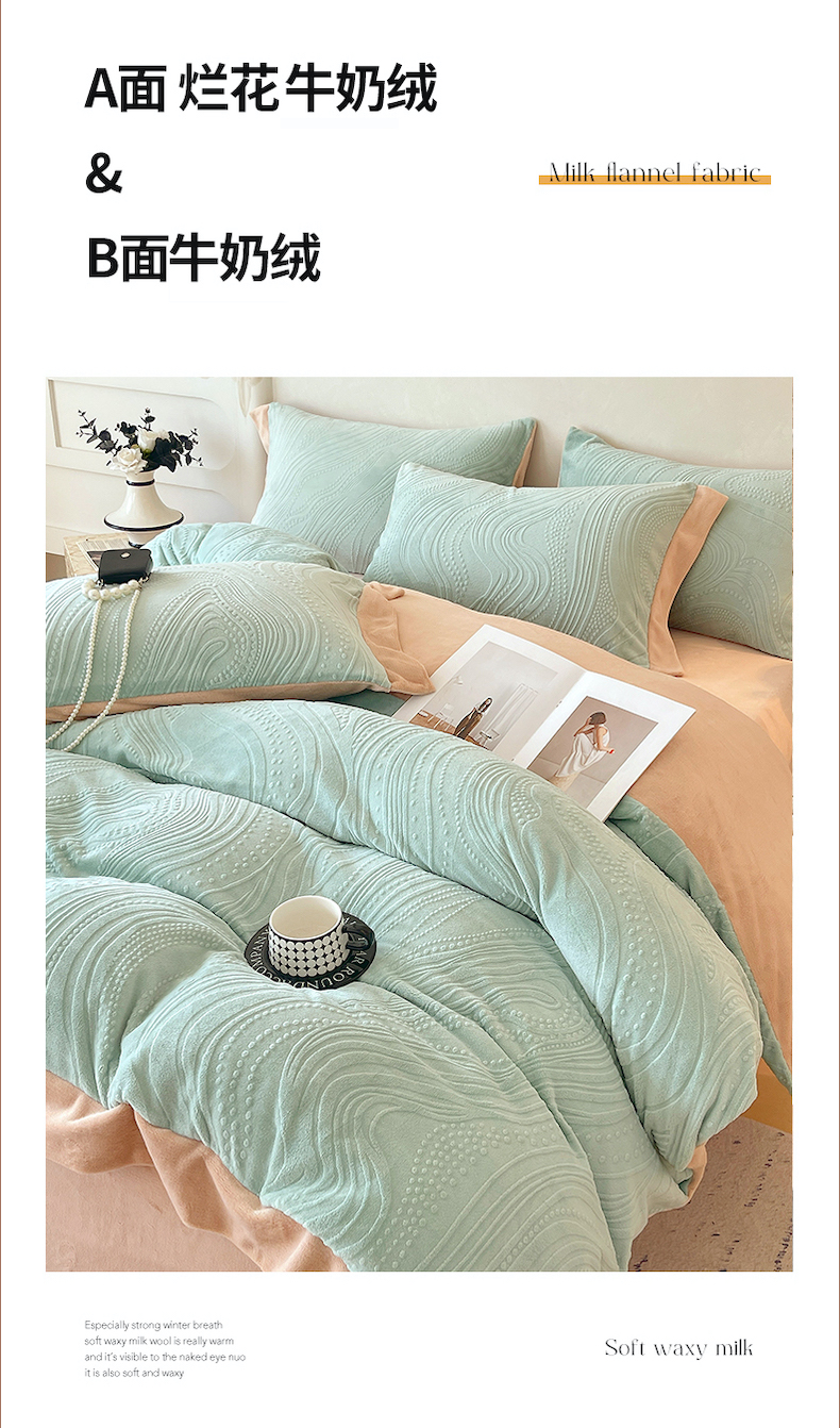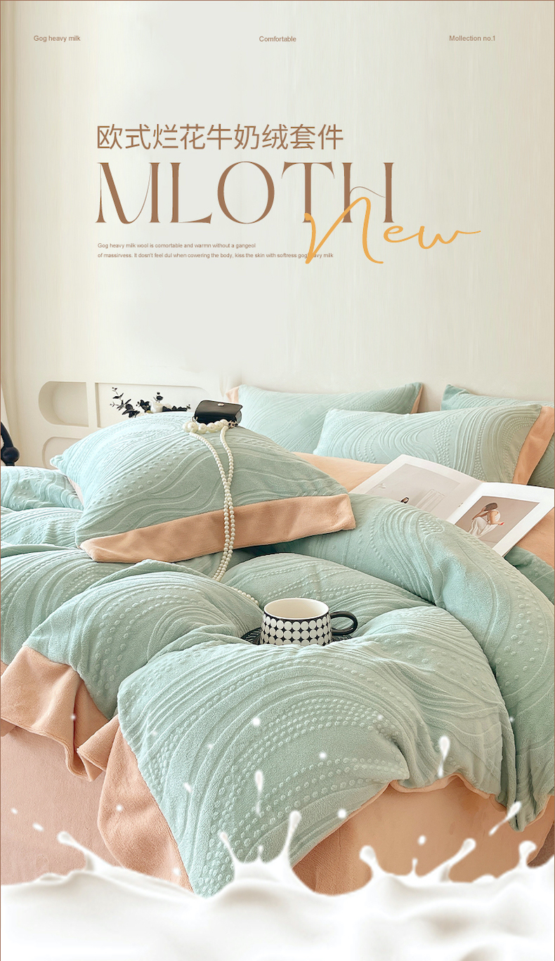 (总)乐蔻家纺 2025新款欧式烂花牛奶绒四件套-弗洛,弗洛-豆绿,弗洛-奶白,弗洛-天青
