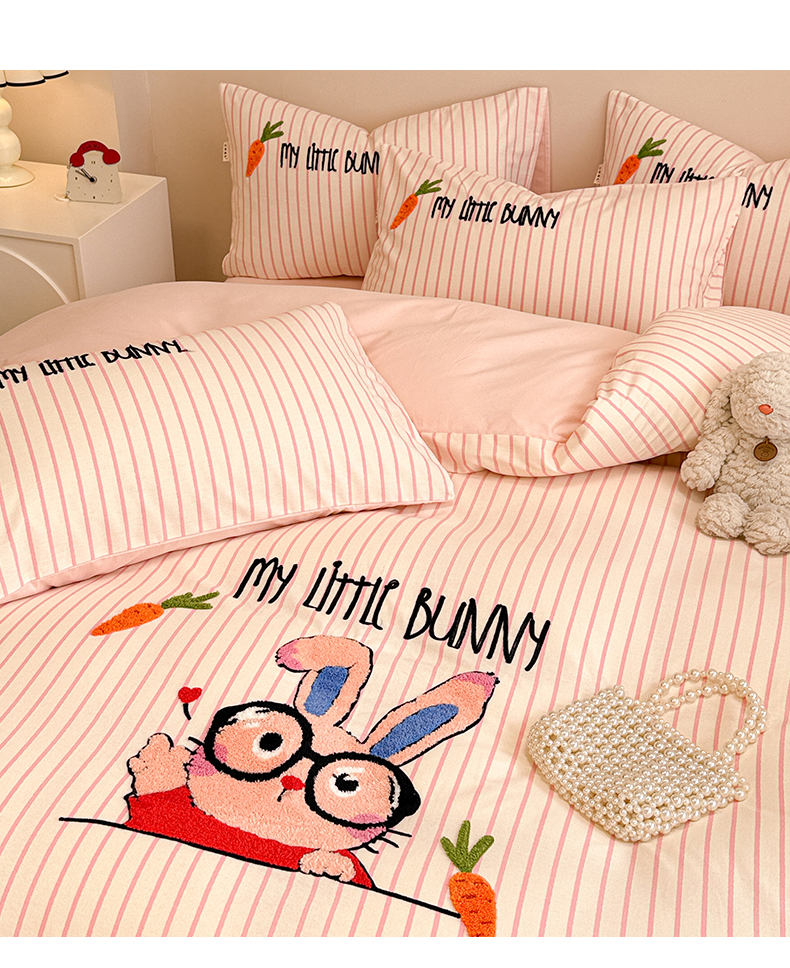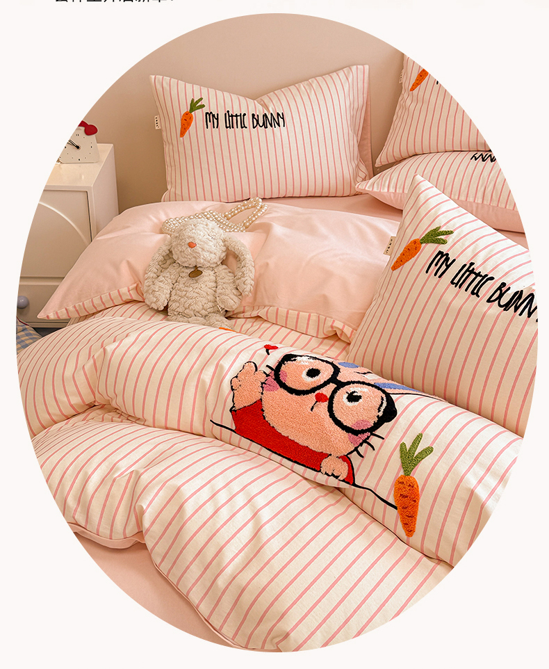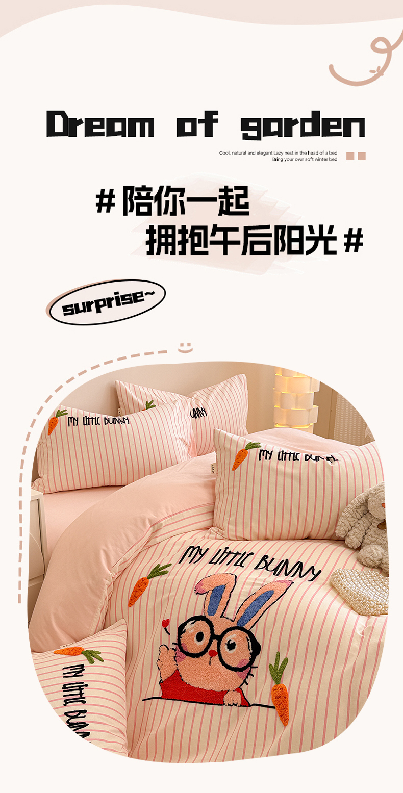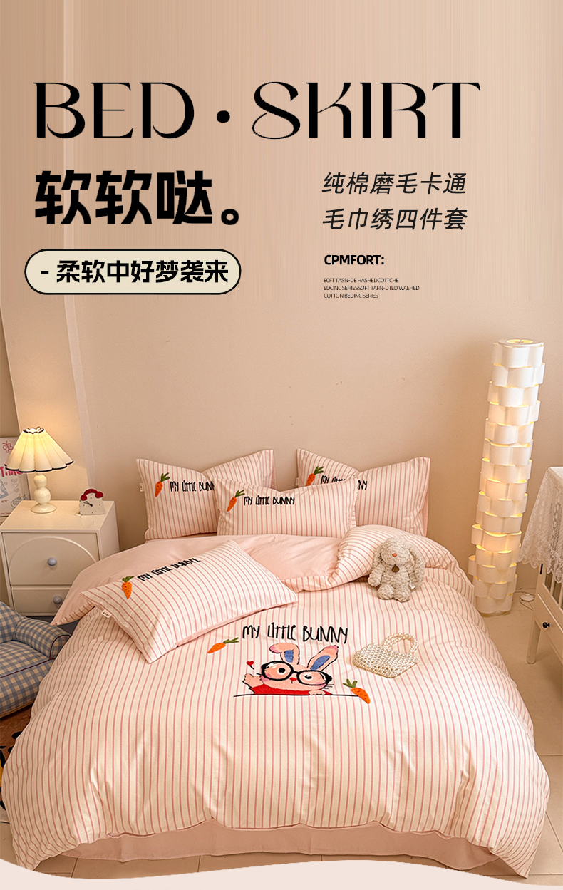 简宜家居 2025新款全棉磨毛刺绣毛巾绣四件套 大眼兔宝