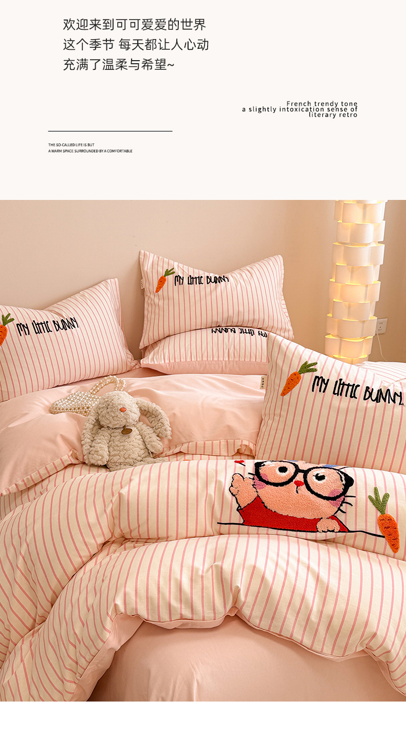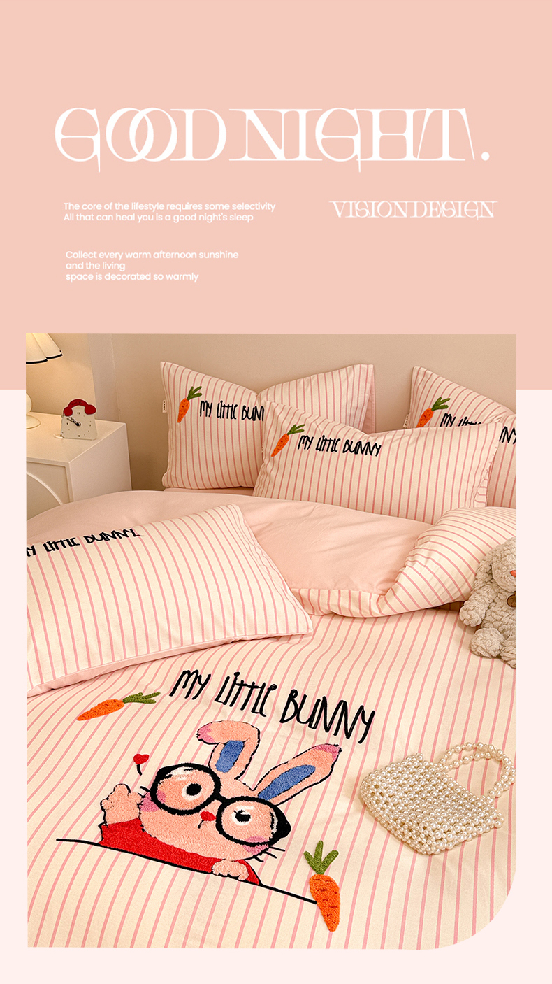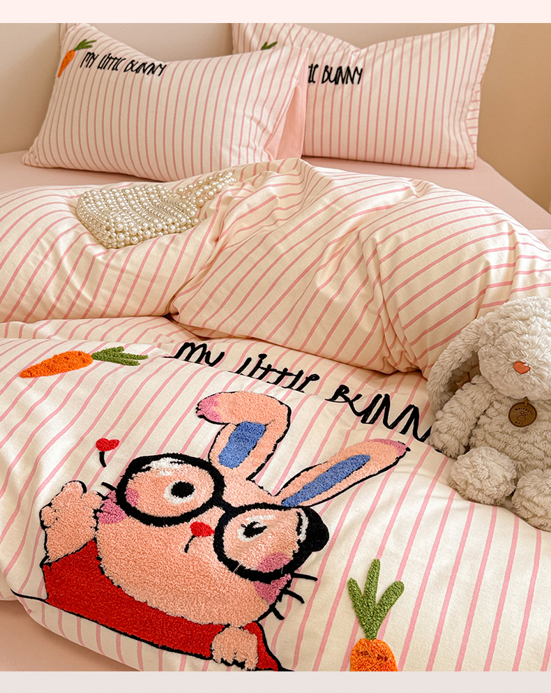 简宜家居 2025新款全棉磨毛刺绣毛巾绣四件套 大眼兔宝