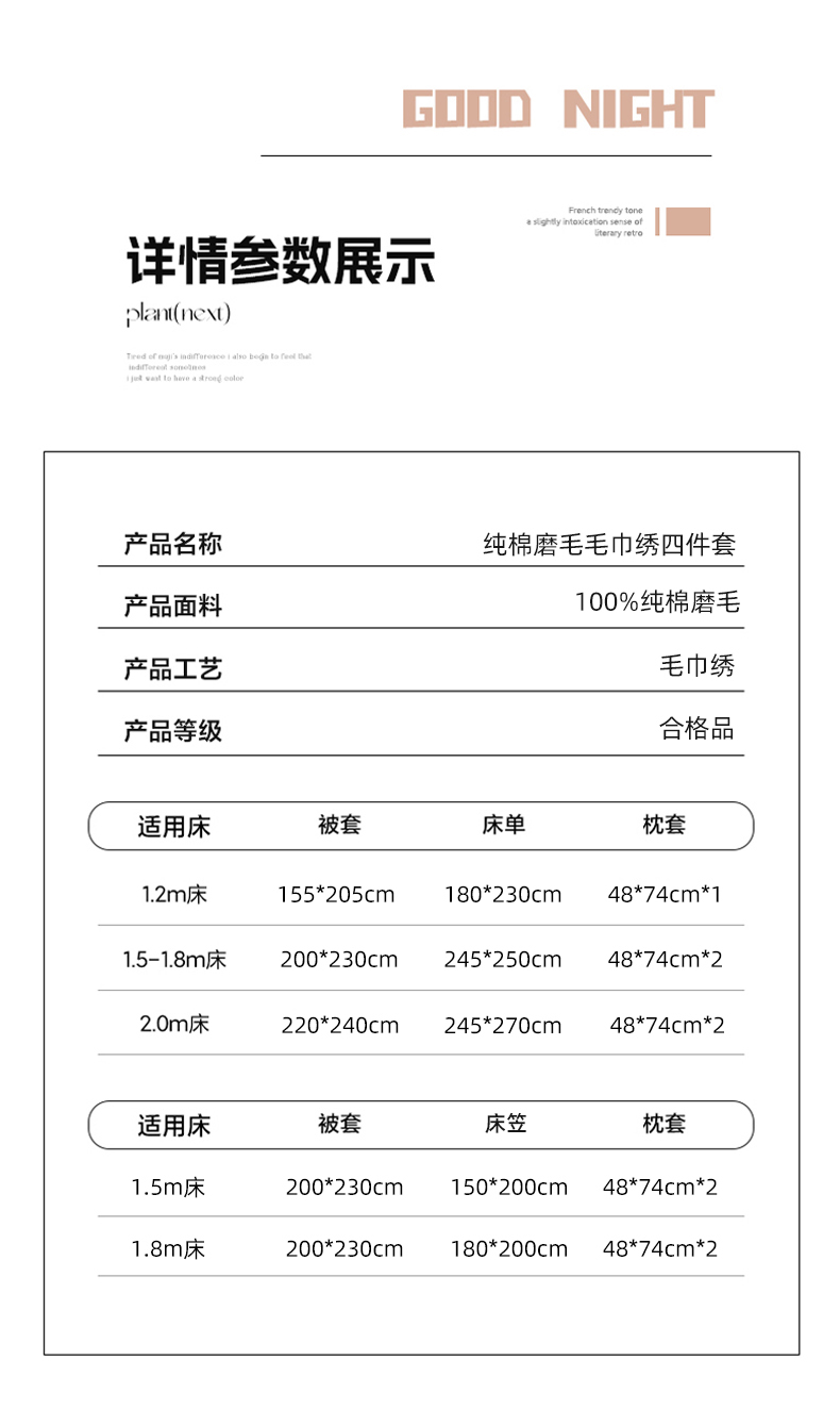 [{"sp_id":11,"sp_name":"\u989c\u8272\u5206\u7c7b","sp_format":2,"sp_list":[{"sp_value_id":1652,"sp_value_name":"\u5927\u773c\u5154\u5b9d","sp_value_image":{"id":999,"path":"https:\/\/img3.91jf.com\/ghelp\/2025\/20250929\/20250929143447_778009.jpg"},"sp_value_video":{"id":0,"img":"","path":"","time":0,"download_num":0,"play_num":0},"price":"125.00","storage":600,"weight":"2.800","is_check_weight":0,"plus_price":"","sp_sort":0}]},{"sp_id":10,"sp_name":"\u9002\u7528\u5e8a\u5c3a\u5bf8","sp_format":1,"sp_list":[{"sp_value_id":39,"sp_value_name":"1.2m\u5e8a\u5355\u6b3e\u4e09\u4ef6\u5957","sp_value_image":{"id":0,"path":""},"sp_value_video":{"id":0,"img":"","path":"","time":0,"download_num":0,"play_num":0},"price":"125.00","storage":100,"weight":"2.800","is_check_weight":0,"plus_price":"","sp_sort":3},{"sp_value_id":43,"sp_value_name":"1.5m\u5e8a\u5355\u6b3e\u56db\u4ef6\u5957","sp_value_image":{"id":0,"path":""},"sp_value_video":{"id":0,"img":"","path":"","time":0,"download_num":0,"play_num":0},"price":"150.00","storage":100,"weight":"3.000","is_check_weight":0,"plus_price":"","sp_sort":7},{"sp_value_id":44,"sp_value_name":"1.8m\u5e8a\u5355\u6b3e\u56db\u4ef6\u5957","sp_value_image":{"id":0,"path":""},"sp_value_video":{"id":0,"img":"","path":"","time":0,"download_num":0,"play_num":0},"price":"150.00","storage":100,"weight":"3.000","is_check_weight":0,"plus_price":"","sp_sort":8},{"sp_value_id":45,"sp_value_name":"2.0m\u5e8a\u5355\u6b3e\u56db\u4ef6\u5957","sp_value_image":{"id":0,"path":""},"sp_value_video":{"id":0,"img":"","path":"","time":0,"download_num":0,"play_num":0},"price":"160.00","storage":100,"weight":"3.500","is_check_weight":0,"plus_price":"","sp_sort":9},{"sp_value_id":46,"sp_value_name":"1.5m\u5e8a\u7b20\u6b3e\u56db\u4ef6\u5957","sp_value_image":{"id":0,"path":""},"sp_value_video":{"id":0,"img":"","path":"","time":0,"download_num":0,"play_num":0},"price":"155.00","storage":100,"weight":"3.000","is_check_weight":0,"plus_price":"","sp_sort":11},{"sp_value_id":764,"sp_value_name":"1.8m\u5e8a\u7b20\u6b3e\u56db\u4ef6\u5957","sp_value_image":{"id":0,"path":""},"sp_value_video":{"id":0,"img":"","path":"","time":0,"download_num":0,"play_num":0},"price":"155.00","storage":100,"weight":"3.000","is_check_weight":0,"plus_price":"","sp_sort":12}]}]