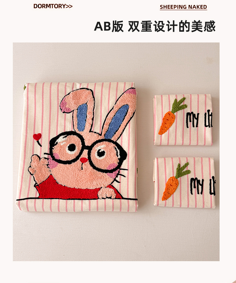 (总)简宜家居(朝初家纺) 2026新款全棉绗缝花边床盖四件套,幸福小兔,暖菊花兔,牵藤兔,素条花-粉,素条花-蓝,兔与花笺
