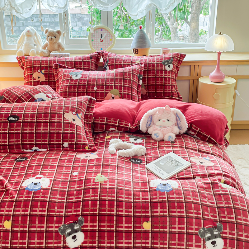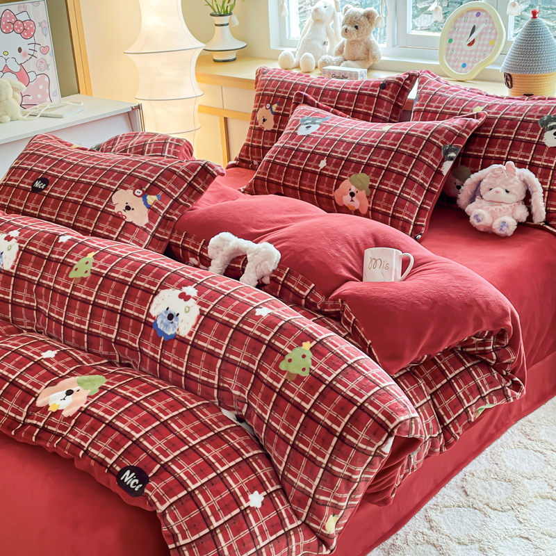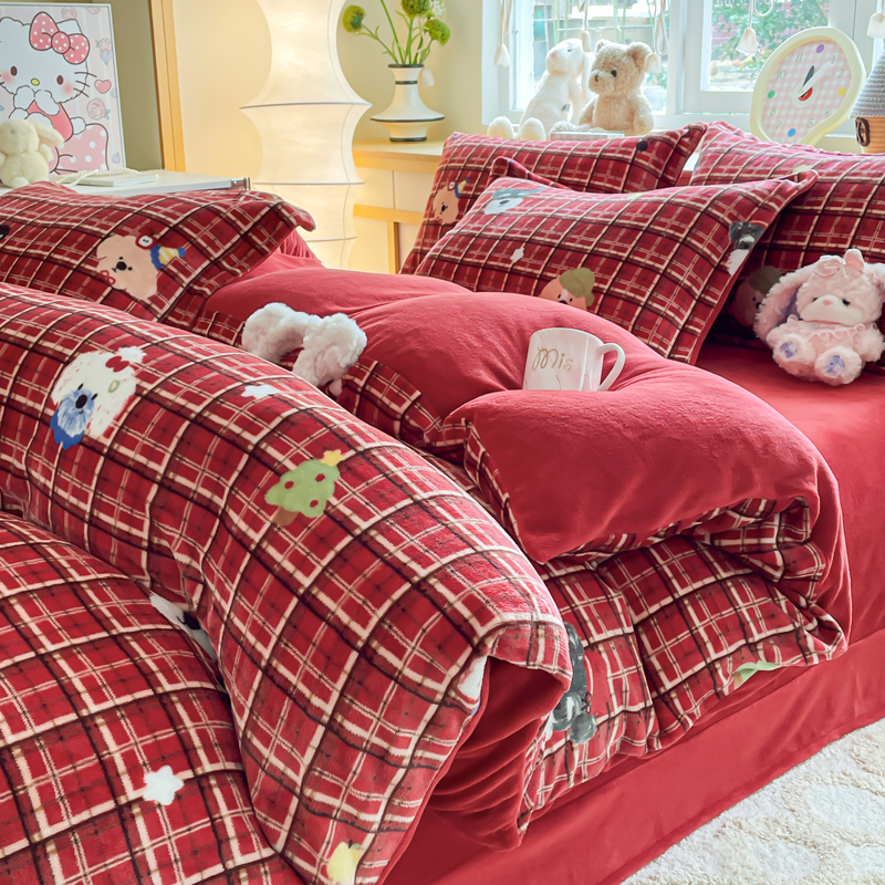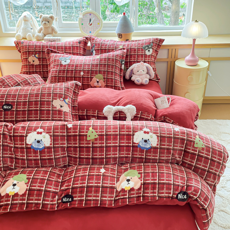 一比一 2026新款双面牛奶绒四件套 圣诞汪