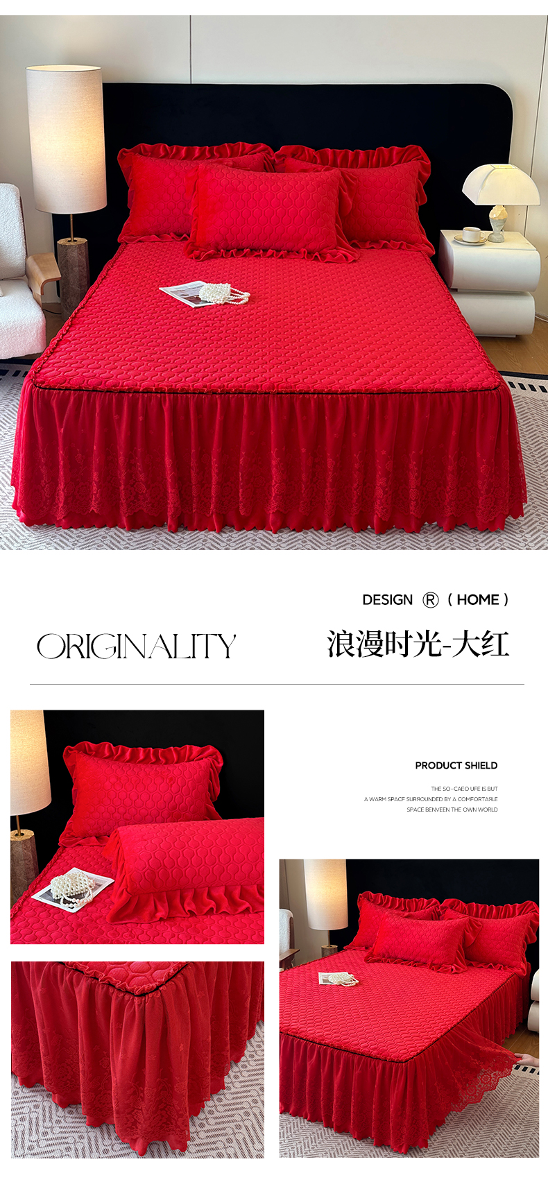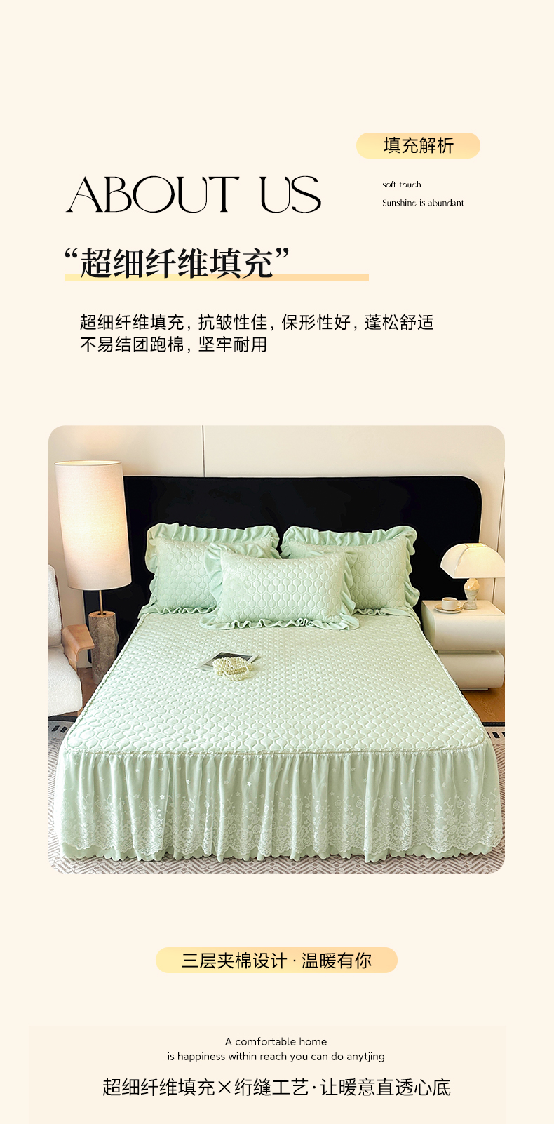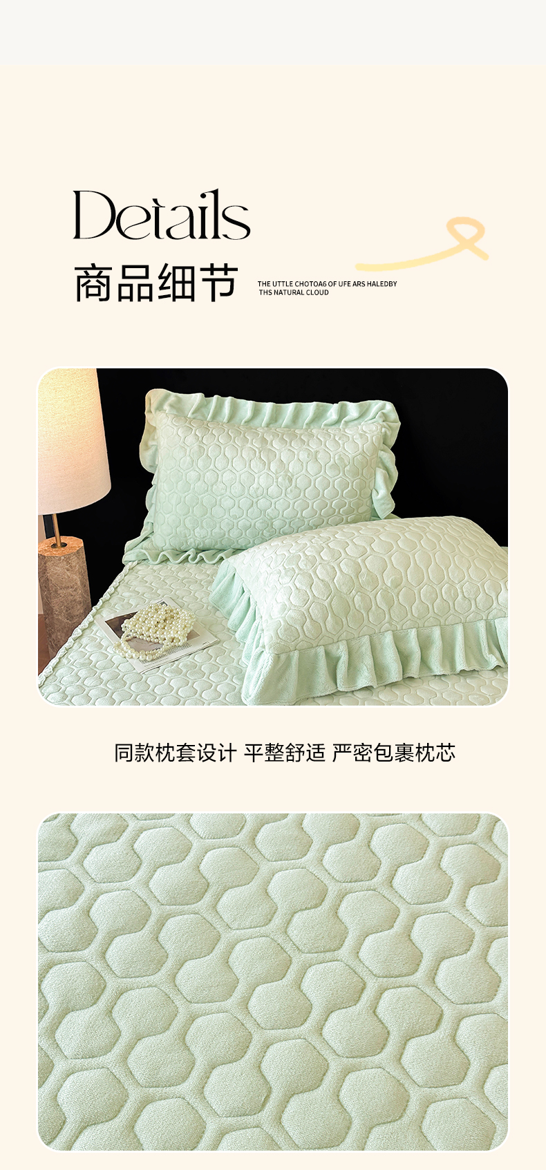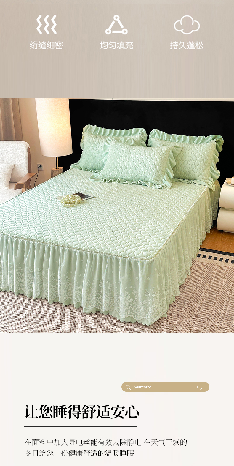 当前位置: 91家纺网 > 商品网购 > 床品套件 > 三件套 > 民新家纺 2025新款牛奶绒夹棉床裙三件套 浪漫时光-浅绿