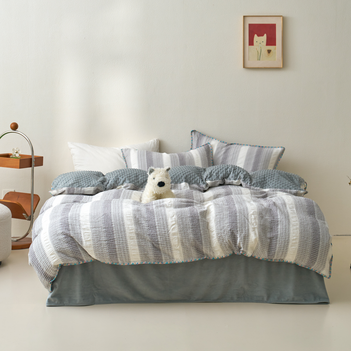 商品名称:洋铭区(原狠狠爱) 2025秋冬全棉华夫格+豆豆绒四件套系列 松露咖