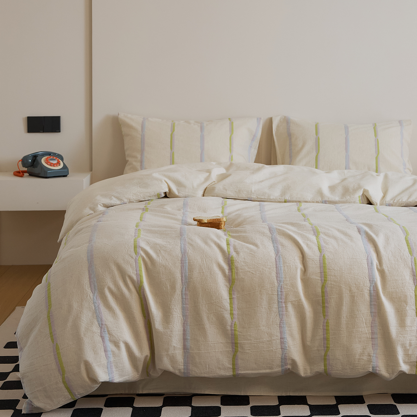 (总)原研家居 2025新款棉麻色织条纹系列四件套,棉麻黄条,棉麻绿条,棉麻粉条