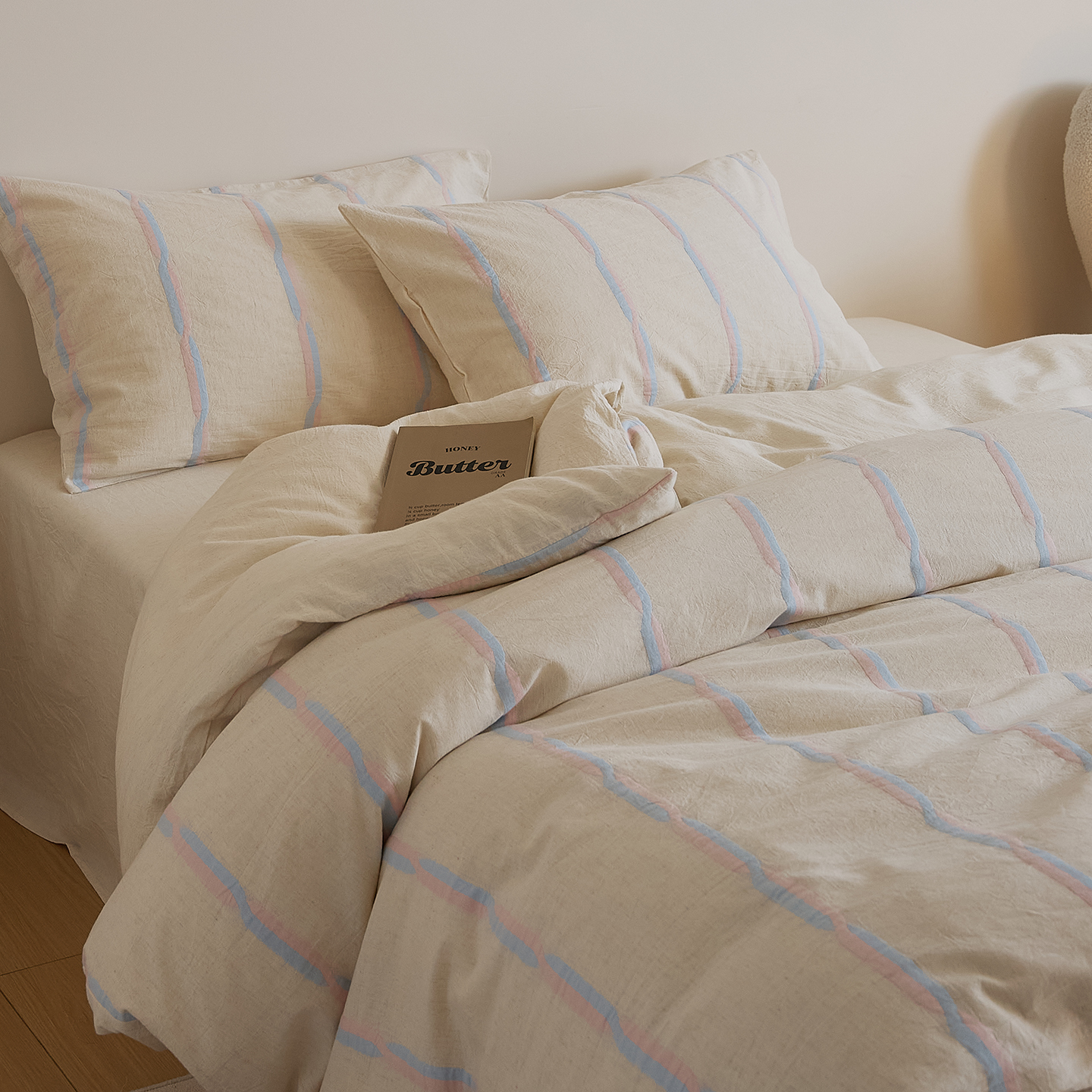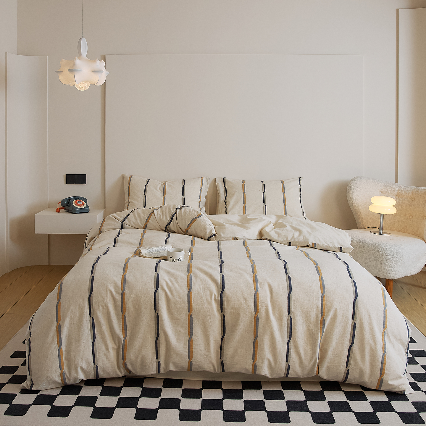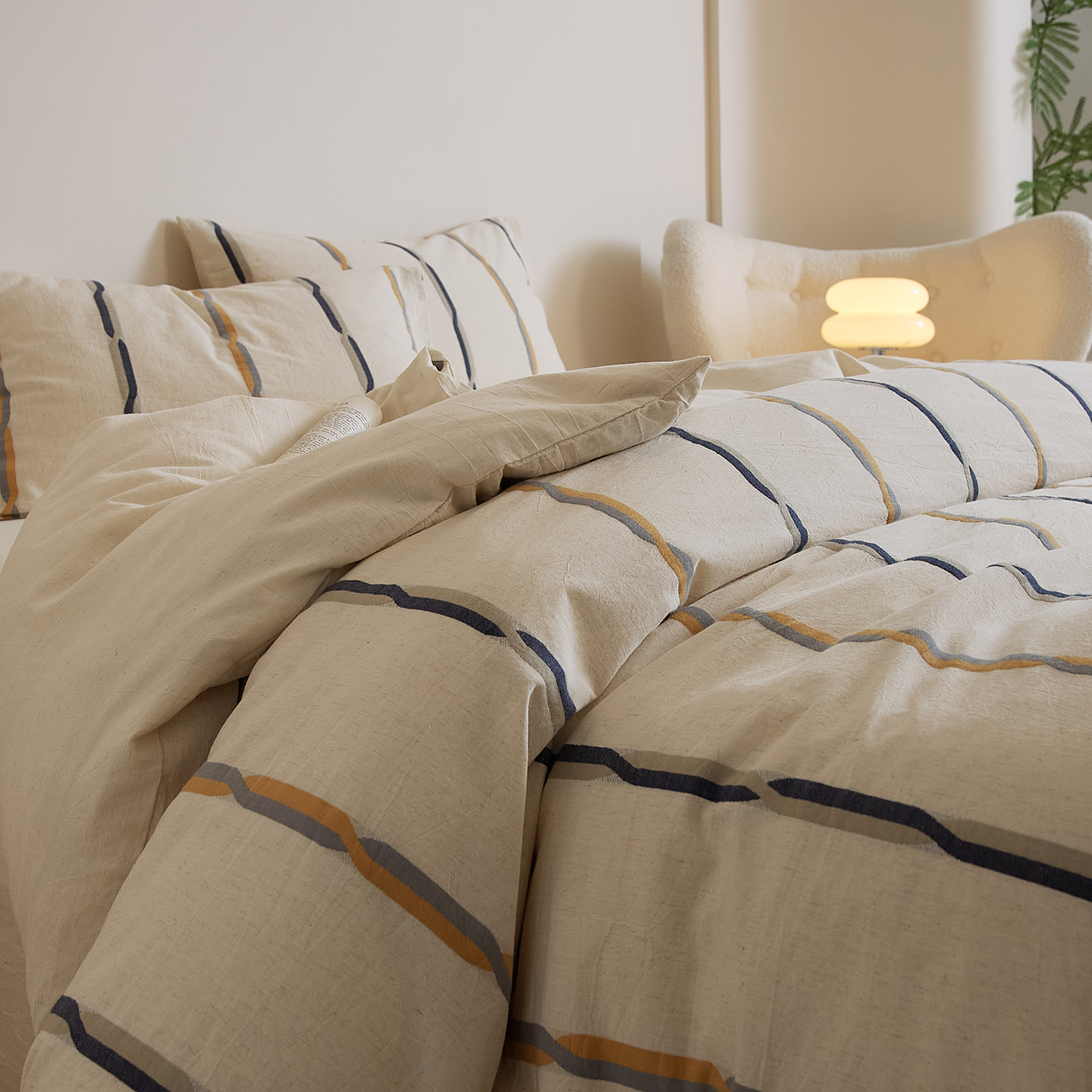 商品名称:原研家居 2025新款棉麻色织条纹系列四件套 棉麻黄条