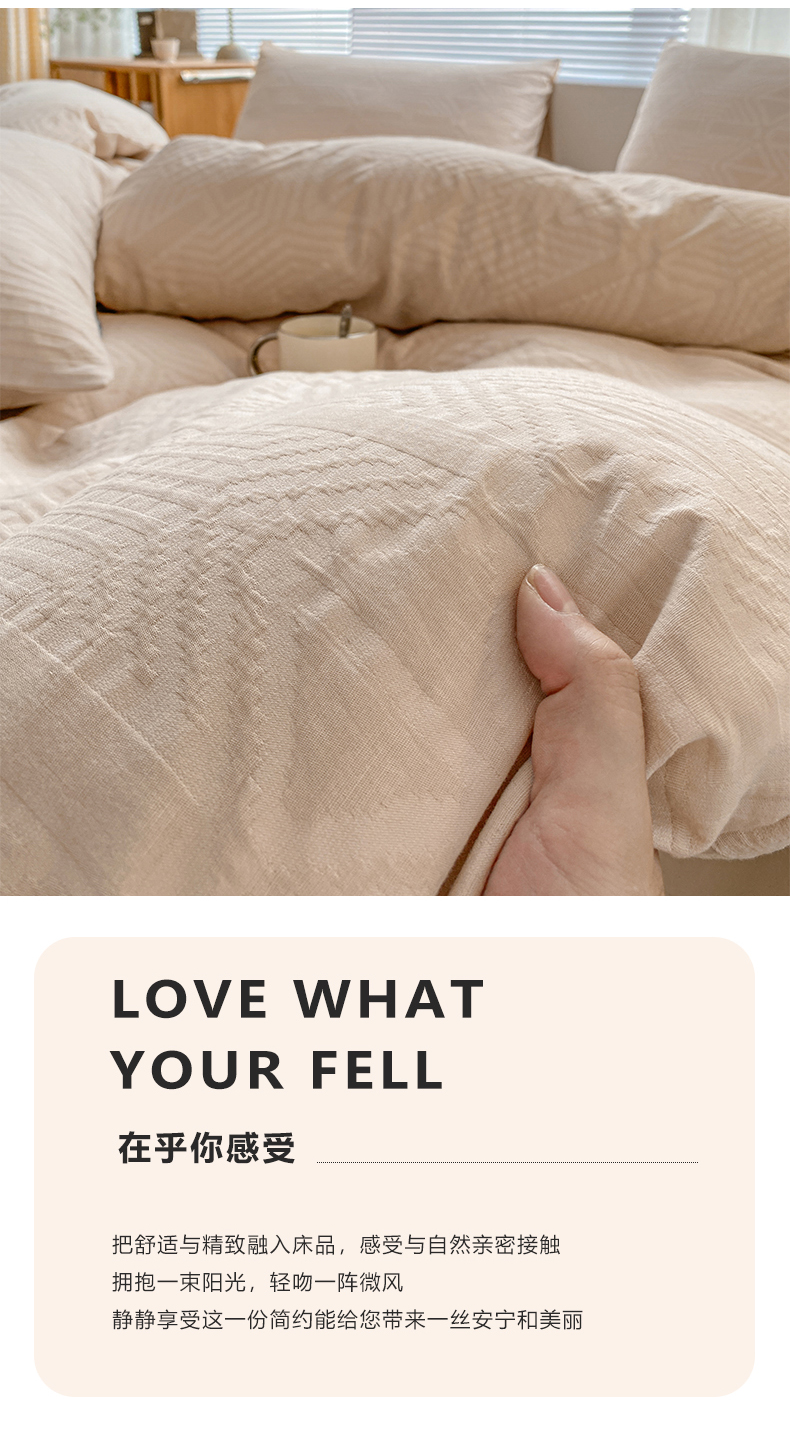 当前位置: 91家纺网 > 商品网购 > 床品套件 > 四件套 > 水洗棉四件套 > 宜代光年 2025新款60s水洗棉提花系列四件套 艾迪-咖