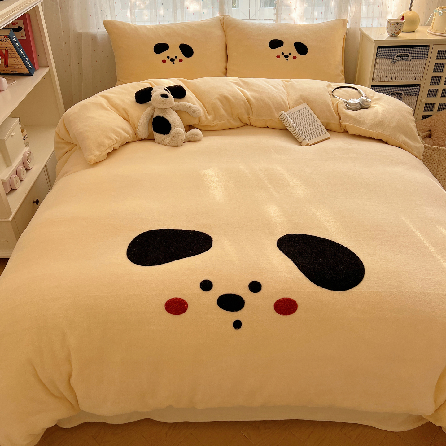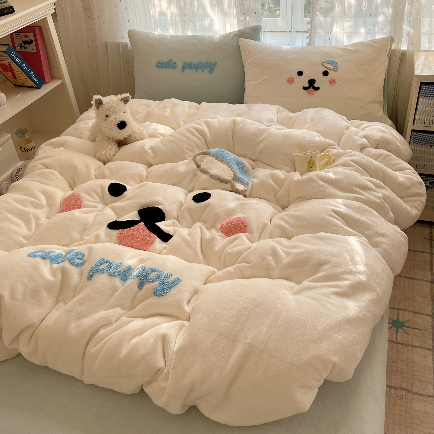 (总)顾里家纺 2024新款ins韩风甜感刺绣标牛奶绒四件套,蛋糕狗狗,烛台小熊,ins可颂,ins苹果,ins沙发狗,ins小象,ins樱桃猫