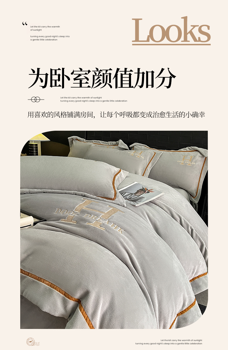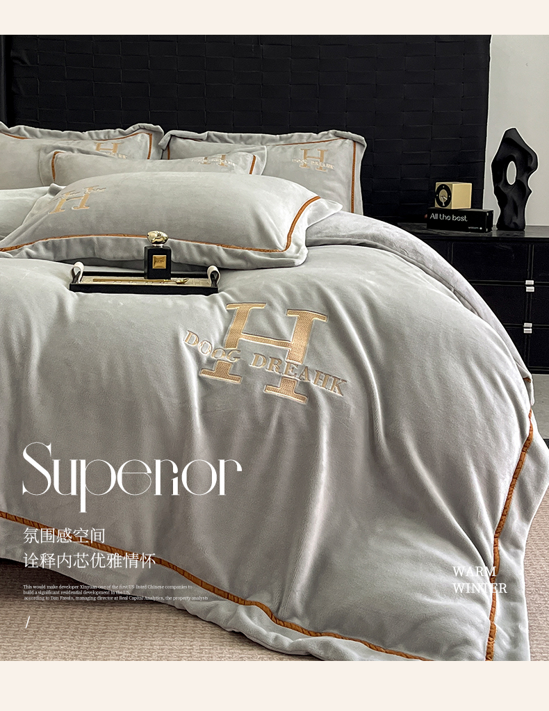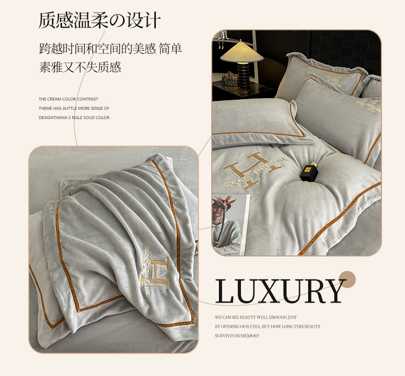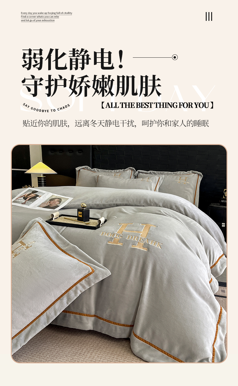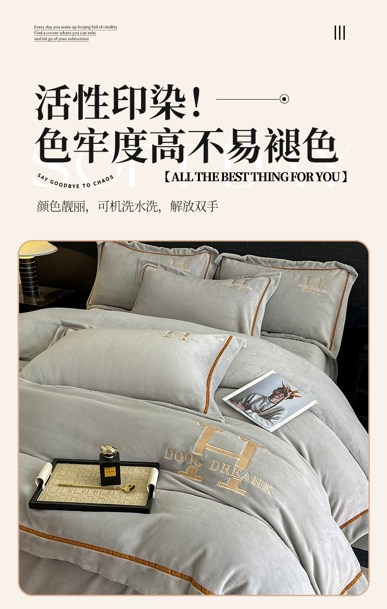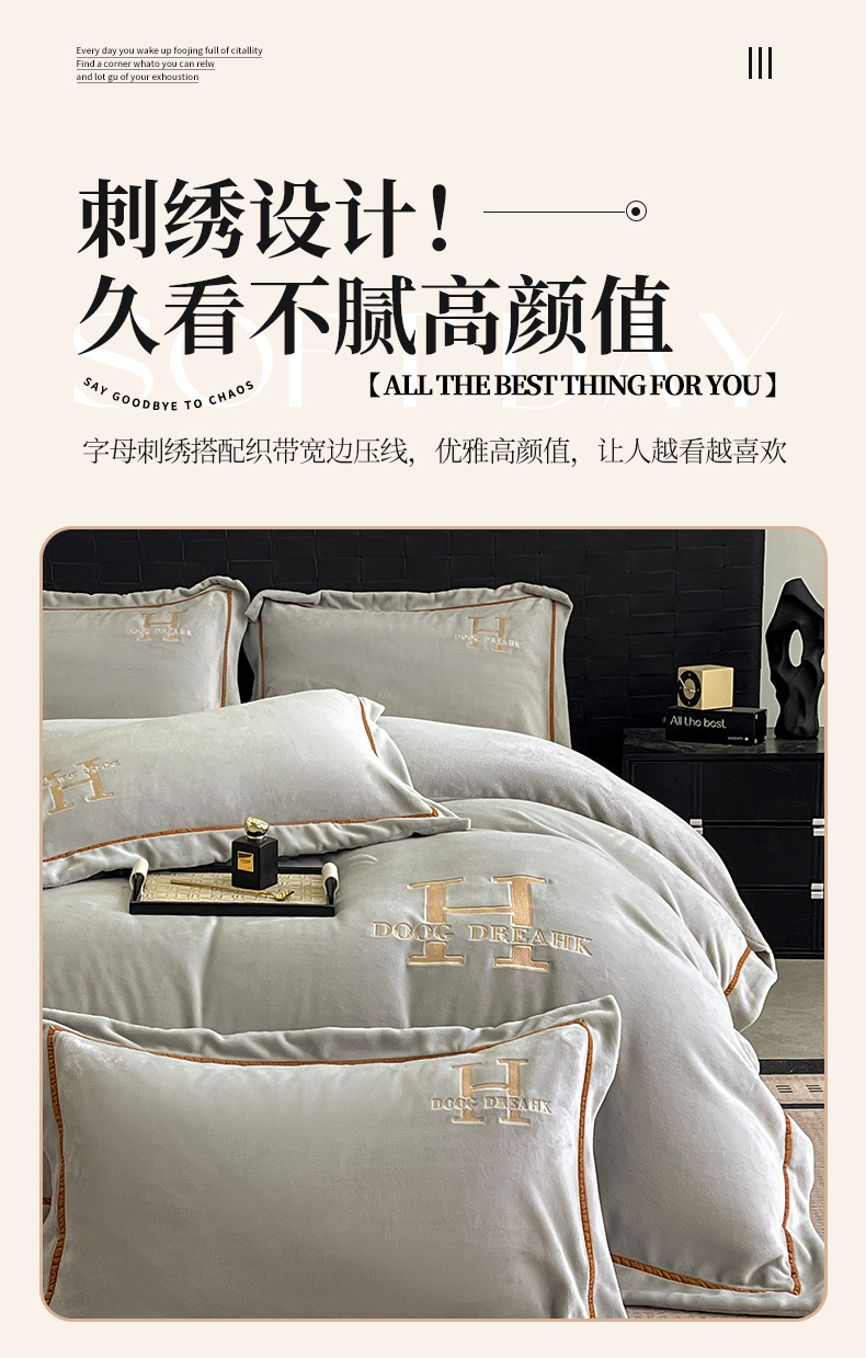 当前位置: 91家纺网 > 商品网购 > 床品套件 > 四件套 > 牛奶绒四件套 > 露梦家纺 2025新款A类牛奶绒工艺款刺绣四件套-艾伦系列(提供买家秀) 艾伦-杏子灰