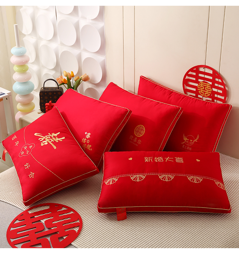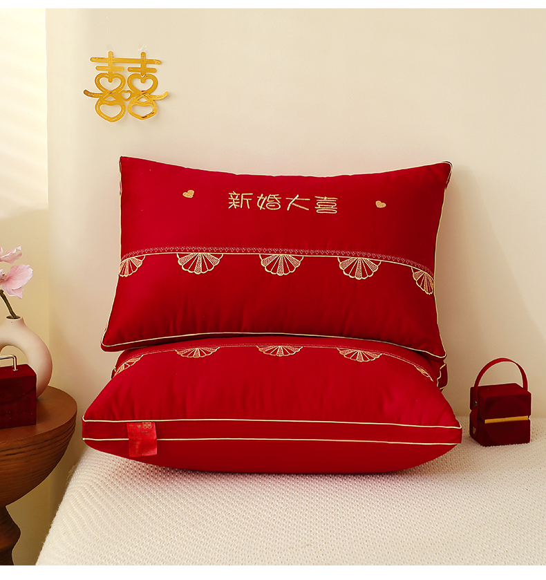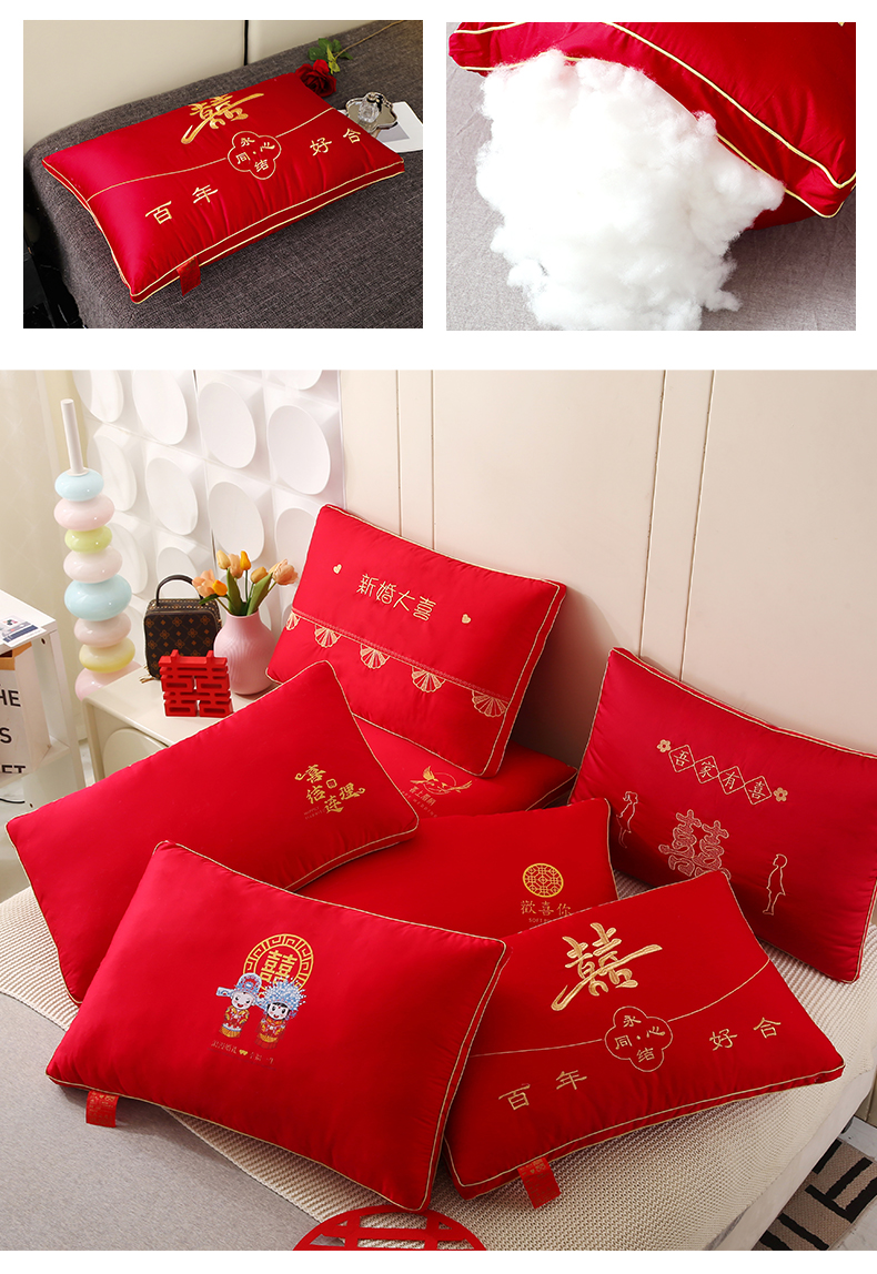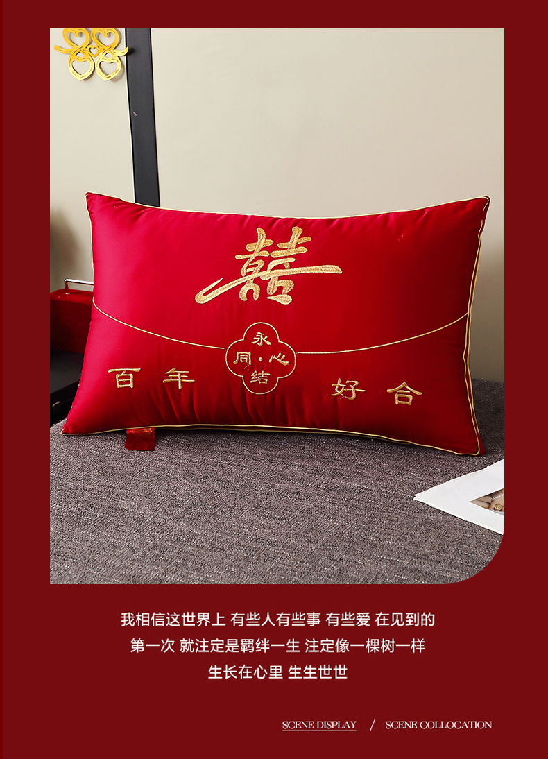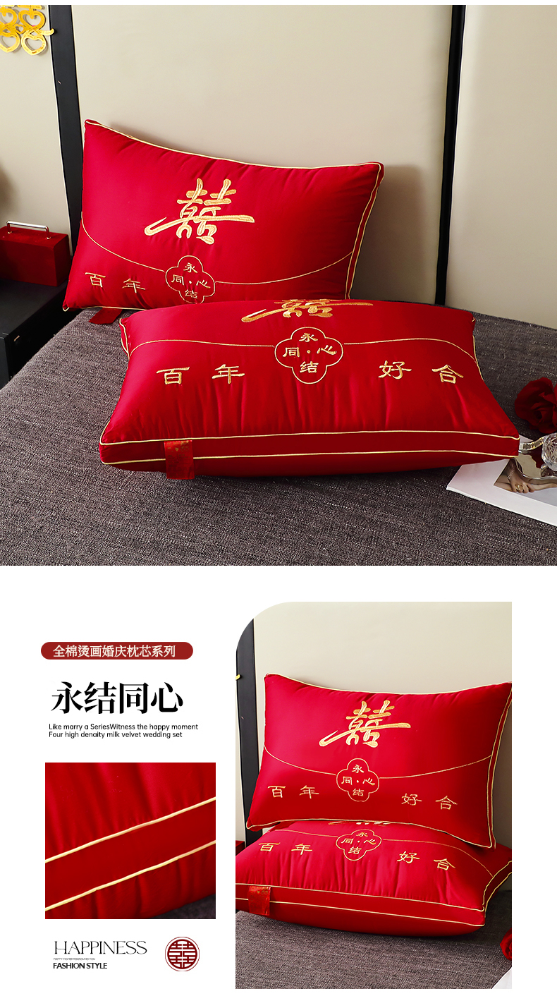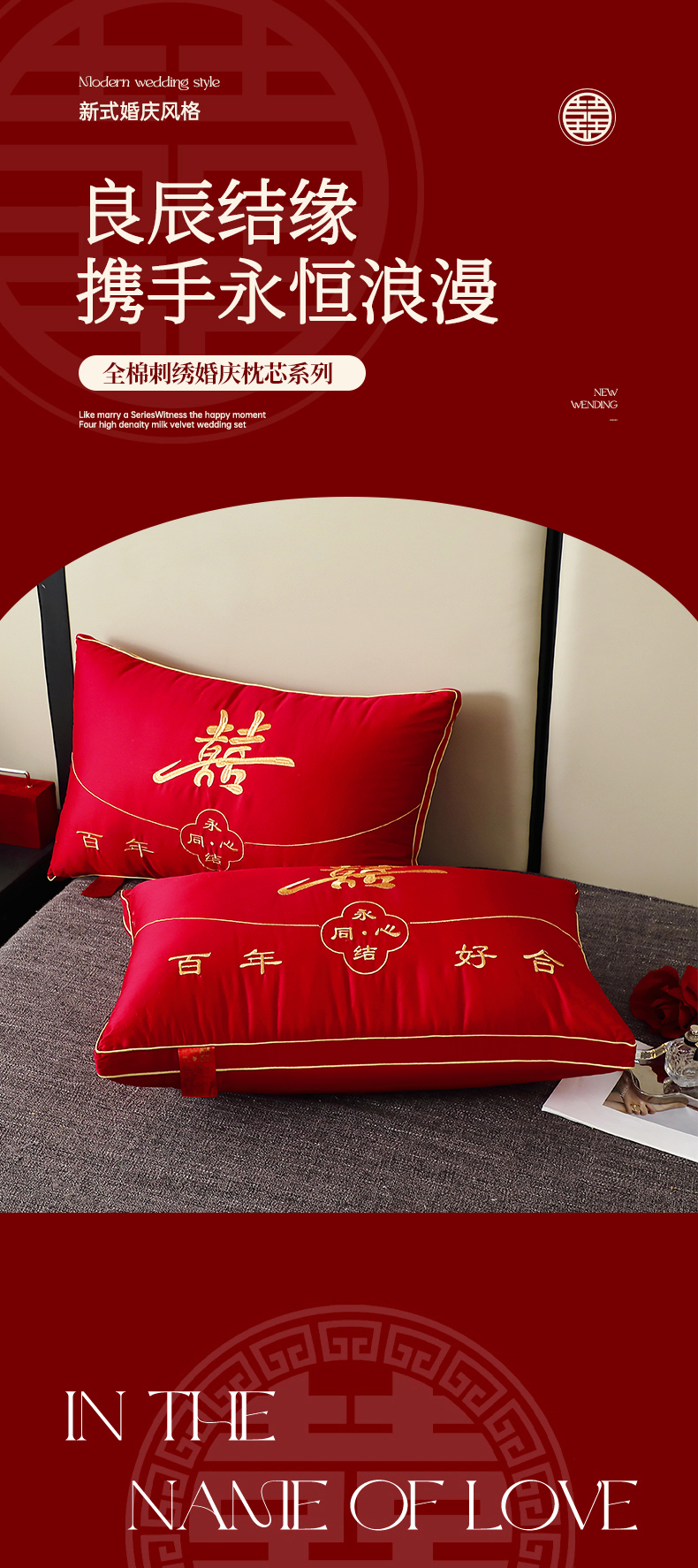 商品名称:(总)糖果枕芯 2025新款刺绣婚庆大红枕芯新款婚庆枕芯-永结同心