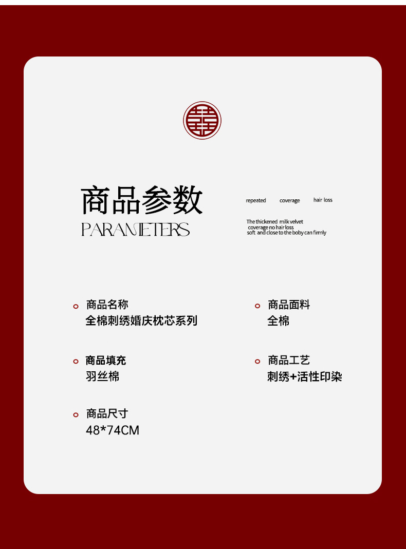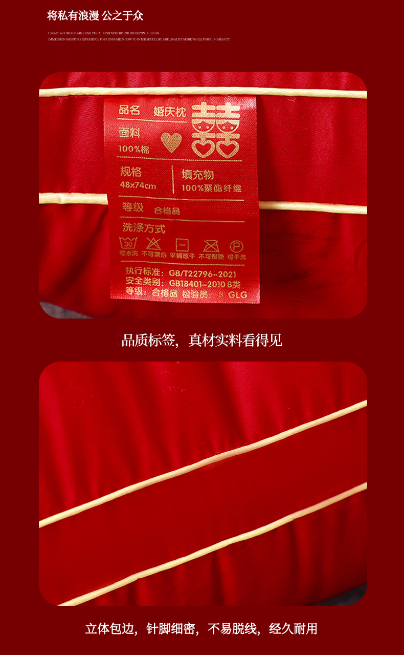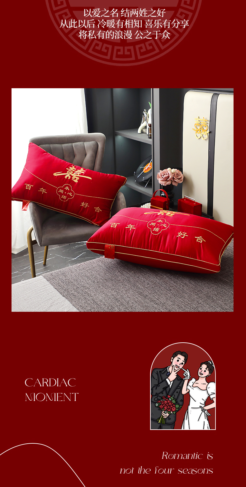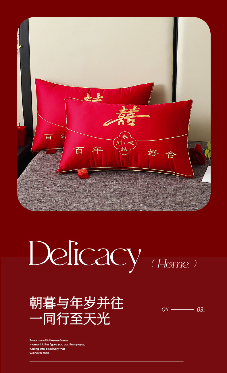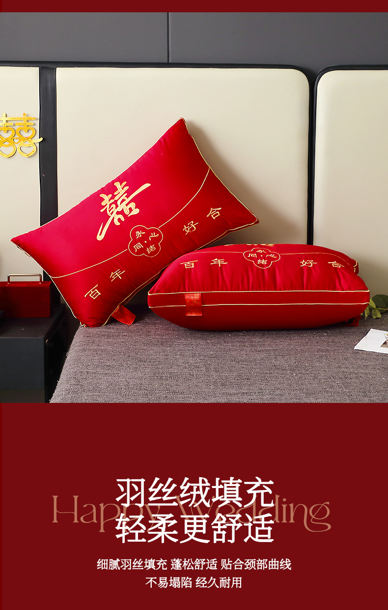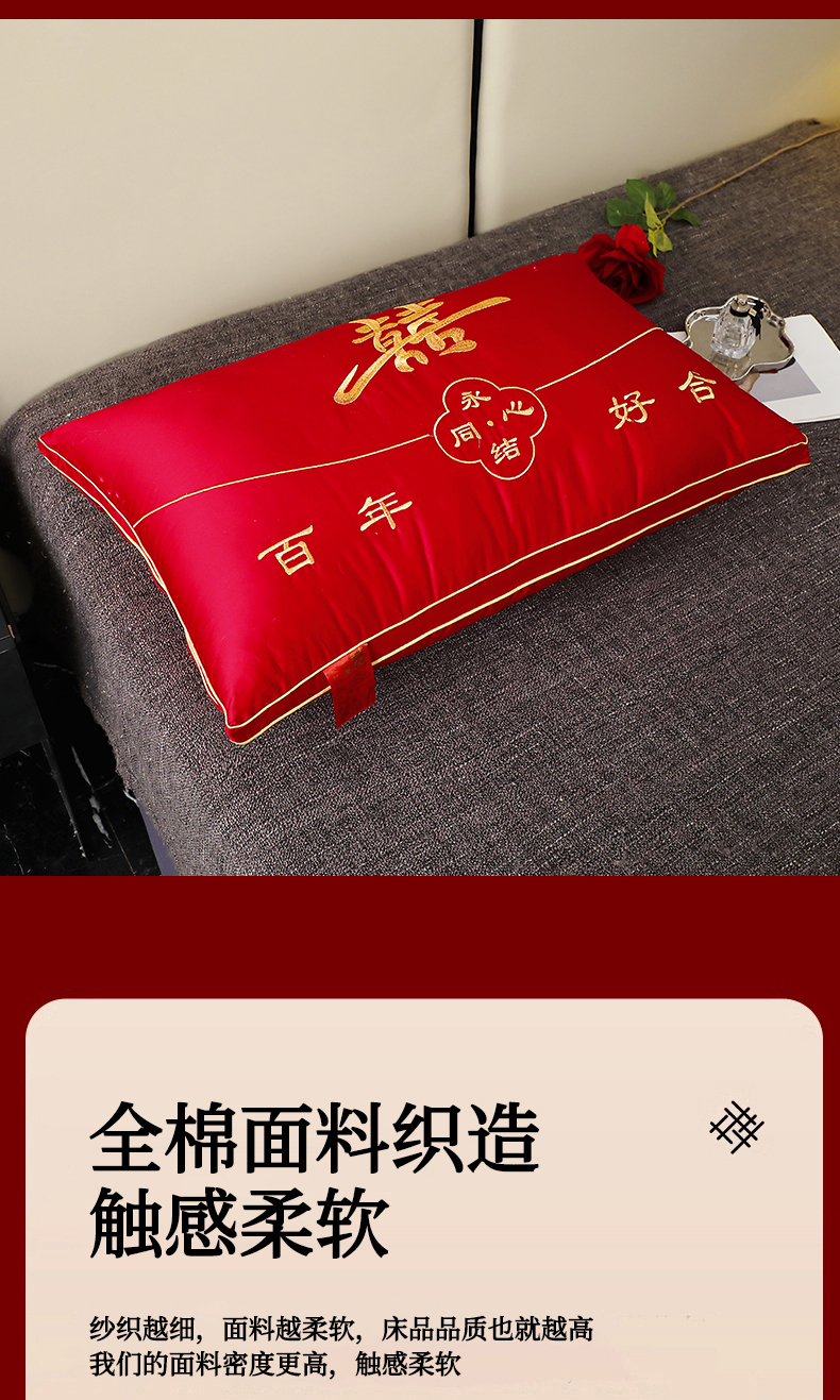商品名称:(总)糖果枕芯 2025新款刺绣婚庆大红枕芯新款婚庆枕芯-永结同心