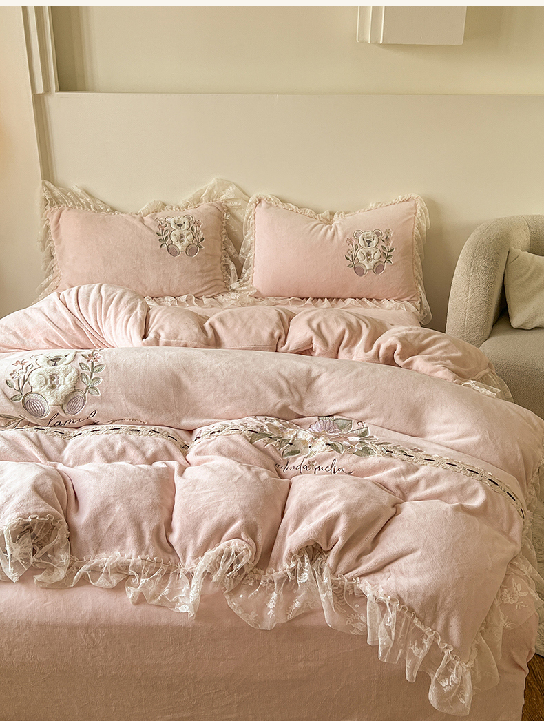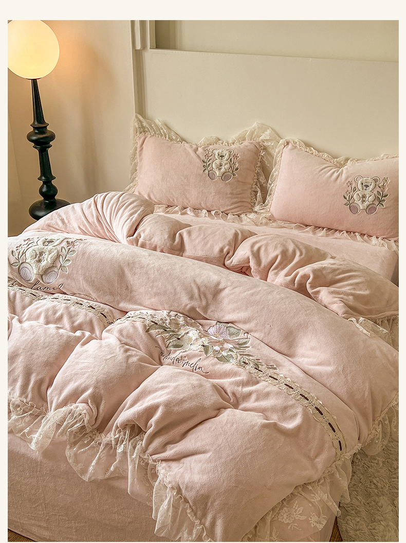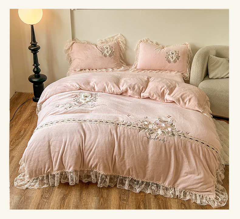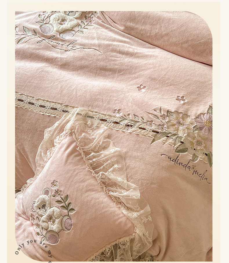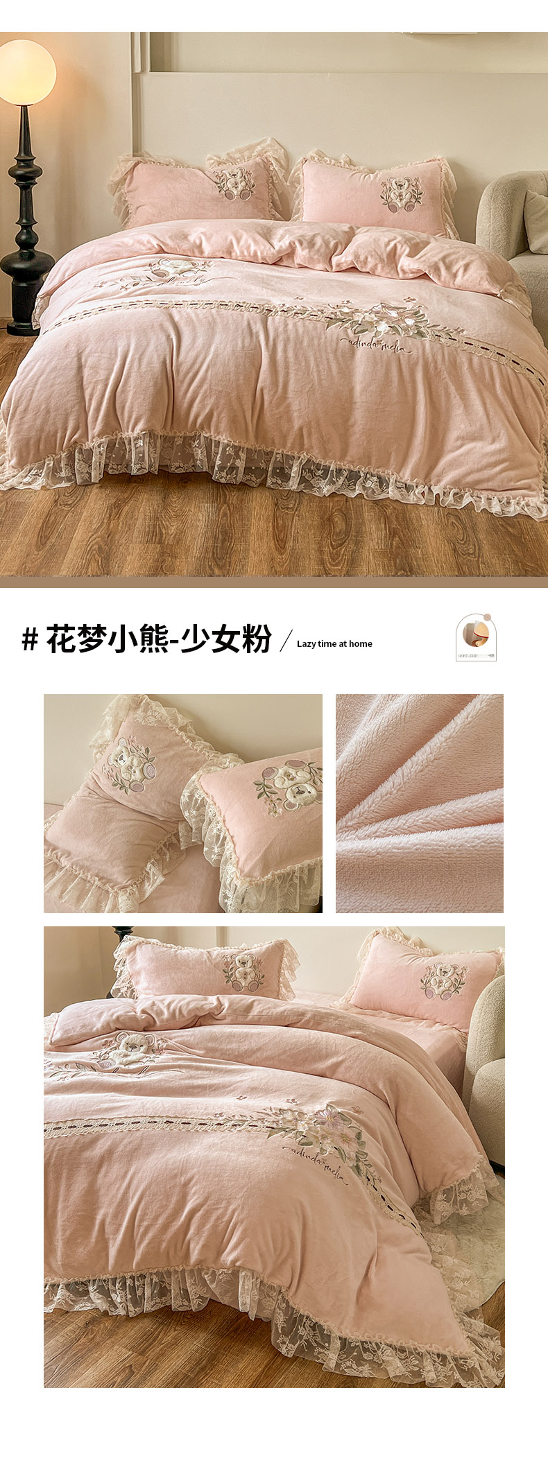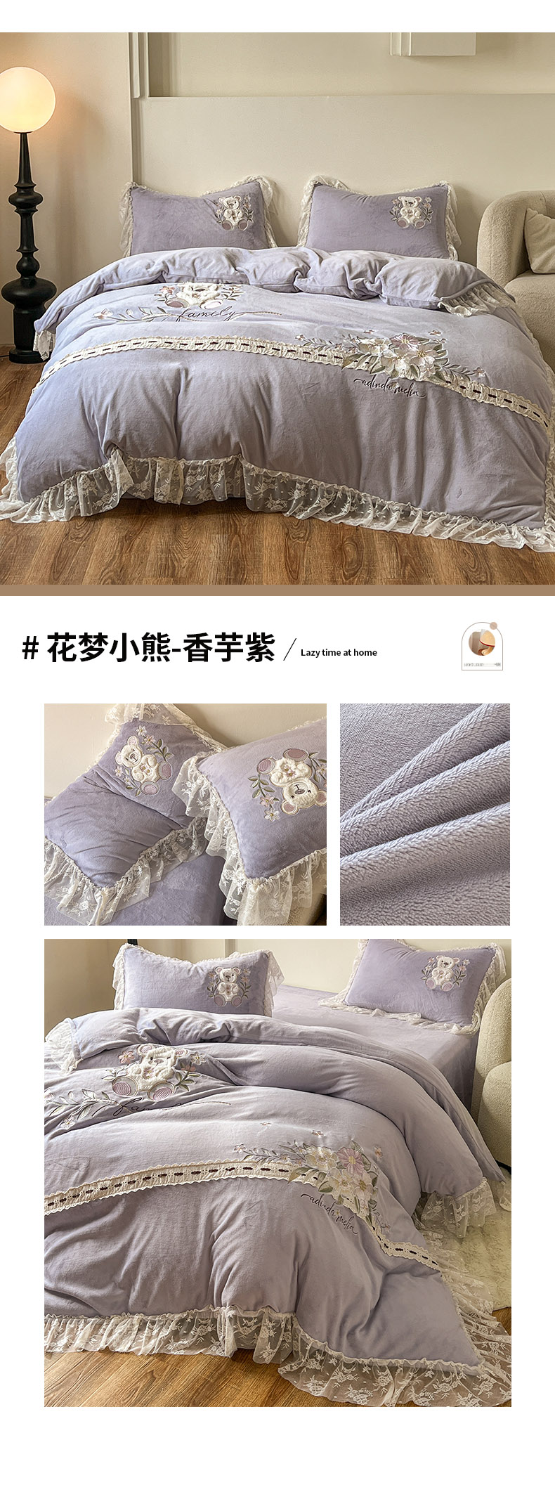 (总)新印象 2025新款全消光牛奶绒绣花活性印染四件套花梦小熊,花梦小熊-清新蓝,花梦小熊-少女粉,花梦小熊-香芋紫